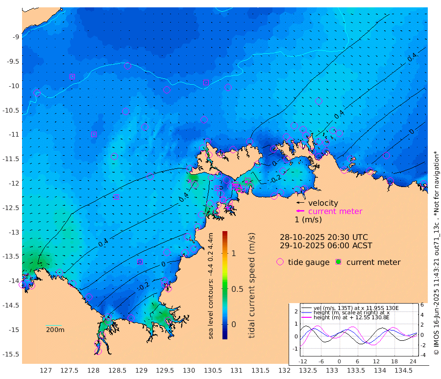 52cm/s -100T +4cm/s rms + 6cm/s 51T. Darwin_C1 52m 18cm/s -93T +4cm/s rms + 7cm/s -161T. Darwin_CW1 22m 8cm/s -111T +4cm/s rms + 8cm/s 61T. Darwin_CW2 34m 32cm/s -136T +3cm/s rms + 9cm/s 98T. Darwin_CW3 22m 10cm/s -89T +5cm/s rms + 7cm/s 88T. Darwin_C3 56m 34cm/s -115T +2cm/s rms + 9cm/s -126T. Darwin_CTbW 22m 8cm/s 127T +9cm/s rms + 2cm/s -110T. NWSLYN 196m 13cm/s 97T +1cm/s rms + 1cm/s -47T. DARBGF 30m 11cm/s 29T +7cm/s rms + 2cm/s -137T. ITFTIS 464m 11cm/s 41T +9cm/s rms + 1cm/s 74T. ITFMHB 146m 8cm/s 90T +4cm/s rms + 1cm/s -134T. ITFJBG 61m 13cm/s 80T +6cm/s rms + 4cm/s 121T. ITFFTB 108m 14cm/s 138T +4cm/s rms + 3cm/s 80T. NRSDAR 19m 34cm Carronade Island 33cm Guy Point 40cm Napier Broome Bay 30cm Lesueur Island -14cm Reveley Island -10cm Rocky Island -36cm Cape Domett -33cm Lacrosse Island -64cm Adolphus Island -58cm Pender Point -69cm Wyndham 64cm The Boxers 69cm Unnamed Shoal 71cm Loxton Shoal -43cm Pelican Island 66cm Calder Shoal 62cm Evans Shoal -99cm Quoin Island -17cm Port Keats -9cm Jones Point -139cm Catfish Island 7cm Cape Scott Offshore 118cm Cape Ford 6cm Anson Bay 68cm Goodrich Bank 19cm Peron Island North 23cm Point Jenny 27cm Native Point 22cm Fish Reef 20cm Tapa Bay 53cm Point Fawcett (Offshore) 18cm Burge Point 21cm Munkunuwa 33cm Beagle A 9cm Parsons Bank 14cm Fenton Patches 61cm Lynedoch Bank -1cm Hancox Shoal Area -8cm Nightcliff 10cm Darwin 30cm Charles Point Patches -9cm Glyde Point -49cm Chambers Bay -50cm Point Stuart -21cm Cape Hotham -43cm Christine Reef -63cm West Alligator Head -71cm East Field Island -28cm Two Hills Bay 53cm Newby Shoal -14cm Camp Point 23cm Medina Inlet South 57cm South Barlow Point 61cm St. Asaph Bay 69cm Cape Van Dieman 68cm Snake Bay 63cm Cache Point 61cm Echo Shoal 48cm Point Jahleel (Off) 24cm Cape Don 49cm Port Essington 43cm Smith Point - West 44cm NW Peacock Island 47cm North Of Jones Shoal 16cm Peacock Island 34cm Point David 42cm D'urville Point 47cm Money Shoal 28cm Copeland Island 34cm Cape Cockburn 33cm One Tree Point 41cm Hogmany Shoal 34cm New Year Island - West 33cm Grant Island 10cm Aurari Bay 3cm Cuthbert Point 17cm North Goulburn Island 0cm Paxie Shoal -17cm Entrance Island -42cm Yabooma Island