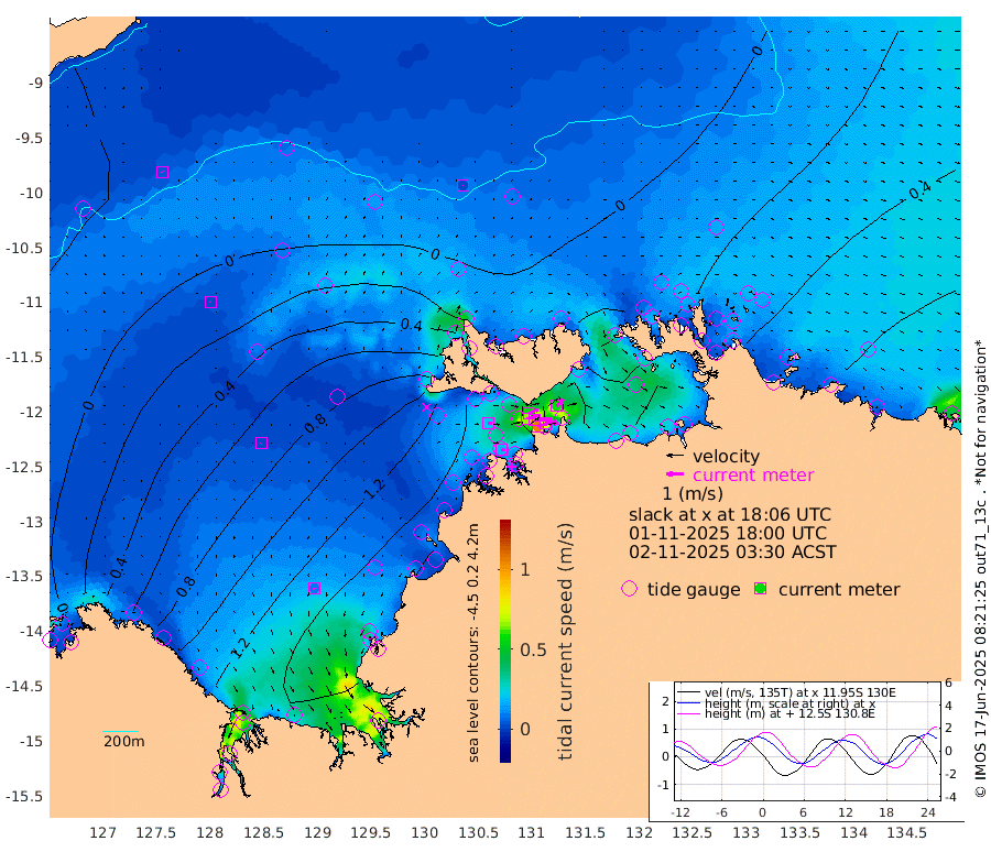 105cm/s 77T +4cm/s rms + 6cm/s 51T. Darwin_C1 52m 73cm/s 91T +4cm/s rms + 7cm/s -161T. Darwin_CW1 22m 65cm/s 73T +4cm/s rms + 8cm/s 61T. Darwin_CW2 34m 59cm/s 47T +3cm/s rms + 9cm/s 98T. Darwin_CW3 22m 93cm/s 89T +5cm/s rms + 7cm/s 88T. Darwin_C3 56m 59cm/s 65T +2cm/s rms + 9cm/s -126T. Darwin_CTbW 22m 3cm/s 3T +9cm/s rms + 2cm/s -110T. NWSLYN 196m 22cm/s 79T +1cm/s rms + 1cm/s -47T. DARBGF 30m 4cm/s -17T +7cm/s rms + 2cm/s -137T. ITFTIS 464m 2cm/s -47T +9cm/s rms + 1cm/s 74T. ITFMHB 146m 10cm/s -172T +4cm/s rms + 1cm/s -134T. ITFJBG 61m 2cm/s -146T +6cm/s rms + 4cm/s 121T. ITFFTB 108m 18cm/s 104T +4cm/s rms + 3cm/s 80T. NRSDAR 19m -7cm Carronade Island -10cm Guy Point 2cm Napier Broome Bay 52cm Lesueur Island 104cm Reveley Island 74cm Rocky Island 158cm Cape Domett 145cm Lacrosse Island 149cm Adolphus Island 116cm Pender Point 104cm Wyndham 32cm The Boxers 44cm Unnamed Shoal -19cm Loxton Shoal 161cm Pelican Island 18cm Calder Shoal -16cm Evans Shoal 168cm Quoin Island 175cm Port Keats 160cm Jones Point 134cm Catfish Island 128cm Cape Scott Offshore 117cm Cape Ford 146cm Anson Bay -1cm Goodrich Bank 119cm Peron Island North 134cm Point Jenny 134cm Native Point 137cm Fish Reef 146cm Tapa Bay 64cm Point Fawcett (Offshore) 163cm Burge Point 134cm Munkunuwa 121cm Beagle A 146cm Parsons Bank 158cm Fenton Patches -7cm Lynedoch Bank 144cm Hancox Shoal Area 167cm Nightcliff 163cm Darwin 145cm Charles Point Patches 121cm Glyde Point 98cm Chambers Bay 87cm Point Stuart 98cm Cape Hotham 94cm Christine Reef 93cm West Alligator Head 86cm East Field Island 78cm Two Hills Bay 92cm Newby Shoal 86cm Camp Point 141cm Medina Inlet South 53cm South Barlow Point 33cm St. Asaph Bay 2cm Cape Van Dieman 6cm Snake Bay 4cm Cache Point -34cm Echo Shoal 14cm Point Jahleel (Off) 47cm Cape Don 13cm Port Essington 13cm Smith Point - West 9cm NW Peacock Island 2cm North Of Jones Shoal 1cm Peacock Island 15cm Point David 12cm D'urville Point 7cm Money Shoal 15cm Copeland Island 24cm Cape Cockburn 16cm One Tree Point 12cm Hogmany Shoal 20cm New Year Island - West 20cm Grant Island 31cm Aurari Bay 36cm Cuthbert Point 30cm North Goulburn Island 46cm Paxie Shoal 51cm Entrance Island 55cm Yabooma Island