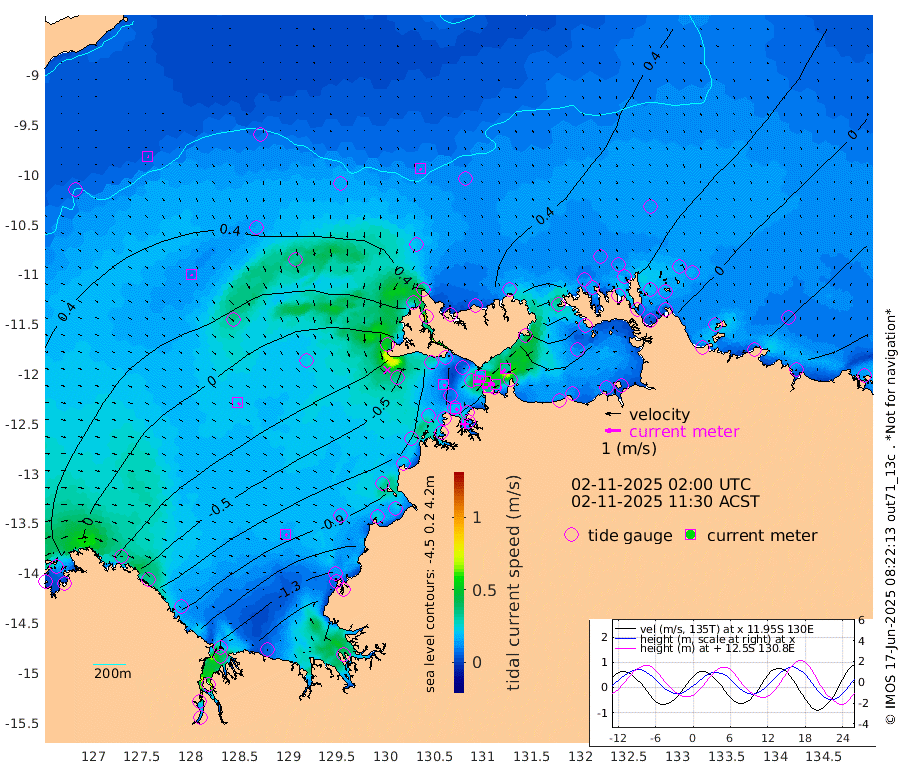 36cm/s -100T +4cm/s rms + 6cm/s 51T. Darwin_C1 52m 44cm/s -92T +4cm/s rms + 7cm/s -161T. Darwin_CW1 22m 31cm/s -107T +4cm/s rms + 8cm/s 61T. Darwin_CW2 34m 33cm/s -142T +3cm/s rms + 9cm/s 98T. Darwin_CW3 22m 57cm/s -90T +5cm/s rms + 7cm/s 88T. Darwin_C3 56m 16cm/s -114T +2cm/s rms + 9cm/s -126T. Darwin_CTbW 22m 11cm/s 158T +9cm/s rms + 2cm/s -110T. NWSLYN 196m 15cm/s 111T +1cm/s rms + 1cm/s -47T. DARBGF 30m 5cm/s 100T +7cm/s rms + 2cm/s -137T. ITFTIS 464m 9cm/s 145T +9cm/s rms + 1cm/s 74T. ITFMHB 146m 14cm/s 121T +4cm/s rms + 1cm/s -134T. ITFJBG 61m 21cm/s 125T +6cm/s rms + 4cm/s 121T. ITFFTB 108m 19cm/s 134T +4cm/s rms + 3cm/s 80T. NRSDAR 19m 3cm Carronade Island 5cm Guy Point 3cm Napier Broome Bay -56cm Lesueur Island -105cm Reveley Island -59cm Rocky Island -166cm Cape Domett -157cm Lacrosse Island -192cm Adolphus Island -182cm Pender Point -191cm Wyndham 10cm The Boxers 5cm Unnamed Shoal 42cm Loxton Shoal -162cm Pelican Island 21cm Calder Shoal 44cm Evans Shoal -244cm Quoin Island -140cm Port Keats -133cm Jones Point -204cm Catfish Island -79cm Cape Scott Offshore -35cm Cape Ford -85cm Anson Bay 38cm Goodrich Bank -65cm Peron Island North -58cm Point Jenny -58cm Native Point -71cm Fish Reef -75cm Tapa Bay -2cm Point Fawcett (Offshore) -95cm Burge Point -64cm Munkunuwa -54cm Beagle A -82cm Parsons Bank -96cm Fenton Patches 35cm Lynedoch Bank -91cm Hancox Shoal Area -106cm Nightcliff -108cm Darwin -84cm Charles Point Patches -98cm Glyde Point -109cm Chambers Bay -113cm Point Stuart -93cm Cape Hotham -97cm Christine Reef -127cm West Alligator Head -141cm East Field Island -82cm Two Hills Bay -30cm Newby Shoal -88cm Camp Point -76cm Medina Inlet South 7cm South Barlow Point 19cm St. Asaph Bay 41cm Cape Van Dieman 35cm Snake Bay 36cm Cache Point 40cm Echo Shoal 19cm Point Jahleel (Off) -12cm Cape Don 25cm Port Essington 26cm Smith Point - West 28cm NW Peacock Island 31cm North Of Jones Shoal 11cm Peacock Island 17cm Point David 28cm D'urville Point 26cm Money Shoal 14cm Copeland Island 15cm Cape Cockburn 16cm One Tree Point 22cm Hogmany Shoal 10cm New Year Island - West 13cm Grant Island -8cm Aurari Bay -9cm Cuthbert Point 2cm North Goulburn Island -24cm Paxie Shoal -36cm Entrance Island -57cm Yabooma Island