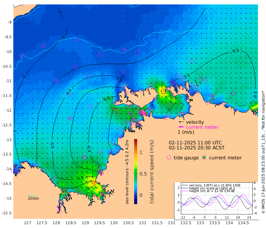 97cm/s -103T +4cm/s rms + 6cm/s 51T. Darwin_C1 52m 53cm/s -88T +4cm/s rms + 7cm/s -161T. Darwin_CW1 22m 58cm/s -108T +4cm/s rms + 8cm/s 61T. Darwin_CW2 34m 38cm/s -123T +3cm/s rms + 9cm/s 98T. Darwin_CW3 22m 67cm/s -92T +5cm/s rms + 7cm/s 88T. Darwin_C3 56m 61cm/s -116T +2cm/s rms + 9cm/s -126T. Darwin_CTbW 22m 6cm/s -37T +9cm/s rms + 2cm/s -110T. NWSLYN 196m 43cm/s -90T +1cm/s rms + 1cm/s -47T. DARBGF 30m 4cm/s -148T +7cm/s rms + 2cm/s -137T. ITFTIS 464m 6cm/s -19T +9cm/s rms + 1cm/s 74T. ITFMHB 146m 27cm/s -24T +4cm/s rms + 1cm/s -134T. ITFJBG 61m 22cm/s -44T +6cm/s rms + 4cm/s 121T. ITFFTB 108m 40cm/s -60T +4cm/s rms + 3cm/s 80T. NRSDAR 19m 42cm Carronade Island 44cm Guy Point 36cm Napier Broome Bay 11cm Lesueur Island -24cm Reveley Island -13cm Rocky Island -32cm Cape Domett -25cm Lacrosse Island 7cm Adolphus Island 55cm Pender Point 84cm Wyndham -35cm The Boxers -52cm Unnamed Shoal 5cm Loxton Shoal -51cm Pelican Island -29cm Calder Shoal -9cm Evans Shoal 35cm Quoin Island -88cm Port Keats -84cm Jones Point 52cm Catfish Island -91cm Cape Scott Offshore -131cm Cape Ford -111cm Anson Bay -27cm Goodrich Bank -95cm Peron Island North -120cm Point Jenny -120cm Native Point -111cm Fish Reef -122cm Tapa Bay -79cm Point Fawcett (Offshore) -122cm Burge Point -119cm Munkunuwa -104cm Beagle A -117cm Parsons Bank -116cm Fenton Patches -13cm Lynedoch Bank -107cm Hancox Shoal Area -118cm Nightcliff -113cm Darwin -112cm Charles Point Patches -61cm Glyde Point -15cm Chambers Bay 4cm Point Stuart -36cm Cape Hotham -18cm Christine Reef 11cm West Alligator Head 38cm East Field Island -16cm Two Hills Bay -73cm Newby Shoal -20cm Camp Point -114cm Medina Inlet South -71cm South Barlow Point -55cm St. Asaph Bay -34cm Cape Van Dieman -33cm Snake Bay -31cm Cache Point 26cm Echo Shoal -30cm Point Jahleel (Off) -44cm Cape Don -37cm Port Essington -39cm Smith Point - West -35cm NW Peacock Island -26cm North Of Jones Shoal -10cm Peacock Island -40cm Point David -41cm D'urville Point -31cm Money Shoal -39cm Copeland Island -48cm Cape Cockburn -37cm One Tree Point -41cm Hogmany Shoal -36cm New Year Island - West -40cm Grant Island -37cm Aurari Bay -43cm Cuthbert Point -44cm North Goulburn Island -42cm Paxie Shoal -42cm Entrance Island -33cm Yabooma Island