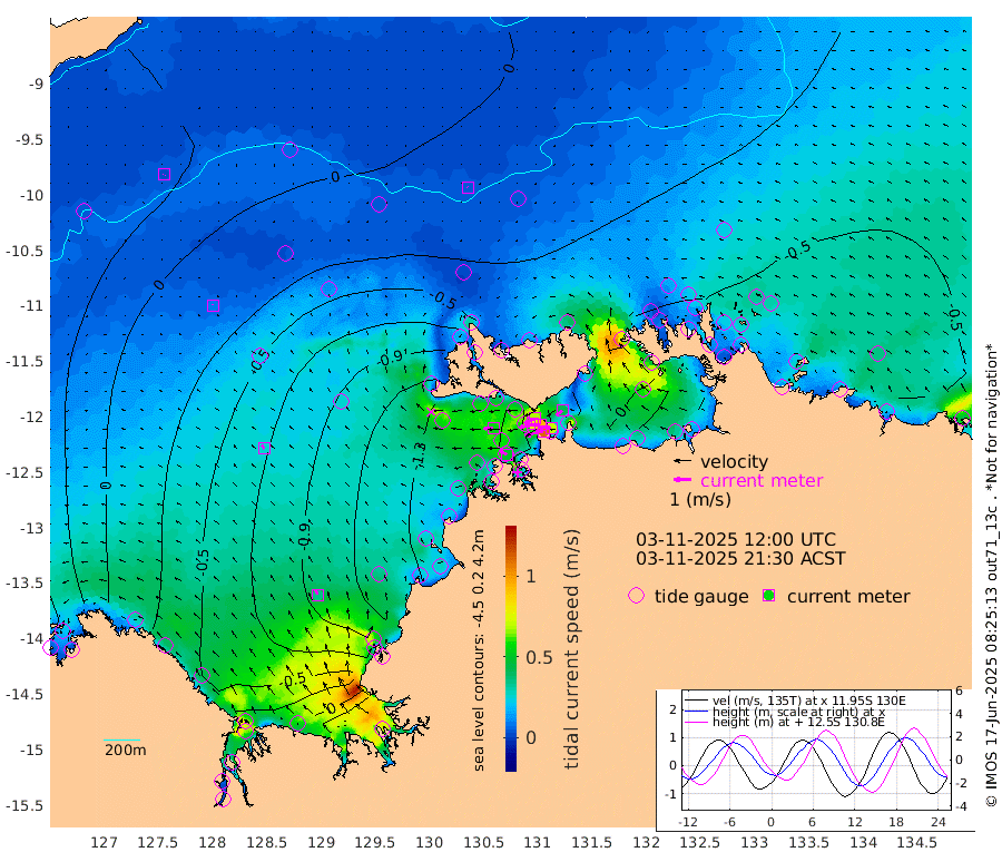 111cm/s -103T +4cm/s rms + 6cm/s 51T. Darwin_C1 52m 70cm/s -88T +4cm/s rms + 7cm/s -161T. Darwin_CW1 22m 79cm/s -108T +4cm/s rms + 8cm/s 61T. Darwin_CW2 34m 41cm/s -122T +3cm/s rms + 9cm/s 98T. Darwin_CW3 22m 93cm/s -92T +5cm/s rms + 7cm/s 88T. Darwin_C3 56m 68cm/s -115T +2cm/s rms + 9cm/s -126T. Darwin_CTbW 22m 4cm/s -38T +9cm/s rms + 2cm/s -110T. NWSLYN 196m 54cm/s -91T +1cm/s rms + 1cm/s -47T. DARBGF 30m 2cm/s -142T +7cm/s rms + 2cm/s -137T. ITFTIS 464m 9cm/s -7T +9cm/s rms + 1cm/s 74T. ITFMHB 146m 34cm/s -22T +4cm/s rms + 1cm/s -134T. ITFJBG 61m 26cm/s -40T +6cm/s rms + 4cm/s 121T. ITFFTB 108m 49cm/s -61T +4cm/s rms + 3cm/s 80T. NRSDAR 19m 85cm Carronade Island 89cm Guy Point 82cm Napier Broome Bay 33cm Lesueur Island -28cm Reveley Island -8cm Rocky Island -41cm Cape Domett -32cm Lacrosse Island 7cm Adolphus Island 74cm Pender Point 115cm Wyndham -23cm The Boxers -48cm Unnamed Shoal 25cm Loxton Shoal -67cm Pelican Island -20cm Calder Shoal 4cm Evans Shoal 32cm Quoin Island -110cm Port Keats -110cm Jones Point 78cm Catfish Island -111cm Cape Scott Offshore -166cm Cape Ford -138cm Anson Bay -18cm Goodrich Bank -118cm Peron Island North -142cm Point Jenny -142cm Native Point -138cm Fish Reef -149cm Tapa Bay -88cm Point Fawcett (Offshore) -153cm Burge Point -152cm Munkunuwa -122cm Beagle A -148cm Parsons Bank -143cm Fenton Patches -2cm Lynedoch Bank -133cm Hancox Shoal Area -147cm Nightcliff -144cm Darwin -139cm Charles Point Patches -74cm Glyde Point -12cm Chambers Bay 9cm Point Stuart -43cm Cape Hotham -13cm Christine Reef 18cm West Alligator Head 52cm East Field Island -14cm Two Hills Bay -72cm Newby Shoal -19cm Camp Point -142cm Medina Inlet South -79cm South Barlow Point -57cm St. Asaph Bay -27cm Cape Van Dieman -28cm Snake Bay -23cm Cache Point 51cm Echo Shoal -25cm Point Jahleel (Off) -42cm Cape Don -32cm Port Essington -34cm Smith Point - West -29cm NW Peacock Island -18cm North Of Jones Shoal -8cm Peacock Island -36cm Point David -36cm D'urville Point -23cm Money Shoal -35cm Copeland Island -43cm Cape Cockburn -32cm One Tree Point -33cm Hogmany Shoal -29cm New Year Island - West -34cm Grant Island -35cm Aurari Bay -38cm Cuthbert Point -40cm North Goulburn Island -38cm Paxie Shoal -41cm Entrance Island -33cm Yabooma Island