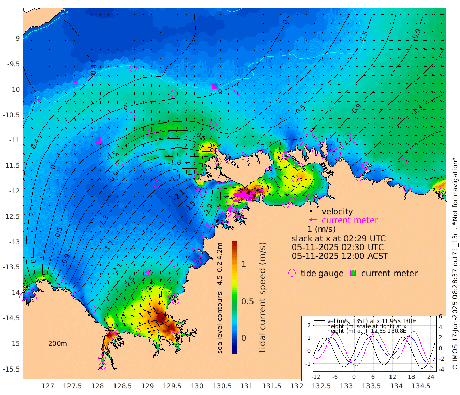 209cm/s -102T +4cm/s rms + 6cm/s 51T. Darwin_C1 52m 174cm/s -90T +4cm/s rms + 7cm/s -161T. Darwin_CW1 22m 123cm/s -107T +4cm/s rms + 8cm/s 61T. Darwin_CW2 34m 102cm/s -136T +3cm/s rms + 9cm/s 98T. Darwin_CW3 22m 190cm/s -90T +5cm/s rms + 7cm/s 88T. Darwin_C3 56m 118cm/s -115T +2cm/s rms + 9cm/s -126T. Darwin_CTbW 22m 9cm/s -172T +9cm/s rms + 2cm/s -110T. NWSLYN 196m 36cm/s -103T +1cm/s rms + 1cm/s -47T. DARBGF 30m 9cm/s 134T +7cm/s rms + 2cm/s -137T. ITFTIS 464m 9cm/s 136T +9cm/s rms + 1cm/s 74T. ITFMHB 146m 16cm/s 23T +4cm/s rms + 1cm/s -134T. ITFJBG 61m 10cm/s 102T +6cm/s rms + 4cm/s 121T. ITFFTB 108m 23cm/s -82T +4cm/s rms + 3cm/s 80T. NRSDAR 19m 40cm Carronade Island 42cm Guy Point 44cm Napier Broome Bay -111cm Lesueur Island -227cm Reveley Island -102cm Rocky Island -321cm Cape Domett -298cm Lacrosse Island -322cm Adolphus Island -223cm Pender Point -201cm Wyndham -61cm The Boxers -91cm Unnamed Shoal 32cm Loxton Shoal -348cm Pelican Island -39cm Calder Shoal 13cm Evans Shoal -360cm Quoin Island -354cm Port Keats -341cm Jones Point -255cm Catfish Island -261cm Cape Scott Offshore -314cm Cape Ford -292cm Anson Bay -21cm Goodrich Bank -263cm Peron Island North -266cm Point Jenny -265cm Native Point -281cm Fish Reef -300cm Tapa Bay -139cm Point Fawcett (Offshore) -326cm Burge Point -271cm Munkunuwa -240cm Beagle A -312cm Parsons Bank -319cm Fenton Patches -4cm Lynedoch Bank -311cm Hancox Shoal Area -329cm Nightcliff -347cm Darwin -316cm Charles Point Patches -259cm Glyde Point -200cm Chambers Bay -193cm Point Stuart -221cm Cape Hotham -192cm Christine Reef -203cm West Alligator Head -187cm East Field Island -178cm Two Hills Bay -172cm Newby Shoal -185cm Camp Point -289cm Medina Inlet South -120cm South Barlow Point -79cm St. Asaph Bay -26cm Cape Van Dieman -36cm Snake Bay -33cm Cache Point 61cm Echo Shoal -56cm Point Jahleel (Off) -115cm Cape Don -63cm Port Essington -65cm Smith Point - West -61cm NW Peacock Island -35cm North Of Jones Shoal -15cm Peacock Island -87cm Point David -70cm D'urville Point -53cm Money Shoal -89cm Copeland Island -117cm Cape Cockburn -81cm One Tree Point -112cm Hogmany Shoal -90cm New Year Island - West -95cm Grant Island -115cm Aurari Bay -133cm Cuthbert Point -112cm North Goulburn Island -139cm Paxie Shoal -162cm Entrance Island -178cm Yabooma Island