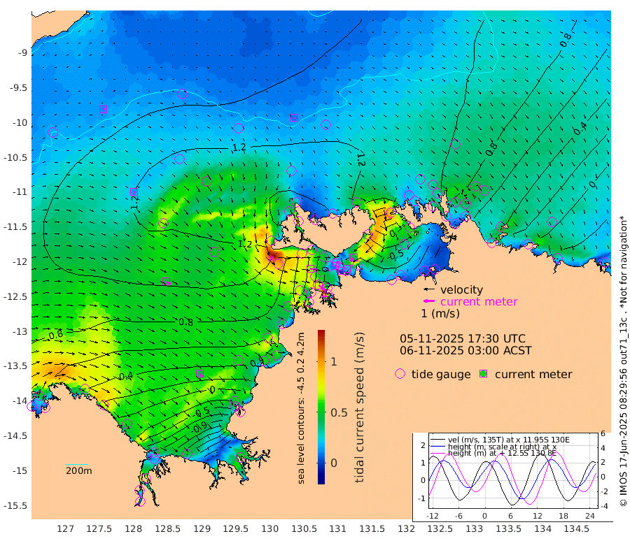 1cm/s -93T +4cm/s rms + 6cm/s 51T. Darwin_C1 52m 20cm/s -87T +4cm/s rms + 7cm/s -161T. Darwin_CW1 22m 10cm/s 75T +4cm/s rms + 8cm/s 61T. Darwin_CW2 34m 43cm/s -141T +3cm/s rms + 9cm/s 98T. Darwin_CW3 22m 20cm/s -86T +5cm/s rms + 7cm/s 88T. Darwin_C3 56m 24cm/s 60T +2cm/s rms + 9cm/s -126T. Darwin_CTbW 22m 9cm/s 142T +9cm/s rms + 2cm/s -110T. NWSLYN 196m 66cm/s 96T +1cm/s rms + 1cm/s -47T. DARBGF 30m 12cm/s 52T +7cm/s rms + 2cm/s -137T. ITFTIS 464m 14cm/s 112T +9cm/s rms + 1cm/s 74T. ITFMHB 146m 44cm/s 138T +4cm/s rms + 1cm/s -134T. ITFJBG 61m 47cm/s 120T +6cm/s rms + 4cm/s 121T. ITFFTB 108m 70cm/s 127T +4cm/s rms + 3cm/s 80T. NRSDAR 19m 5cm Carronade Island -8cm Guy Point 7cm Napier Broome Bay 6cm Lesueur Island -56cm Reveley Island -14cm Rocky Island -120cm Cape Domett -97cm Lacrosse Island -183cm Adolphus Island -242cm Pender Point -266cm Wyndham 100cm The Boxers 128cm Unnamed Shoal 92cm Loxton Shoal -114cm Pelican Island 109cm Calder Shoal 94cm Evans Shoal -265cm Quoin Island -37cm Port Keats -34cm Jones Point -248cm Catfish Island 33cm Cape Scott Offshore 138cm Cape Ford 42cm Anson Bay 109cm Goodrich Bank 62cm Peron Island North 73cm Point Jenny 77cm Native Point 74cm Fish Reef 61cm Tapa Bay 115cm Point Fawcett (Offshore) 52cm Burge Point 68cm Munkunuwa 97cm Beagle A 42cm Parsons Bank 58cm Fenton Patches 94cm Lynedoch Bank 19cm Hancox Shoal Area 30cm Nightcliff 29cm Darwin 55cm Charles Point Patches -19cm Glyde Point -101cm Chambers Bay -114cm Point Stuart -40cm Cape Hotham -91cm Christine Reef -138cm West Alligator Head -171cm East Field Island -57cm Two Hills Bay 110cm Newby Shoal -55cm Camp Point 64cm Medina Inlet South 120cm South Barlow Point 118cm St. Asaph Bay 117cm Cape Van Dieman 118cm Snake Bay 109cm Cache Point 78cm Echo Shoal 87cm Point Jahleel (Off) 46cm Cape Don 85cm Port Essington 88cm Smith Point - West 84cm NW Peacock Island 88cm North Of Jones Shoal 31cm Peacock Island 62cm Point David 87cm D'urville Point 76cm Money Shoal 54cm Copeland Island 73cm Cape Cockburn 63cm One Tree Point 58cm Hogmany Shoal 64cm New Year Island - West 59cm Grant Island 35cm Aurari Bay 11cm Cuthbert Point 39cm North Goulburn Island -16cm Paxie Shoal -30cm Entrance Island -78cm Yabooma Island