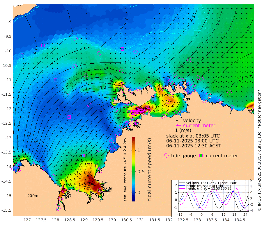 247cm/s -102T +4cm/s rms + 6cm/s 51T. Darwin_C1 52m 203cm/s -90T +4cm/s rms + 7cm/s -161T. Darwin_CW1 22m 141cm/s -107T +4cm/s rms + 8cm/s 61T. Darwin_CW2 34m 117cm/s -135T +3cm/s rms + 9cm/s 98T. Darwin_CW3 22m 216cm/s -90T +5cm/s rms + 7cm/s 88T. Darwin_C3 56m 140cm/s -115T +2cm/s rms + 9cm/s -126T. Darwin_CTbW 22m 8cm/s -156T +9cm/s rms + 2cm/s -110T. NWSLYN 196m 45cm/s -101T +1cm/s rms + 1cm/s -47T. DARBGF 30m 10cm/s 140T +7cm/s rms + 2cm/s -137T. ITFTIS 464m 8cm/s 134T +9cm/s rms + 1cm/s 74T. ITFMHB 146m 19cm/s 16T +4cm/s rms + 1cm/s -134T. ITFJBG 61m 8cm/s 93T +6cm/s rms + 4cm/s 121T. ITFFTB 108m 30cm/s -79T +4cm/s rms + 3cm/s 80T. NRSDAR 19m 38cm Carronade Island 40cm Guy Point 41cm Napier Broome Bay -123cm Lesueur Island -248cm Reveley Island -114cm Rocky Island -348cm Cape Domett -321cm Lacrosse Island -343cm Adolphus Island -234cm Pender Point -205cm Wyndham -81cm The Boxers -111cm Unnamed Shoal 18cm Loxton Shoal -378cm Pelican Island -57cm Calder Shoal -3cm Evans Shoal -381cm Quoin Island -390cm Port Keats -374cm Jones Point -270cm Catfish Island -293cm Cape Scott Offshore -367cm Cape Ford -328cm Anson Bay -39cm Goodrich Bank -300cm Peron Island North -302cm Point Jenny -301cm Native Point -318cm Fish Reef -338cm Tapa Bay -169cm Point Fawcett (Offshore) -365cm Burge Point -308cm Munkunuwa -272cm Beagle A -352cm Parsons Bank -354cm Fenton Patches -19cm Lynedoch Bank -347cm Hancox Shoal Area -364cm Nightcliff -389cm Darwin -359cm Charles Point Patches -285cm Glyde Point -212cm Chambers Bay -205cm Point Stuart -242cm Cape Hotham -205cm Christine Reef -213cm West Alligator Head -191cm East Field Island -195cm Two Hills Bay -202cm Newby Shoal -200cm Camp Point -329cm Medina Inlet South -148cm South Barlow Point -103cm St. Asaph Bay -45cm Cape Van Dieman -56cm Snake Bay -53cm Cache Point 55cm Echo Shoal -75cm Point Jahleel (Off) -138cm Cape Don -86cm Port Essington -87cm Smith Point - West -83cm NW Peacock Island -55cm North Of Jones Shoal -22cm Peacock Island -108cm Point David -92cm D'urville Point -73cm Money Shoal -110cm Copeland Island -145cm Cape Cockburn -104cm One Tree Point -139cm Hogmany Shoal -111cm New Year Island - West -117cm Grant Island -133cm Aurari Bay -156cm Cuthbert Point -135cm North Goulburn Island -160cm Paxie Shoal -180cm Entrance Island -193cm Yabooma Island