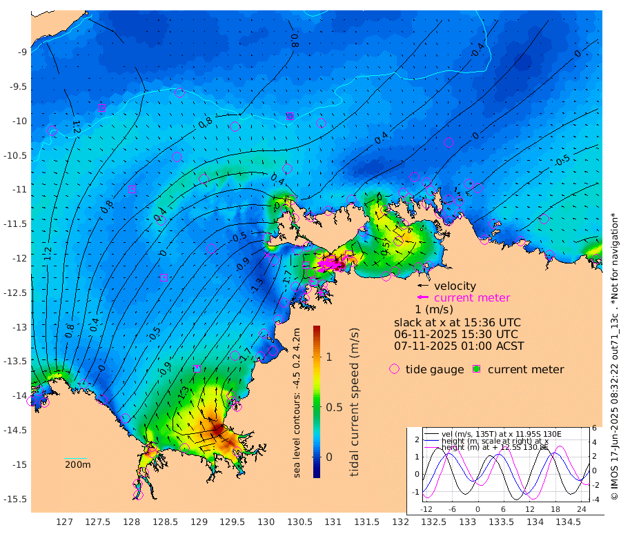 180cm/s -102T +4cm/s rms + 6cm/s 51T. Darwin_C1 52m 146cm/s -90T +4cm/s rms + 7cm/s -161T. Darwin_CW1 22m 108cm/s -107T +4cm/s rms + 8cm/s 61T. Darwin_CW2 34m 80cm/s -132T +3cm/s rms + 9cm/s 98T. Darwin_CW3 22m 159cm/s -91T +5cm/s rms + 7cm/s 88T. Darwin_C3 56m 99cm/s -115T +2cm/s rms + 9cm/s -126T. Darwin_CTbW 22m 8cm/s 148T +9cm/s rms + 2cm/s -110T. NWSLYN 196m 32cm/s -99T +1cm/s rms + 1cm/s -47T. DARBGF 30m 9cm/s 53T +7cm/s rms + 2cm/s -137T. ITFTIS 464m 13cm/s 54T +9cm/s rms + 1cm/s 74T. ITFMHB 146m 23cm/s 9T +4cm/s rms + 1cm/s -134T. ITFJBG 61m 16cm/s 50T +6cm/s rms + 4cm/s 121T. ITFFTB 108m 27cm/s -80T +4cm/s rms + 3cm/s 80T. NRSDAR 19m 167cm Carronade Island 167cm Guy Point 172cm Napier Broome Bay 58cm Lesueur Island -98cm Reveley Island -35cm Rocky Island -164cm Cape Domett -137cm Lacrosse Island -152cm Adolphus Island -75cm Pender Point -32cm Wyndham 55cm The Boxers 25cm Unnamed Shoal 116cm Loxton Shoal -203cm Pelican Island 61cm Calder Shoal 83cm Evans Shoal -191cm Quoin Island -201cm Port Keats -207cm Jones Point -79cm Catfish Island -141cm Cape Scott Offshore -156cm Cape Ford -171cm Anson Bay 60cm Goodrich Bank -142cm Peron Island North -144cm Point Jenny -143cm Native Point -156cm Fish Reef -173cm Tapa Bay -37cm Point Fawcett (Offshore) -190cm Burge Point -183cm Munkunuwa -106cm Beagle A -199cm Parsons Bank -174cm Fenton Patches 72cm Lynedoch Bank -189cm Hancox Shoal Area -197cm Nightcliff -208cm Darwin -173cm Charles Point Patches -134cm Glyde Point -88cm Chambers Bay -84cm Point Stuart -107cm Cape Hotham -79cm Christine Reef -91cm West Alligator Head -66cm East Field Island -73cm Two Hills Bay -15cm Newby Shoal -69cm Camp Point -170cm Medina Inlet South -27cm South Barlow Point 9cm St. Asaph Bay 53cm Cape Van Dieman 47cm Snake Bay 54cm Cache Point 144cm Echo Shoal 29cm Point Jahleel (Off) -24cm Cape Don 18cm Port Essington 16cm Smith Point - West 21cm NW Peacock Island 43cm North Of Jones Shoal 12cm Peacock Island -9cm Point David 12cm D'urville Point 30cm Money Shoal -14cm Copeland Island -14cm Cape Cockburn -1cm One Tree Point -9cm Hogmany Shoal 3cm New Year Island - West -8cm Grant Island -31cm Aurari Bay -47cm Cuthbert Point -28cm North Goulburn Island -58cm Paxie Shoal -78cm Entrance Island -101cm Yabooma Island