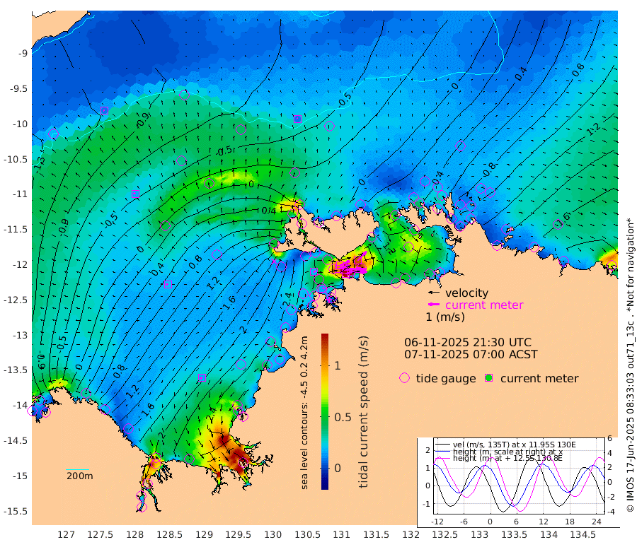 196cm/s 78T +4cm/s rms + 6cm/s 51T. Darwin_C1 52m 151cm/s 91T +4cm/s rms + 7cm/s -161T. Darwin_CW1 22m 104cm/s 73T +4cm/s rms + 8cm/s 61T. Darwin_CW2 34m 114cm/s 43T +3cm/s rms + 9cm/s 98T. Darwin_CW3 22m 166cm/s 89T +5cm/s rms + 7cm/s 88T. Darwin_C3 56m 96cm/s 65T +2cm/s rms + 9cm/s -126T. Darwin_CTbW 22m 10cm/s -11T +9cm/s rms + 2cm/s -110T. NWSLYN 196m 18cm/s 69T +1cm/s rms + 1cm/s -47T. DARBGF 30m 10cm/s -70T +7cm/s rms + 2cm/s -137T. ITFTIS 464m 16cm/s -42T +9cm/s rms + 1cm/s 74T. ITFMHB 146m 17cm/s -135T +4cm/s rms + 1cm/s -134T. ITFJBG 61m 21cm/s -75T +6cm/s rms + 4cm/s 121T. ITFFTB 108m 16cm/s 81T +4cm/s rms + 3cm/s 80T. NRSDAR 19m -139cm Carronade Island -146cm Guy Point -140cm Napier Broome Bay 2cm Lesueur Island 135cm Reveley Island 54cm Rocky Island 223cm Cape Domett 192cm Lacrosse Island 223cm Adolphus Island 142cm Pender Point 111cm Wyndham -20cm The Boxers 35cm Unnamed Shoal -101cm Loxton Shoal 257cm Pelican Island -43cm Calder Shoal -73cm Evans Shoal 267cm Quoin Island 257cm Port Keats 264cm Jones Point 157cm Catfish Island 169cm Cape Scott Offshore 197cm Cape Ford 203cm Anson Bay -35cm Goodrich Bank 178cm Peron Island North 171cm Point Jenny 172cm Native Point 191cm Fish Reef 207cm Tapa Bay 55cm Point Fawcett (Offshore) 232cm Burge Point 199cm Munkunuwa 140cm Beagle A 241cm Parsons Bank 219cm Fenton Patches -45cm Lynedoch Bank 231cm Hancox Shoal Area 233cm Nightcliff 263cm Darwin 224cm Charles Point Patches 192cm Glyde Point 140cm Chambers Bay 148cm Point Stuart 164cm Cape Hotham 128cm Christine Reef 155cm West Alligator Head 139cm East Field Island 130cm Two Hills Bay 65cm Newby Shoal 129cm Camp Point 204cm Medina Inlet South 52cm South Barlow Point 6cm St. Asaph Bay -29cm Cape Van Dieman -15cm Snake Bay -27cm Cache Point -137cm Echo Shoal 2cm Point Jahleel (Off) 67cm Cape Don 23cm Port Essington 20cm Smith Point - West 22cm NW Peacock Island -12cm North Of Jones Shoal 0cm Peacock Island 69cm Point David 32cm D'urville Point 19cm Money Shoal 73cm Copeland Island 90cm Cape Cockburn 57cm One Tree Point 84cm Hogmany Shoal 63cm New Year Island - West 72cm Grant Island 103cm Aurari Bay 125cm Cuthbert Point 97cm North Goulburn Island 134cm Paxie Shoal 159cm Entrance Island 186cm Yabooma Island