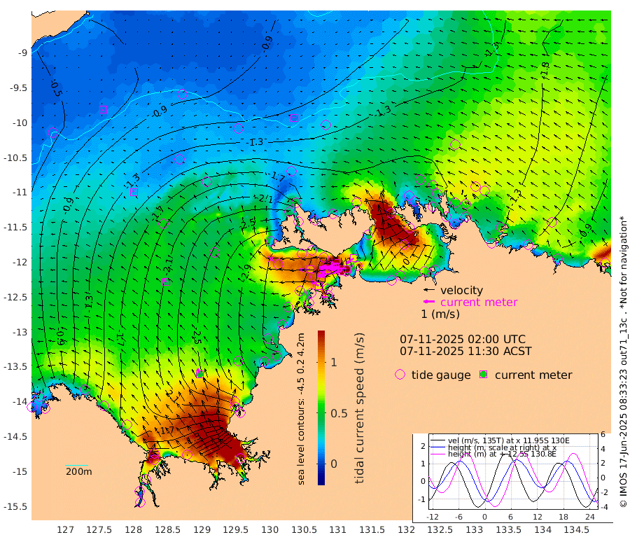221cm/s -102T +4cm/s rms + 6cm/s 51T. Darwin_C1 52m 159cm/s -89T +4cm/s rms + 7cm/s -161T. Darwin_CW1 22m 146cm/s -108T +4cm/s rms + 8cm/s 61T. Darwin_CW2 34m 80cm/s -126T +3cm/s rms + 9cm/s 98T. Darwin_CW3 22m 186cm/s -92T +5cm/s rms + 7cm/s 88T. Darwin_C3 56m 133cm/s -116T +2cm/s rms + 9cm/s -126T. Darwin_CTbW 22m 10cm/s -63T +9cm/s rms + 2cm/s -110T. NWSLYN 196m 99cm/s -92T +1cm/s rms + 1cm/s -47T. DARBGF 30m 10cm/s -154T +7cm/s rms + 2cm/s -137T. ITFTIS 464m 15cm/s -25T +9cm/s rms + 1cm/s 74T. ITFMHB 146m 52cm/s -22T +4cm/s rms + 1cm/s -134T. ITFJBG 61m 43cm/s -50T +6cm/s rms + 4cm/s 121T. ITFFTB 108m 83cm/s -61T +4cm/s rms + 3cm/s 80T. NRSDAR 19m 24cm Carronade Island 27cm Guy Point 25cm Napier Broome Bay -94cm Lesueur Island -158cm Reveley Island -80cm Rocky Island -179cm Cape Domett -176cm Lacrosse Island -116cm Adolphus Island 24cm Pender Point 77cm Wyndham -156cm The Boxers -176cm Unnamed Shoal -81cm Loxton Shoal -211cm Pelican Island -154cm Calder Shoal -101cm Evans Shoal -83cm Quoin Island -286cm Port Keats -269cm Jones Point -3cm Catfish Island -283cm Cape Scott Offshore -432cm Cape Ford -317cm Anson Bay -131cm Goodrich Bank -308cm Peron Island North -321cm Point Jenny -321cm Native Point -331cm Fish Reef -336cm Tapa Bay -255cm Point Fawcett (Offshore) -346cm Burge Point -326cm Munkunuwa -308cm Beagle A -325cm Parsons Bank -335cm Fenton Patches -99cm Lynedoch Bank -302cm Hancox Shoal Area -328cm Nightcliff -342cm Darwin -346cm Charles Point Patches -203cm Glyde Point -70cm Chambers Bay -43cm Point Stuart -146cm Cape Hotham -76cm Christine Reef -28cm West Alligator Head 26cm East Field Island -92cm Two Hills Bay -257cm Newby Shoal -96cm Camp Point -334cm Medina Inlet South -234cm South Barlow Point -201cm St. Asaph Bay -142cm Cape Van Dieman -148cm Snake Bay -141cm Cache Point -41cm Echo Shoal -137cm Point Jahleel (Off) -147cm Cape Don -141cm Port Essington -144cm Smith Point - West -133cm NW Peacock Island -125cm North Of Jones Shoal -44cm Peacock Island -119cm Point David -141cm D'urville Point -115cm Money Shoal -114cm Copeland Island -155cm Cape Cockburn -123cm One Tree Point -138cm Hogmany Shoal -121cm New Year Island - West -123cm Grant Island -105cm Aurari Bay -103cm Cuthbert Point -117cm North Goulburn Island -86cm Paxie Shoal -79cm Entrance Island -45cm Yabooma Island
