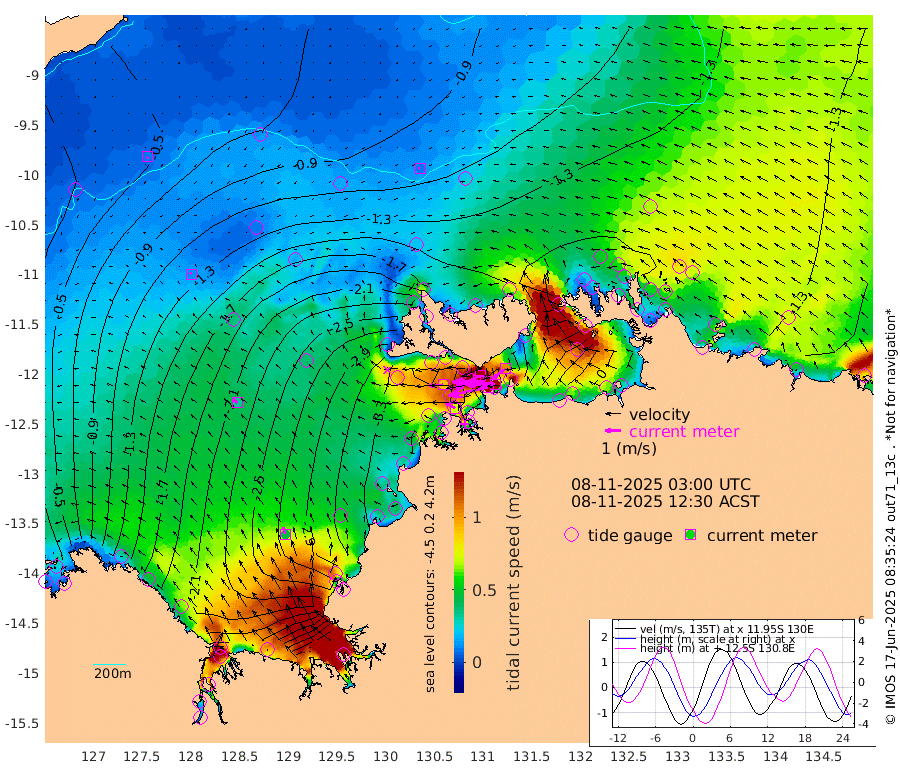 260cm/s -102T +4cm/s rms + 6cm/s 51T. Darwin_C1 52m 190cm/s -89T +4cm/s rms + 7cm/s -161T. Darwin_CW1 22m 159cm/s -108T +4cm/s rms + 8cm/s 61T. Darwin_CW2 34m 102cm/s -128T +3cm/s rms + 9cm/s 98T. Darwin_CW3 22m 212cm/s -91T +5cm/s rms + 7cm/s 88T. Darwin_C3 56m 152cm/s -115T +2cm/s rms + 9cm/s -126T. Darwin_CTbW 22m 10cm/s -69T +9cm/s rms + 2cm/s -110T. NWSLYN 196m 92cm/s -94T +1cm/s rms + 1cm/s -47T. DARBGF 30m 10cm/s -167T +7cm/s rms + 2cm/s -137T. ITFTIS 464m 11cm/s -20T +9cm/s rms + 1cm/s 74T. ITFMHB 146m 44cm/s -18T +4cm/s rms + 1cm/s -134T. ITFJBG 61m 33cm/s -47T +6cm/s rms + 4cm/s 121T. ITFFTB 108m 72cm/s -64T +4cm/s rms + 3cm/s 80T. NRSDAR 19m 27cm Carronade Island 29cm Guy Point 25cm Napier Broome Bay -105cm Lesueur Island -190cm Reveley Island -99cm Rocky Island -233cm Cape Domett -221cm Lacrosse Island -179cm Adolphus Island -46cm Pender Point 6cm Wyndham -150cm The Boxers -172cm Unnamed Shoal -71cm Loxton Shoal -264cm Pelican Island -144cm Calder Shoal -90cm Evans Shoal -170cm Quoin Island -328cm Port Keats -307cm Jones Point -77cm Catfish Island -304cm Cape Scott Offshore -434cm Cape Ford -340cm Anson Bay -120cm Goodrich Bank -325cm Peron Island North -331cm Point Jenny -332cm Native Point -345cm Fish Reef -353cm Tapa Bay -252cm Point Fawcett (Offshore) -367cm Burge Point -342cm Munkunuwa -311cm Beagle A -350cm Parsons Bank -351cm Fenton Patches -91cm Lynedoch Bank -328cm Hancox Shoal Area -351cm Nightcliff -374cm Darwin -370cm Charles Point Patches -232cm Glyde Point -104cm Chambers Bay -82cm Point Stuart -175cm Cape Hotham -107cm Christine Reef -71cm West Alligator Head -20cm East Field Island -122cm Two Hills Bay -257cm Newby Shoal -124cm Camp Point -354cm Medina Inlet South -231cm South Barlow Point -192cm St. Asaph Bay -130cm Cape Van Dieman -140cm Snake Bay -131cm Cache Point -26cm Echo Shoal -132cm Point Jahleel (Off) -156cm Cape Don -139cm Port Essington -141cm Smith Point - West -130cm NW Peacock Island -121cm North Of Jones Shoal -43cm Peacock Island -124cm Point David -139cm D'urville Point -115cm Money Shoal -119cm Copeland Island -164cm Cape Cockburn -129cm One Tree Point -147cm Hogmany Shoal -125cm New Year Island - West -130cm Grant Island -116cm Aurari Bay -120cm Cuthbert Point -128cm North Goulburn Island -110cm Paxie Shoal -101cm Entrance Island -75cm Yabooma Island