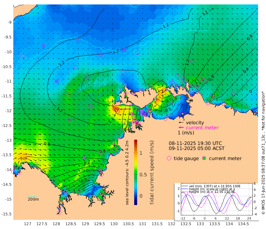 8cm/s 80T +4cm/s rms + 6cm/s 51T. Darwin_C1 52m 5cm/s -68T +4cm/s rms + 7cm/s -161T. Darwin_CW1 22m 15cm/s 79T +4cm/s rms + 8cm/s 61T. Darwin_CW2 34m 39cm/s -142T +3cm/s rms + 9cm/s 98T. Darwin_CW3 22m 5cm/s -74T +5cm/s rms + 7cm/s 88T. Darwin_C3 56m 24cm/s 60T +2cm/s rms + 9cm/s -126T. Darwin_CTbW 22m 12cm/s 135T +9cm/s rms + 2cm/s -110T. NWSLYN 196m 63cm/s 95T +1cm/s rms + 1cm/s -47T. DARBGF 30m 15cm/s 39T +7cm/s rms + 2cm/s -137T. ITFTIS 464m 14cm/s 82T +9cm/s rms + 1cm/s 74T. ITFMHB 146m 38cm/s 135T +4cm/s rms + 1cm/s -134T. ITFJBG 61m 40cm/s 114T +6cm/s rms + 4cm/s 121T. ITFFTB 108m 64cm/s 127T +4cm/s rms + 3cm/s 80T. NRSDAR 19m -6cm Carronade Island -14cm Guy Point -2cm Napier Broome Bay 12cm Lesueur Island -42cm Reveley Island -30cm Rocky Island -89cm Cape Domett -74cm Lacrosse Island -144cm Adolphus Island -206cm Pender Point -232cm Wyndham 106cm The Boxers 129cm Unnamed Shoal 99cm Loxton Shoal -77cm Pelican Island 113cm Calder Shoal 100cm Evans Shoal -206cm Quoin Island -6cm Port Keats -7cm Jones Point -219cm Catfish Island 57cm Cape Scott Offshore 159cm Cape Ford 72cm Anson Bay 117cm Goodrich Bank 82cm Peron Island North 88cm Point Jenny 92cm Native Point 90cm Fish Reef 82cm Tapa Bay 127cm Point Fawcett (Offshore) 73cm Burge Point 84cm Munkunuwa 103cm Beagle A 66cm Parsons Bank 72cm Fenton Patches 103cm Lynedoch Bank 46cm Hancox Shoal Area 53cm Nightcliff 64cm Darwin 92cm Charles Point Patches 1cm Glyde Point -88cm Chambers Bay -105cm Point Stuart -26cm Cape Hotham -79cm Christine Reef -131cm West Alligator Head -164cm East Field Island -47cm Two Hills Bay 115cm Newby Shoal -36cm Camp Point 89cm Medina Inlet South 133cm South Barlow Point 128cm St. Asaph Bay 124cm Cape Van Dieman 128cm Snake Bay 116cm Cache Point 80cm Echo Shoal 94cm Point Jahleel (Off) 60cm Cape Don 101cm Port Essington 99cm Smith Point - West 97cm NW Peacock Island 104cm North Of Jones Shoal 36cm Peacock Island 80cm Point David 100cm D'urville Point 96cm Money Shoal 73cm Copeland Island 96cm Cape Cockburn 83cm One Tree Point 81cm Hogmany Shoal 82cm New Year Island - West 77cm Grant Island 54cm Aurari Bay 34cm Cuthbert Point 60cm North Goulburn Island 17cm Paxie Shoal -7cm Entrance Island -46cm Yabooma Island