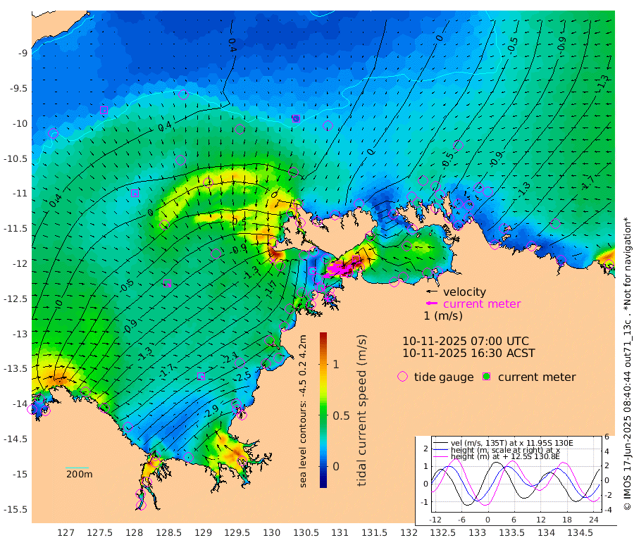 196cm/s -101T +4cm/s rms + 6cm/s 51T. Darwin_C1 52m 150cm/s -92T +4cm/s rms + 7cm/s -161T. Darwin_CW1 22m 67cm/s -105T +4cm/s rms + 8cm/s 61T. Darwin_CW2 34m 117cm/s -137T +3cm/s rms + 9cm/s 98T. Darwin_CW3 22m 131cm/s -90T +5cm/s rms + 7cm/s 88T. Darwin_C3 56m 108cm/s -116T +2cm/s rms + 9cm/s -126T. Darwin_CTbW 22m 6cm/s -135T +9cm/s rms + 2cm/s -110T. NWSLYN 196m 20cm/s 116T +1cm/s rms + 1cm/s -47T. DARBGF 30m 12cm/s 124T +7cm/s rms + 2cm/s -137T. ITFTIS 464m 19cm/s 148T +9cm/s rms + 1cm/s 74T. ITFMHB 146m 24cm/s 121T +4cm/s rms + 1cm/s -134T. ITFJBG 61m 37cm/s 124T +6cm/s rms + 4cm/s 121T. ITFFTB 108m 32cm/s 139T +4cm/s rms + 3cm/s 80T. NRSDAR 19m -30cm Carronade Island -33cm Guy Point -39cm Napier Broome Bay -119cm Lesueur Island -203cm Reveley Island -94cm Rocky Island -310cm Cape Domett -277cm Lacrosse Island -340cm Adolphus Island -332cm Pender Point -339cm Wyndham -30cm The Boxers -42cm Unnamed Shoal 36cm Loxton Shoal -315cm Pelican Island 3cm Calder Shoal 26cm Evans Shoal -416cm Quoin Island -279cm Port Keats -267cm Jones Point -406cm Catfish Island -174cm Cape Scott Offshore -152cm Cape Ford -189cm Anson Bay 14cm Goodrich Bank -168cm Peron Island North -154cm Point Jenny -151cm Native Point -168cm Fish Reef -180cm Tapa Bay -61cm Point Fawcett (Offshore) -205cm Burge Point -149cm Munkunuwa -120cm Beagle A -206cm Parsons Bank -187cm Fenton Patches 13cm Lynedoch Bank -212cm Hancox Shoal Area -208cm Nightcliff -238cm Darwin -206cm Charles Point Patches -216cm Glyde Point -228cm Chambers Bay -243cm Point Stuart -208cm Cape Hotham -213cm Christine Reef -263cm West Alligator Head -272cm East Field Island -201cm Two Hills Bay -94cm Newby Shoal -192cm Camp Point -177cm Medina Inlet South -40cm South Barlow Point -11cm St. Asaph Bay 13cm Cape Van Dieman 3cm Snake Bay -2cm Cache Point 57cm Echo Shoal -27cm Point Jahleel (Off) -101cm Cape Don -45cm Port Essington -40cm Smith Point - West -43cm NW Peacock Island -21cm North Of Jones Shoal -10cm Peacock Island -83cm Point David -48cm D'urville Point -47cm Money Shoal -87cm Copeland Island -118cm Cape Cockburn -81cm One Tree Point -122cm Hogmany Shoal -86cm New Year Island - West -95cm Grant Island -117cm Aurari Bay -157cm Cuthbert Point -124cm North Goulburn Island -177cm Paxie Shoal -191cm Entrance Island -227cm Yabooma Island