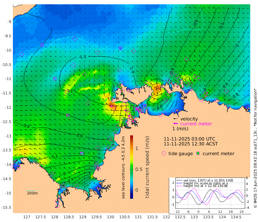 43cm/s -104T +4cm/s rms + 6cm/s 51T. Darwin_C1 52m 33cm/s -83T +4cm/s rms + 7cm/s -161T. Darwin_CW1 22m 41cm/s -105T +4cm/s rms + 8cm/s 61T. Darwin_CW2 34m 9cm/s -4T +3cm/s rms + 9cm/s 98T. Darwin_CW3 22m 51cm/s -93T +5cm/s rms + 7cm/s 88T. Darwin_C3 56m 26cm/s -115T +2cm/s rms + 9cm/s -126T. Darwin_CTbW 22m 11cm/s -39T +9cm/s rms + 2cm/s -110T. NWSLYN 196m 64cm/s -89T +1cm/s rms + 1cm/s -47T. DARBGF 30m 13cm/s -119T +7cm/s rms + 2cm/s -137T. ITFTIS 464m 18cm/s -43T +9cm/s rms + 1cm/s 74T. ITFMHB 146m 31cm/s -36T +4cm/s rms + 1cm/s -134T. ITFJBG 61m 41cm/s -59T +6cm/s rms + 4cm/s 121T. ITFFTB 108m 67cm/s -57T +4cm/s rms + 3cm/s 80T. NRSDAR 19m -28cm Carronade Island -29cm Guy Point -37cm Napier Broome Bay -36cm Lesueur Island -8cm Reveley Island -36cm Rocky Island 35cm Cape Domett 21cm Lacrosse Island 92cm Adolphus Island 137cm Pender Point 171cm Wyndham -120cm The Boxers -115cm Unnamed Shoal -127cm Loxton Shoal 38cm Pelican Island -137cm Calder Shoal -116cm Evans Shoal 135cm Quoin Island -31cm Port Keats -10cm Jones Point 196cm Catfish Island -87cm Cape Scott Offshore -162cm Cape Ford -94cm Anson Bay -117cm Goodrich Bank -97cm Peron Island North -106cm Point Jenny -111cm Native Point -102cm Fish Reef -102cm Tapa Bay -140cm Point Fawcett (Offshore) -91cm Burge Point -116cm Munkunuwa -117cm Beagle A -76cm Parsons Bank -87cm Fenton Patches -103cm Lynedoch Bank -57cm Hancox Shoal Area -78cm Nightcliff -76cm Darwin -101cm Charles Point Patches 0cm Glyde Point 91cm Chambers Bay 114cm Point Stuart 33cm Cape Hotham 74cm Christine Reef 134cm West Alligator Head 170cm East Field Island 56cm Two Hills Bay -131cm Newby Shoal 44cm Camp Point -110cm Medina Inlet South -141cm South Barlow Point -140cm St. Asaph Bay -121cm Cape Van Dieman -123cm Snake Bay -109cm Cache Point -109cm Echo Shoal -88cm Point Jahleel (Off) -44cm Cape Don -74cm Port Essington -74cm Smith Point - West -65cm NW Peacock Island -86cm North Of Jones Shoal -27cm Peacock Island -23cm Point David -63cm D'urville Point -55cm Money Shoal -13cm Copeland Island -22cm Cape Cockburn -33cm One Tree Point -9cm Hogmany Shoal -27cm New Year Island - West -21cm Grant Island 17cm Aurari Bay 47cm Cuthbert Point 9cm North Goulburn Island 58cm Paxie Shoal 97cm Entrance Island 153cm Yabooma Island