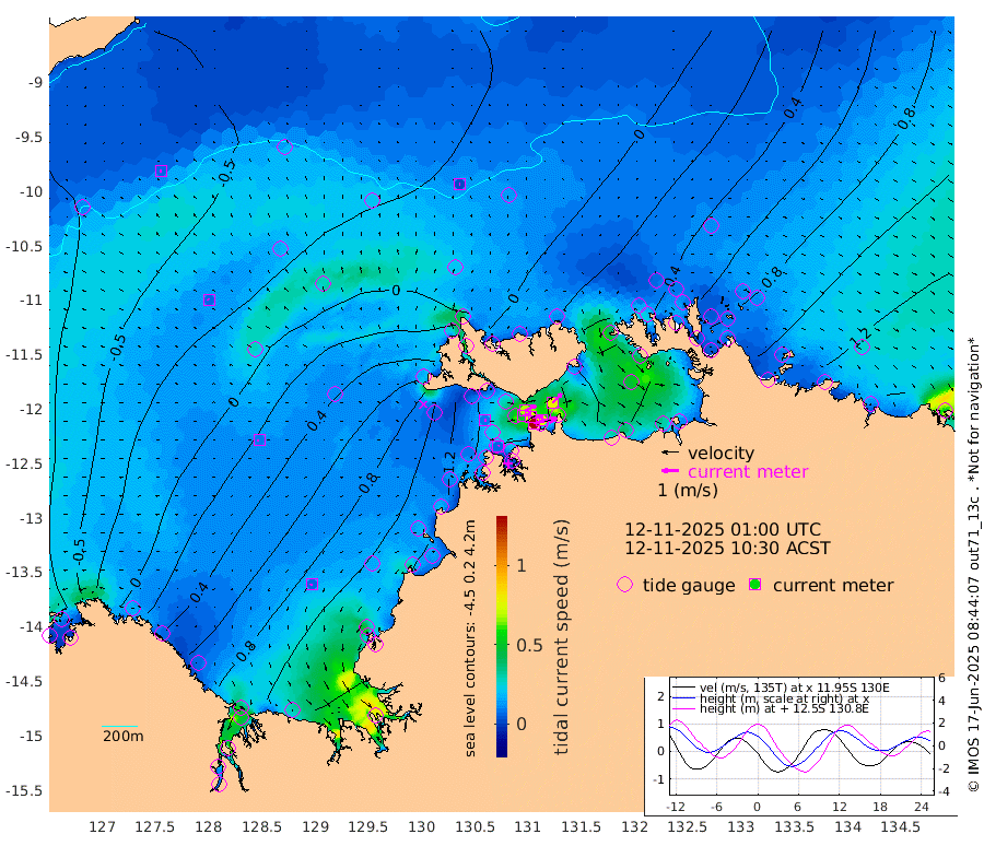 138cm/s 78T +4cm/s rms + 6cm/s 51T. Darwin_C1 52m 77cm/s 92T +4cm/s rms + 7cm/s -161T. Darwin_CW1 22m 47cm/s 74T +4cm/s rms + 8cm/s 61T. Darwin_CW2 34m 78cm/s 44T +3cm/s rms + 9cm/s 98T. Darwin_CW3 22m 73cm/s 90T +5cm/s rms + 7cm/s 88T. Darwin_C3 56m 69cm/s 65T +2cm/s rms + 9cm/s -126T. Darwin_CTbW 22m 2cm/s 102T +9cm/s rms + 2cm/s -110T. NWSLYN 196m 10cm/s 80T +1cm/s rms + 1cm/s -47T. DARBGF 30m 6cm/s -91T +7cm/s rms + 2cm/s -137T. ITFTIS 464m 8cm/s -61T +9cm/s rms + 1cm/s 74T. ITFMHB 146m 8cm/s -144T +4cm/s rms + 1cm/s -134T. ITFJBG 61m 10cm/s -90T +6cm/s rms + 4cm/s 121T. ITFFTB 108m 7cm/s 76T +4cm/s rms + 3cm/s 80T. NRSDAR 19m -82cm Carronade Island -84cm Guy Point -85cm Napier Broome Bay -21cm Lesueur Island 41cm Reveley Island -15cm Rocky Island 80cm Cape Domett 65cm Lacrosse Island 85cm Adolphus Island 39cm Pender Point 28cm Wyndham -22cm The Boxers 6cm Unnamed Shoal -58cm Loxton Shoal 111cm Pelican Island -34cm Calder Shoal -33cm Evans Shoal 116cm Quoin Island 102cm Port Keats 108cm Jones Point 136cm Catfish Island 74cm Cape Scott Offshore 51cm Cape Ford 92cm Anson Bay -18cm Goodrich Bank 85cm Peron Island North 67cm Point Jenny 64cm Native Point 80cm Fish Reef 83cm Tapa Bay 27cm Point Fawcett (Offshore) 86cm Burge Point 77cm Munkunuwa 43cm Beagle A 108cm Parsons Bank 75cm Fenton Patches -20cm Lynedoch Bank 104cm Hancox Shoal Area 93cm Nightcliff 113cm Darwin 98cm Charles Point Patches 88cm Glyde Point 76cm Chambers Bay 83cm Point Stuart 84cm Cape Hotham 63cm Christine Reef 86cm West Alligator Head 74cm East Field Island 77cm Two Hills Bay 6cm Newby Shoal 60cm Camp Point 85cm Medina Inlet South 20cm South Barlow Point -2cm St. Asaph Bay -13cm Cape Van Dieman -5cm Snake Bay -7cm Cache Point -75cm Echo Shoal 8cm Point Jahleel (Off) 49cm Cape Don 32cm Port Essington 31cm Smith Point - West 35cm NW Peacock Island 17cm North Of Jones Shoal 10cm Peacock Island 70cm Point David 42cm D'urville Point 36cm Money Shoal 74cm Copeland Island 95cm Cape Cockburn 65cm One Tree Point 91cm Hogmany Shoal 62cm New Year Island - West 71cm Grant Island 93cm Aurari Bay 113cm Cuthbert Point 94cm North Goulburn Island 116cm Paxie Shoal 127cm Entrance Island 154cm Yabooma Island