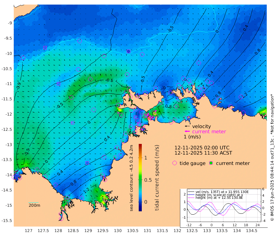 100cm/s 79T +4cm/s rms + 6cm/s 51T. Darwin_C1 52m 50cm/s 92T +4cm/s rms + 7cm/s -161T. Darwin_CW1 22m 30cm/s 69T +4cm/s rms + 8cm/s 61T. Darwin_CW2 34m 63cm/s 44T +3cm/s rms + 9cm/s 98T. Darwin_CW3 22m 46cm/s 90T +5cm/s rms + 7cm/s 88T. Darwin_C3 56m 51cm/s 64T +2cm/s rms + 9cm/s -126T. Darwin_CTbW 22m 3cm/s -23T +9cm/s rms + 2cm/s -110T. NWSLYN 196m 14cm/s -79T +1cm/s rms + 1cm/s -47T. DARBGF 30m 9cm/s -107T +7cm/s rms + 2cm/s -137T. ITFTIS 464m 11cm/s -58T +9cm/s rms + 1cm/s 74T. ITFMHB 146m 9cm/s -80T +4cm/s rms + 1cm/s -134T. ITFJBG 61m 20cm/s -72T +6cm/s rms + 4cm/s 121T. ITFFTB 108m 23cm/s -48T +4cm/s rms + 3cm/s 80T. NRSDAR 19m -67cm Carronade Island -70cm Guy Point -73cm Napier Broome Bay -20cm Lesueur Island 42cm Reveley Island -16cm Rocky Island 91cm Cape Domett 74cm Lacrosse Island 113cm Adolphus Island 91cm Pender Point 95cm Wyndham -54cm The Boxers -33cm Unnamed Shoal -90cm Loxton Shoal 116cm Pelican Island -71cm Calder Shoal -66cm Evans Shoal 154cm Quoin Island 84cm Port Keats 96cm Jones Point 198cm Catfish Island 40cm Cape Scott Offshore -1cm Cape Ford 51cm Anson Bay -54cm Goodrich Bank 44cm Peron Island North 29cm Point Jenny 24cm Native Point 41cm Fish Reef 43cm Tapa Bay -19cm Point Fawcett (Offshore) 50cm Burge Point 31cm Munkunuwa 5cm Beagle A 70cm Parsons Bank 43cm Fenton Patches -53cm Lynedoch Bank 73cm Hancox Shoal Area 60cm Nightcliff 75cm Darwin 53cm Charles Point Patches 80cm Glyde Point 104cm Chambers Bay 117cm Point Stuart 88cm Cape Hotham 87cm Christine Reef 127cm West Alligator Head 131cm East Field Island 90cm Two Hills Bay -32cm Newby Shoal 71cm Camp Point 40cm Medina Inlet South -29cm South Barlow Point -46cm St. Asaph Bay -52cm Cape Van Dieman -47cm Snake Bay -42cm Cache Point -96cm Echo Shoal -22cm Point Jahleel (Off) 28cm Cape Don 1cm Port Essington 0cm Smith Point - West 5cm NW Peacock Island -16cm North Of Jones Shoal -2cm Peacock Island 46cm Point David 12cm D'urville Point 9cm Money Shoal 53cm Copeland Island 68cm Cape Cockburn 39cm One Tree Point 68cm Hogmany Shoal 39cm New Year Island - West 48cm Grant Island 79cm Aurari Bay 107cm Cuthbert Point 78cm North Goulburn Island 113cm Paxie Shoal 137cm Entrance Island 179cm Yabooma Island