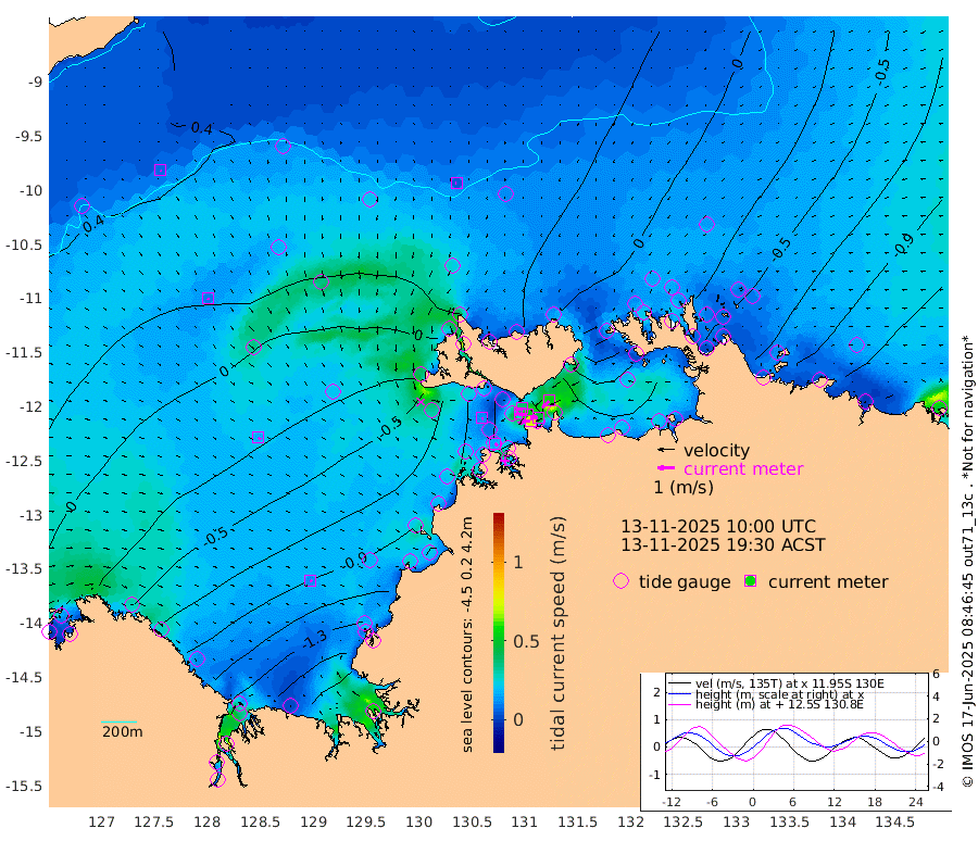 72cm/s -102T +4cm/s rms + 6cm/s 51T. Darwin_C1 52m 44cm/s -90T +4cm/s rms + 7cm/s -161T. Darwin_CW1 22m 28cm/s -106T +4cm/s rms + 8cm/s 61T. Darwin_CW2 34m 54cm/s -136T +3cm/s rms + 9cm/s 98T. Darwin_CW3 22m 53cm/s -90T +5cm/s rms + 7cm/s 88T. Darwin_C3 56m 39cm/s -115T +2cm/s rms + 9cm/s -126T. Darwin_CTbW 22m 3cm/s -77T +9cm/s rms + 2cm/s -110T. NWSLYN 196m 11cm/s 108T +1cm/s rms + 1cm/s -47T. DARBGF 30m 6cm/s 129T +7cm/s rms + 2cm/s -137T. ITFTIS 464m 10cm/s 150T +9cm/s rms + 1cm/s 74T. ITFMHB 146m 11cm/s 124T +4cm/s rms + 1cm/s -134T. ITFJBG 61m 17cm/s 124T +6cm/s rms + 4cm/s 121T. ITFFTB 108m 17cm/s 135T +4cm/s rms + 3cm/s 80T. NRSDAR 19m -13cm Carronade Island -12cm Guy Point -20cm Napier Broome Bay -47cm Lesueur Island -84cm Reveley Island -23cm Rocky Island -139cm Cape Domett -124cm Lacrosse Island -140cm Adolphus Island -158cm Pender Point -163cm Wyndham 0cm The Boxers -16cm Unnamed Shoal 39cm Loxton Shoal -143cm Pelican Island 19cm Calder Shoal 31cm Evans Shoal -185cm Quoin Island -116cm Port Keats -125cm Jones Point -234cm Catfish Island -75cm Cape Scott Offshore -52cm Cape Ford -83cm Anson Bay 25cm Goodrich Bank -68cm Peron Island North -63cm Point Jenny -60cm Native Point -70cm Fish Reef -75cm Tapa Bay -19cm Point Fawcett (Offshore) -83cm Burge Point -58cm Munkunuwa -39cm Beagle A -84cm Parsons Bank -71cm Fenton Patches 24cm Lynedoch Bank -88cm Hancox Shoal Area -83cm Nightcliff -98cm Darwin -81cm Charles Point Patches -99cm Glyde Point -123cm Chambers Bay -131cm Point Stuart -102cm Cape Hotham -103cm Christine Reef -143cm West Alligator Head -149cm East Field Island -102cm Two Hills Bay -19cm Newby Shoal -94cm Camp Point -70cm Medina Inlet South 2cm South Barlow Point 12cm St. Asaph Bay 23cm Cape Van Dieman 20cm Snake Bay 14cm Cache Point 46cm Echo Shoal 1cm Point Jahleel (Off) -43cm Cape Don -11cm Port Essington -6cm Smith Point - West -8cm NW Peacock Island 3cm North Of Jones Shoal -1cm Peacock Island -38cm Point David -11cm D'urville Point -14cm Money Shoal -41cm Copeland Island -53cm Cape Cockburn -35cm One Tree Point -59cm Hogmany Shoal -37cm New Year Island - West -41cm Grant Island -59cm Aurari Bay -82cm Cuthbert Point -64cm North Goulburn Island -101cm Paxie Shoal -109cm Entrance Island -136cm Yabooma Island