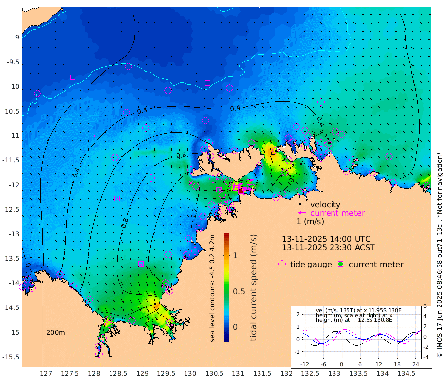 139cm/s 78T +4cm/s rms + 6cm/s 51T. Darwin_C1 52m 79cm/s 93T +4cm/s rms + 7cm/s -161T. Darwin_CW1 22m 67cm/s 73T +4cm/s rms + 8cm/s 61T. Darwin_CW2 34m 61cm/s 50T +3cm/s rms + 9cm/s 98T. Darwin_CW3 22m 91cm/s 89T +5cm/s rms + 7cm/s 88T. Darwin_C3 56m 78cm/s 65T +2cm/s rms + 9cm/s -126T. Darwin_CTbW 22m 1cm/s -137T +9cm/s rms + 2cm/s -110T. NWSLYN 196m 40cm/s 88T +1cm/s rms + 1cm/s -47T. DARBGF 30m 2cm/s 147T +7cm/s rms + 2cm/s -137T. ITFTIS 464m 13cm/s 179T +9cm/s rms + 1cm/s 74T. ITFMHB 146m 20cm/s 165T +4cm/s rms + 1cm/s -134T. ITFJBG 61m 19cm/s 147T +6cm/s rms + 4cm/s 121T. ITFFTB 108m 37cm/s 115T +4cm/s rms + 3cm/s 80T. NRSDAR 19m -9cm Carronade Island -15cm Guy Point -5cm Napier Broome Bay 34cm Lesueur Island 69cm Reveley Island 90cm Rocky Island 81cm Cape Domett 78cm Lacrosse Island 63cm Adolphus Island 11cm Pender Point -9cm Wyndham 57cm The Boxers 63cm Unnamed Shoal 26cm Loxton Shoal 91cm Pelican Island 51cm Calder Shoal 32cm Evans Shoal 62cm Quoin Island 115cm Port Keats 103cm Jones Point 81cm Catfish Island 109cm Cape Scott Offshore 106cm Cape Ford 118cm Anson Bay 38cm Goodrich Bank 116cm Peron Island North 114cm Point Jenny 115cm Native Point 124cm Fish Reef 120cm Tapa Bay 90cm Point Fawcett (Offshore) 120cm Burge Point 122cm Munkunuwa 111cm Beagle A 119cm Parsons Bank 122cm Fenton Patches 29cm Lynedoch Bank 107cm Hancox Shoal Area 121cm Nightcliff 124cm Darwin 118cm Charles Point Patches 77cm Glyde Point 34cm Chambers Bay 29cm Point Stuart 57cm Cape Hotham 34cm Christine Reef 29cm West Alligator Head 8cm East Field Island 45cm Two Hills Bay 94cm Newby Shoal 32cm Camp Point 124cm Medina Inlet South 81cm South Barlow Point 66cm St. Asaph Bay 42cm Cape Van Dieman 46cm Snake Bay 42cm Cache Point 11cm Echo Shoal 44cm Point Jahleel (Off) 51cm Cape Don 41cm Port Essington 46cm Smith Point - West 38cm NW Peacock Island 35cm North Of Jones Shoal 12cm Peacock Island 25cm Point David 42cm D'urville Point 22cm Money Shoal 23cm Copeland Island 37cm Cape Cockburn 30cm One Tree Point 25cm Hogmany Shoal 29cm New Year Island - West 29cm Grant Island 26cm Aurari Bay 22cm Cuthbert Point 27cm North Goulburn Island 7cm Paxie Shoal 5cm Entrance Island -18cm Yabooma Island
