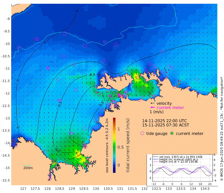 82cm/s -101T +4cm/s rms + 6cm/s 51T. Darwin_C1 52m 42cm/s -90T +4cm/s rms + 7cm/s -161T. Darwin_CW1 22m 47cm/s -107T +4cm/s rms + 8cm/s 61T. Darwin_CW2 34m 31cm/s -131T +3cm/s rms + 9cm/s 98T. Darwin_CW3 22m 59cm/s -92T +5cm/s rms + 7cm/s 88T. Darwin_C3 56m 52cm/s -116T +2cm/s rms + 9cm/s -126T. Darwin_CTbW 22m 2cm/s 137T +9cm/s rms + 2cm/s -110T. NWSLYN 196m 37cm/s -91T +1cm/s rms + 1cm/s -47T. DARBGF 30m 3cm/s 9T +7cm/s rms + 2cm/s -137T. ITFTIS 464m 13cm/s 1T +9cm/s rms + 1cm/s 74T. ITFMHB 146m 23cm/s -17T +4cm/s rms + 1cm/s -134T. ITFJBG 61m 20cm/s -33T +6cm/s rms + 4cm/s 121T. ITFFTB 108m 33cm/s -61T +4cm/s rms + 3cm/s 80T. NRSDAR 19m 21cm Carronade Island 29cm Guy Point 29cm Napier Broome Bay -18cm Lesueur Island -49cm Reveley Island -33cm Rocky Island -60cm Cape Domett -64cm Lacrosse Island -49cm Adolphus Island 17cm Pender Point 25cm Wyndham -28cm The Boxers -33cm Unnamed Shoal 7cm Loxton Shoal -79cm Pelican Island -27cm Calder Shoal -10cm Evans Shoal -45cm Quoin Island -93cm Port Keats -92cm Jones Point -101cm Catfish Island -93cm Cape Scott Offshore -95cm Cape Ford -105cm Anson Bay -18cm Goodrich Bank -104cm Peron Island North -103cm Point Jenny -99cm Native Point -115cm Fish Reef -104cm Tapa Bay -75cm Point Fawcett (Offshore) -109cm Burge Point -100cm Munkunuwa -102cm Beagle A -105cm Parsons Bank -113cm Fenton Patches -8cm Lynedoch Bank -99cm Hancox Shoal Area -113cm Nightcliff -108cm Darwin -102cm Charles Point Patches -74cm Glyde Point -53cm Chambers Bay -44cm Point Stuart -64cm Cape Hotham -45cm Christine Reef -44cm West Alligator Head -29cm East Field Island -52cm Two Hills Bay -71cm Newby Shoal -36cm Camp Point -104cm Medina Inlet South -59cm South Barlow Point -48cm St. Asaph Bay -22cm Cape Van Dieman -23cm Snake Bay -29cm Cache Point 8cm Echo Shoal -32cm Point Jahleel (Off) -47cm Cape Don -34cm Port Essington -41cm Smith Point - West -35cm NW Peacock Island -31cm North Of Jones Shoal -12cm Peacock Island -31cm Point David -40cm D'urville Point -24cm Money Shoal -33cm Copeland Island -52cm Cape Cockburn -35cm One Tree Point -35cm Hogmany Shoal -33cm New Year Island - West -33cm Grant Island -43cm Aurari Bay -44cm Cuthbert Point -42cm North Goulburn Island -28cm Paxie Shoal -43cm Entrance Island -44cm Yabooma Island