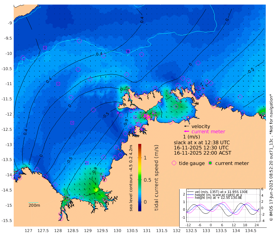71cm/s -102T +4cm/s rms + 6cm/s 51T. Darwin_C1 52m 55cm/s -88T +4cm/s rms + 7cm/s -161T. Darwin_CW1 22m 51cm/s -107T +4cm/s rms + 8cm/s 61T. Darwin_CW2 34m 35cm/s -133T +3cm/s rms + 9cm/s 98T. Darwin_CW3 22m 79cm/s -91T +5cm/s rms + 7cm/s 88T. Darwin_C3 56m 37cm/s -115T +2cm/s rms + 9cm/s -126T. Darwin_CTbW 22m 1cm/s -118T +9cm/s rms + 2cm/s -110T. NWSLYN 196m 19cm/s -96T +1cm/s rms + 1cm/s -47T. DARBGF 30m 3cm/s 94T +7cm/s rms + 2cm/s -137T. ITFTIS 464m 4cm/s 86T +9cm/s rms + 1cm/s 74T. ITFMHB 146m 11cm/s 0T +4cm/s rms + 1cm/s -134T. ITFJBG 61m 5cm/s 36T +6cm/s rms + 4cm/s 121T. ITFFTB 108m 16cm/s -72T +4cm/s rms + 3cm/s 80T. NRSDAR 19m 80cm Carronade Island 83cm Guy Point 78cm Napier Broome Bay 19cm Lesueur Island -46cm Reveley Island -4cm Rocky Island -85cm Cape Domett -75cm Lacrosse Island -66cm Adolphus Island -42cm Pender Point -22cm Wyndham 21cm The Boxers -5cm Unnamed Shoal 64cm Loxton Shoal -112cm Pelican Island 31cm Calder Shoal 44cm Evans Shoal -99cm Quoin Island -100cm Port Keats -121cm Jones Point -111cm Catfish Island -82cm Cape Scott Offshore -87cm Cape Ford -99cm Anson Bay 30cm Goodrich Bank -80cm Peron Island North -78cm Point Jenny -77cm Native Point -89cm Fish Reef -95cm Tapa Bay -29cm Point Fawcett (Offshore) -95cm Burge Point -92cm Munkunuwa -54cm Beagle A -99cm Parsons Bank -87cm Fenton Patches 37cm Lynedoch Bank -96cm Hancox Shoal Area -96cm Nightcliff -110cm Darwin -96cm Charles Point Patches -78cm Glyde Point -62cm Chambers Bay -62cm Point Stuart -66cm Cape Hotham -43cm Christine Reef -66cm West Alligator Head -54cm East Field Island -51cm Two Hills Bay -1cm Newby Shoal -47cm Camp Point -91cm Medina Inlet South -12cm South Barlow Point 3cm St. Asaph Bay 25cm Cape Van Dieman 24cm Snake Bay 24cm Cache Point 75cm Echo Shoal 12cm Point Jahleel (Off) -20cm Cape Don 2cm Port Essington 6cm Smith Point - West 8cm NW Peacock Island 18cm North Of Jones Shoal 4cm Peacock Island -15cm Point David 3cm D'urville Point 9cm Money Shoal -17cm Copeland Island -17cm Cape Cockburn -10cm One Tree Point -20cm Hogmany Shoal -9cm New Year Island - West -12cm Grant Island -30cm Aurari Bay -39cm Cuthbert Point -28cm North Goulburn Island -52cm Paxie Shoal -59cm Entrance Island -76cm Yabooma Island