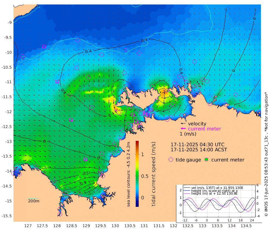 30cm/s 78T +4cm/s rms + 6cm/s 51T. Darwin_C1 52m 9cm/s 73T +4cm/s rms + 7cm/s -161T. Darwin_CW1 22m 27cm/s 75T +4cm/s rms + 8cm/s 61T. Darwin_CW2 34m 15cm/s -164T +3cm/s rms + 9cm/s 98T. Darwin_CW3 22m 21cm/s 81T +5cm/s rms + 7cm/s 88T. Darwin_C3 56m 29cm/s 63T +2cm/s rms + 9cm/s -126T. Darwin_CTbW 22m 9cm/s 156T +9cm/s rms + 2cm/s -110T. NWSLYN 196m 54cm/s 94T +1cm/s rms + 1cm/s -47T. DARBGF 30m 6cm/s 118T +7cm/s rms + 2cm/s -137T. ITFTIS 464m 20cm/s 163T +9cm/s rms + 1cm/s 74T. ITFMHB 146m 37cm/s 147T +4cm/s rms + 1cm/s -134T. ITFJBG 61m 40cm/s 134T +6cm/s rms + 4cm/s 121T. ITFFTB 108m 56cm/s 123T +4cm/s rms + 3cm/s 80T. NRSDAR 19m -53cm Carronade Island -52cm Guy Point -58cm Napier Broome Bay -47cm Lesueur Island -50cm Reveley Island -56cm Rocky Island -95cm Cape Domett -77cm Lacrosse Island -142cm Adolphus Island -193cm Pender Point -219cm Wyndham 23cm The Boxers 37cm Unnamed Shoal 19cm Loxton Shoal -66cm Pelican Island 37cm Calder Shoal 33cm Evans Shoal -173cm Quoin Island -34cm Port Keats -29cm Jones Point -130cm Catfish Island 35cm Cape Scott Offshore 28cm Cape Ford 47cm Anson Bay 38cm Goodrich Bank 39cm Peron Island North 47cm Point Jenny 47cm Native Point 40cm Fish Reef 45cm Tapa Bay 66cm Point Fawcett (Offshore) 17cm Burge Point 51cm Munkunuwa 41cm Beagle A 25cm Parsons Bank 20cm Fenton Patches 26cm Lynedoch Bank 19cm Hancox Shoal Area 30cm Nightcliff 12cm Darwin 27cm Charles Point Patches -29cm Glyde Point -67cm Chambers Bay -93cm Point Stuart -40cm Cape Hotham -72cm Christine Reef -107cm West Alligator Head -139cm East Field Island -53cm Two Hills Bay 16cm Newby Shoal -59cm Camp Point 39cm Medina Inlet South 57cm South Barlow Point 59cm St. Asaph Bay 45cm Cape Van Dieman 44cm Snake Bay 40cm Cache Point 16cm Echo Shoal 30cm Point Jahleel (Off) 9cm Cape Don 28cm Port Essington 34cm Smith Point - West 28cm NW Peacock Island 37cm North Of Jones Shoal 13cm Peacock Island 19cm Point David 32cm D'urville Point 20cm Money Shoal 17cm Copeland Island 17cm Cape Cockburn 19cm One Tree Point 11cm Hogmany Shoal 13cm New Year Island - West 12cm Grant Island 6cm Aurari Bay -13cm Cuthbert Point 7cm North Goulburn Island -19cm Paxie Shoal -30cm Entrance Island -46cm Yabooma Island