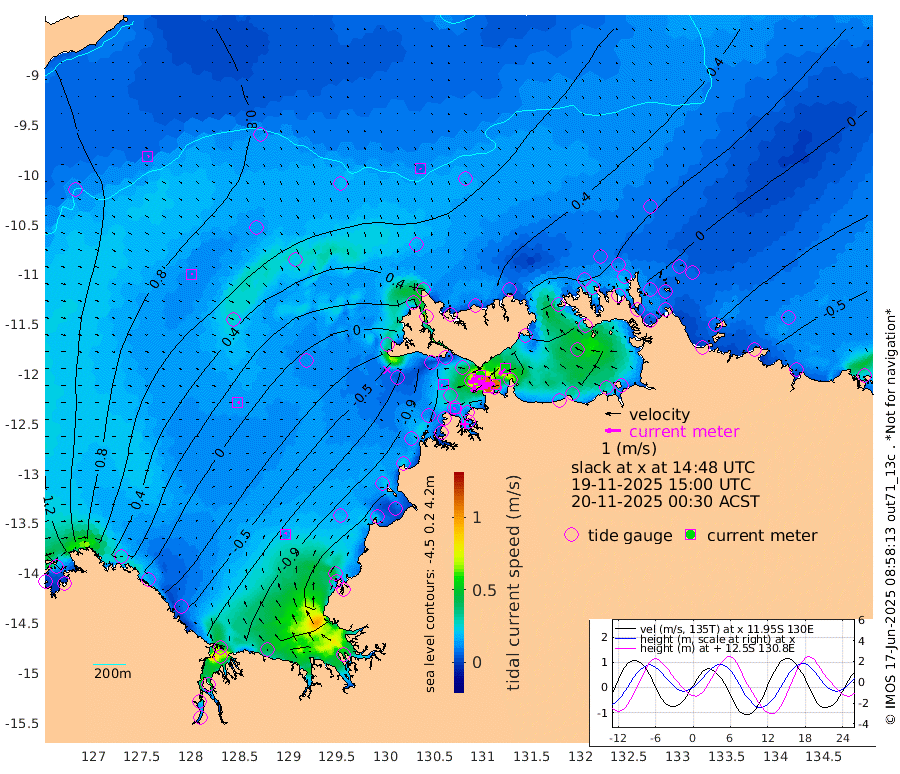 113cm/s -101T +4cm/s rms + 6cm/s 51T. Darwin_C1 52m 108cm/s -90T +4cm/s rms + 7cm/s -161T. Darwin_CW1 22m 64cm/s -106T +4cm/s rms + 8cm/s 61T. Darwin_CW2 34m 53cm/s -134T +3cm/s rms + 9cm/s 98T. Darwin_CW3 22m 108cm/s -91T +5cm/s rms + 7cm/s 88T. Darwin_C3 56m 58cm/s -115T +2cm/s rms + 9cm/s -126T. Darwin_CTbW 22m 6cm/s 143T +9cm/s rms + 2cm/s -110T. NWSLYN 196m 13cm/s -106T +1cm/s rms + 1cm/s -47T. DARBGF 30m 8cm/s 51T +7cm/s rms + 2cm/s -137T. ITFTIS 464m 9cm/s 67T +9cm/s rms + 1cm/s 74T. ITFMHB 146m 12cm/s 25T +4cm/s rms + 1cm/s -134T. ITFJBG 61m 13cm/s 74T +6cm/s rms + 4cm/s 121T. ITFFTB 108m 11cm/s -97T +4cm/s rms + 3cm/s 80T. NRSDAR 19m 131cm Carronade Island 131cm Guy Point 135cm Napier Broome Bay 52cm Lesueur Island -54cm Reveley Island -20cm Rocky Island -111cm Cape Domett -91cm Lacrosse Island -116cm Adolphus Island -68cm Pender Point -45cm Wyndham 56cm The Boxers 42cm Unnamed Shoal 97cm Loxton Shoal -147cm Pelican Island 67cm Calder Shoal 73cm Evans Shoal -166cm Quoin Island -124cm Port Keats -138cm Jones Point -140cm Catfish Island -84cm Cape Scott Offshore -65cm Cape Ford -103cm Anson Bay 59cm Goodrich Bank -80cm Peron Island North -73cm Point Jenny -70cm Native Point -88cm Fish Reef -95cm Tapa Bay -5cm Point Fawcett (Offshore) -99cm Burge Point -98cm Munkunuwa -44cm Beagle A -111cm Parsons Bank -92cm Fenton Patches 65cm Lynedoch Bank -110cm Hancox Shoal Area -109cm Nightcliff -125cm Darwin -103cm Charles Point Patches -86cm Glyde Point -68cm Chambers Bay -69cm Point Stuart -70cm Cape Hotham -53cm Christine Reef -77cm West Alligator Head -67cm East Field Island -53cm Two Hills Bay 25cm Newby Shoal -48cm Camp Point -95cm Medina Inlet South 6cm South Barlow Point 28cm St. Asaph Bay 56cm Cape Van Dieman 53cm Snake Bay 55cm Cache Point 110cm Echo Shoal 36cm Point Jahleel (Off) -5cm Cape Don 24cm Port Essington 25cm Smith Point - West 29cm NW Peacock Island 42cm North Of Jones Shoal 13cm Peacock Island 6cm Point David 22cm D'urville Point 32cm Money Shoal 1cm Copeland Island 6cm Cape Cockburn 10cm One Tree Point 6cm Hogmany Shoal 14cm New Year Island - West 9cm Grant Island -17cm Aurari Bay -29cm Cuthbert Point -9cm North Goulburn Island -37cm Paxie Shoal -49cm Entrance Island -74cm Yabooma Island