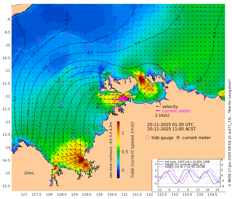 178cm/s -102T +4cm/s rms + 6cm/s 51T. Darwin_C1 52m 141cm/s -90T +4cm/s rms + 7cm/s -161T. Darwin_CW1 22m 122cm/s -108T +4cm/s rms + 8cm/s 61T. Darwin_CW2 34m 68cm/s -129T +3cm/s rms + 9cm/s 98T. Darwin_CW3 22m 165cm/s -91T +5cm/s rms + 7cm/s 88T. Darwin_C3 56m 109cm/s -115T +2cm/s rms + 9cm/s -126T. Darwin_CTbW 22m 6cm/s -88T +9cm/s rms + 2cm/s -110T. NWSLYN 196m 72cm/s -93T +1cm/s rms + 1cm/s -47T. DARBGF 30m 8cm/s -162T +7cm/s rms + 2cm/s -137T. ITFTIS 464m 8cm/s -29T +9cm/s rms + 1cm/s 74T. ITFMHB 146m 33cm/s -20T +4cm/s rms + 1cm/s -134T. ITFJBG 61m 26cm/s -50T +6cm/s rms + 4cm/s 121T. ITFFTB 108m 57cm/s -63T +4cm/s rms + 3cm/s 80T. NRSDAR 19m 10cm Carronade Island 12cm Guy Point 8cm Napier Broome Bay -99cm Lesueur Island -151cm Reveley Island -64cm Rocky Island -182cm Cape Domett -185cm Lacrosse Island -143cm Adolphus Island -41cm Pender Point -11cm Wyndham -116cm The Boxers -141cm Unnamed Shoal -53cm Loxton Shoal -206cm Pelican Island -113cm Calder Shoal -64cm Evans Shoal -151cm Quoin Island -249cm Port Keats -231cm Jones Point -105cm Catfish Island -241cm Cape Scott Offshore -273cm Cape Ford -269cm Anson Bay -86cm Goodrich Bank -246cm Peron Island North -248cm Point Jenny -249cm Native Point -258cm Fish Reef -268cm Tapa Bay -191cm Point Fawcett (Offshore) -271cm Burge Point -253cm Munkunuwa -236cm Beagle A -256cm Parsons Bank -266cm Fenton Patches -67cm Lynedoch Bank -248cm Hancox Shoal Area -278cm Nightcliff -280cm Darwin -276cm Charles Point Patches -177cm Glyde Point -89cm Chambers Bay -66cm Point Stuart -136cm Cape Hotham -85cm Christine Reef -61cm West Alligator Head -26cm East Field Island -95cm Two Hills Bay -194cm Newby Shoal -100cm Camp Point -265cm Medina Inlet South -170cm South Barlow Point -144cm St. Asaph Bay -93cm Cape Van Dieman -104cm Snake Bay -94cm Cache Point -29cm Echo Shoal -97cm Point Jahleel (Off) -113cm Cape Don -95cm Port Essington -98cm Smith Point - West -89cm NW Peacock Island -90cm North Of Jones Shoal -32cm Peacock Island -86cm Point David -95cm D'urville Point -79cm Money Shoal -82cm Copeland Island -112cm Cape Cockburn -90cm One Tree Point -95cm Hogmany Shoal -91cm New Year Island - West -89cm Grant Island -87cm Aurari Bay -77cm Cuthbert Point -88cm North Goulburn Island -78cm Paxie Shoal -68cm Entrance Island -53cm Yabooma Island