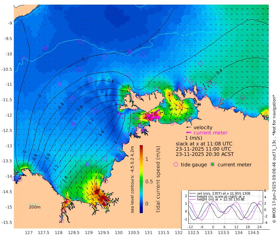 223cm/s 78T +4cm/s rms + 6cm/s 51T. Darwin_C1 52m 166cm/s 93T +4cm/s rms + 7cm/s -161T. Darwin_CW1 22m 120cm/s 72T +4cm/s rms + 8cm/s 61T. Darwin_CW2 34m 121cm/s 46T +3cm/s rms + 9cm/s 98T. Darwin_CW3 22m 183cm/s 89T +5cm/s rms + 7cm/s 88T. Darwin_C3 56m 116cm/s 66T +2cm/s rms + 9cm/s -126T. Darwin_CTbW 22m 4cm/s -1T +9cm/s rms + 2cm/s -110T. NWSLYN 196m 35cm/s 77T +1cm/s rms + 1cm/s -47T. DARBGF 30m 4cm/s -111T +7cm/s rms + 2cm/s -137T. ITFTIS 464m 13cm/s -152T +9cm/s rms + 1cm/s 74T. ITFMHB 146m 16cm/s -149T +4cm/s rms + 1cm/s -134T. ITFJBG 61m 10cm/s -138T +6cm/s rms + 4cm/s 121T. ITFFTB 108m 27cm/s 99T +4cm/s rms + 3cm/s 80T. NRSDAR 19m -22cm Carronade Island -16cm Guy Point -22cm Napier Broome Bay 78cm Lesueur Island 182cm Reveley Island 118cm Rocky Island 254cm Cape Domett 232cm Lacrosse Island 263cm Adolphus Island 189cm Pender Point 167cm Wyndham 50cm The Boxers 42cm Unnamed Shoal -6cm Loxton Shoal 276cm Pelican Island 37cm Calder Shoal 4cm Evans Shoal 308cm Quoin Island 273cm Port Keats 247cm Jones Point 247cm Catfish Island 209cm Cape Scott Offshore 192cm Cape Ford 229cm Anson Bay 16cm Goodrich Bank 199cm Peron Island North 200cm Point Jenny 199cm Native Point 207cm Fish Reef 225cm Tapa Bay 111cm Point Fawcett (Offshore) 233cm Burge Point 209cm Munkunuwa 174cm Beagle A 226cm Parsons Bank 229cm Fenton Patches 4cm Lynedoch Bank 230cm Hancox Shoal Area 248cm Nightcliff 254cm Darwin 234cm Charles Point Patches 180cm Glyde Point 141cm Chambers Bay 125cm Point Stuart 147cm Cape Hotham 137cm Christine Reef 136cm West Alligator Head 119cm East Field Island 120cm Two Hills Bay 124cm Newby Shoal 120cm Camp Point 220cm Medina Inlet South 92cm South Barlow Point 66cm St. Asaph Bay 17cm Cape Van Dieman 23cm Snake Bay 22cm Cache Point -25cm Echo Shoal 38cm Point Jahleel (Off) 77cm Cape Don 36cm Port Essington 41cm Smith Point - West 31cm NW Peacock Island 23cm North Of Jones Shoal 8cm Peacock Island 30cm Point David 36cm D'urville Point 18cm Money Shoal 32cm Copeland Island 44cm Cape Cockburn 34cm One Tree Point 40cm Hogmany Shoal 34cm New Year Island - West 37cm Grant Island 45cm Aurari Bay 56cm Cuthbert Point 44cm North Goulburn Island 57cm Paxie Shoal 62cm Entrance Island 62cm Yabooma Island