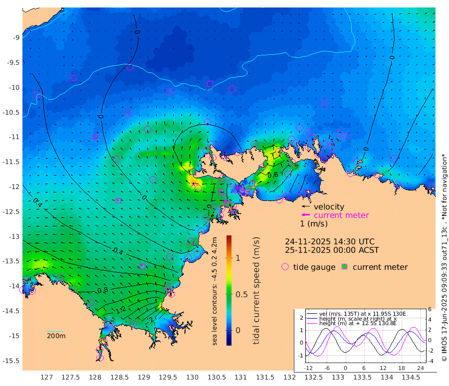 1cm/s 144T +4cm/s rms + 6cm/s 51T. Darwin_C1 52m 25cm/s 86T +4cm/s rms + 7cm/s -161T. Darwin_CW1 22m 1cm/s -172T +4cm/s rms + 8cm/s 61T. Darwin_CW2 34m 23cm/s 34T +3cm/s rms + 9cm/s 98T. Darwin_CW3 22m 25cm/s 96T +5cm/s rms + 7cm/s 88T. Darwin_C3 56m 2cm/s 126T +2cm/s rms + 9cm/s -126T. Darwin_CTbW 22m 3cm/s 13T +9cm/s rms + 2cm/s -110T. NWSLYN 196m 39cm/s -83T +1cm/s rms + 1cm/s -47T. DARBGF 30m 5cm/s -56T +7cm/s rms + 2cm/s -137T. ITFTIS 464m 10cm/s -24T +9cm/s rms + 1cm/s 74T. ITFMHB 146m 33cm/s -30T +4cm/s rms + 1cm/s -134T. ITFJBG 61m 31cm/s -46T +6cm/s rms + 4cm/s 121T. ITFFTB 108m 48cm/s -54T +4cm/s rms + 3cm/s 80T. NRSDAR 19m 126cm Carronade Island 130cm Guy Point 136cm Napier Broome Bay 121cm Lesueur Island 111cm Reveley Island 93cm Rocky Island 167cm Cape Domett 155cm Lacrosse Island 212cm Adolphus Island 273cm Pender Point 308cm Wyndham 30cm The Boxers -1cm Unnamed Shoal 22cm Loxton Shoal 144cm Pelican Island 9cm Calder Shoal 4cm Evans Shoal 272cm Quoin Island 91cm Port Keats 81cm Jones Point 351cm Catfish Island 37cm Cape Scott Offshore -32cm Cape Ford 24cm Anson Bay -12cm Goodrich Bank 15cm Peron Island North 5cm Point Jenny 3cm Native Point 10cm Fish Reef 9cm Tapa Bay -10cm Point Fawcett (Offshore) 14cm Burge Point -18cm Munkunuwa 1cm Beagle A 4cm Parsons Bank 17cm Fenton Patches -1cm Lynedoch Bank 24cm Hancox Shoal Area 20cm Nightcliff 30cm Darwin 23cm Charles Point Patches 71cm Glyde Point 135cm Chambers Bay 145cm Point Stuart 83cm Cape Hotham 120cm Christine Reef 165cm West Alligator Head 197cm East Field Island 102cm Two Hills Bay 25cm Newby Shoal 99cm Camp Point 8cm Medina Inlet South -27cm South Barlow Point -20cm St. Asaph Bay -19cm Cape Van Dieman -20cm Snake Bay -7cm Cache Point 36cm Echo Shoal 1cm Point Jahleel (Off) 26cm Cape Don -4cm Port Essington -7cm Smith Point - West -7cm NW Peacock Island -4cm North Of Jones Shoal -3cm Peacock Island -8cm Point David -12cm D'urville Point -3cm Money Shoal -7cm Copeland Island -3cm Cape Cockburn -1cm One Tree Point 8cm Hogmany Shoal 4cm New Year Island - West 1cm Grant Island 8cm Aurari Bay 26cm Cuthbert Point 10cm North Goulburn Island 37cm Paxie Shoal 40cm Entrance Island 55cm Yabooma Island