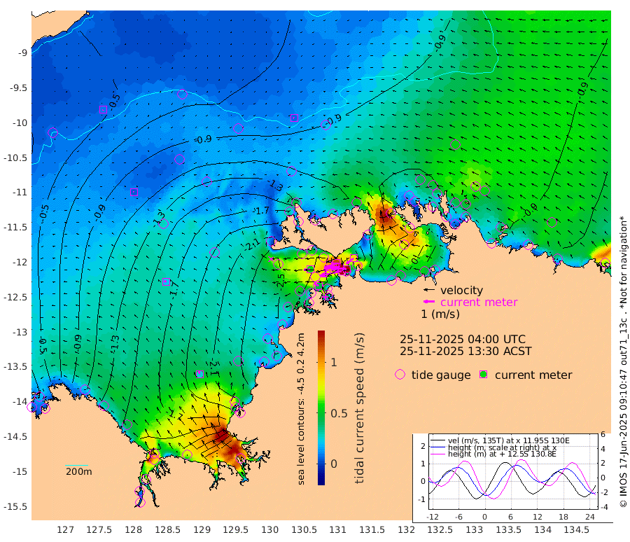 205cm/s -102T +4cm/s rms + 6cm/s 51T. Darwin_C1 52m 136cm/s -89T +4cm/s rms + 7cm/s -161T. Darwin_CW1 22m 109cm/s -108T +4cm/s rms + 8cm/s 61T. Darwin_CW2 34m 84cm/s -126T +3cm/s rms + 9cm/s 98T. Darwin_CW3 22m 139cm/s -91T +5cm/s rms + 7cm/s 88T. Darwin_C3 56m 117cm/s -116T +2cm/s rms + 9cm/s -126T. Darwin_CTbW 22m 8cm/s -60T +9cm/s rms + 2cm/s -110T. NWSLYN 196m 59cm/s -95T +1cm/s rms + 1cm/s -47T. DARBGF 30m 9cm/s -162T +7cm/s rms + 2cm/s -137T. ITFTIS 464m 6cm/s -41T +9cm/s rms + 1cm/s 74T. ITFMHB 146m 26cm/s -19T +4cm/s rms + 1cm/s -134T. ITFJBG 61m 21cm/s -53T +6cm/s rms + 4cm/s 121T. ITFFTB 108m 44cm/s -65T +4cm/s rms + 3cm/s 80T. NRSDAR 19m 0cm Carronade Island -2cm Guy Point -6cm Napier Broome Bay -85cm Lesueur Island -139cm Reveley Island -90cm Rocky Island -164cm Cape Domett -151cm Lacrosse Island -128cm Adolphus Island -43cm Pender Point -4cm Wyndham -121cm The Boxers -133cm Unnamed Shoal -70cm Loxton Shoal -180cm Pelican Island -113cm Calder Shoal -74cm Evans Shoal -107cm Quoin Island -232cm Port Keats -206cm Jones Point 7cm Catfish Island -207cm Cape Scott Offshore -304cm Cape Ford -232cm Anson Bay -97cm Goodrich Bank -215cm Peron Island North -233cm Point Jenny -237cm Native Point -229cm Fish Reef -249cm Tapa Bay -173cm Point Fawcett (Offshore) -254cm Burge Point -237cm Munkunuwa -218cm Beagle A -241cm Parsons Bank -246cm Fenton Patches -76cm Lynedoch Bank -229cm Hancox Shoal Area -245cm Nightcliff -256cm Darwin -257cm Charles Point Patches -155cm Glyde Point -57cm Chambers Bay -36cm Point Stuart -106cm Cape Hotham -72cm Christine Reef -27cm West Alligator Head 9cm East Field Island -69cm Two Hills Bay -194cm Newby Shoal -83cm Camp Point -243cm Medina Inlet South -168cm South Barlow Point -141cm St. Asaph Bay -103cm Cape Van Dieman -109cm Snake Bay -99cm Cache Point -32cm Echo Shoal -97cm Point Jahleel (Off) -106cm Cape Don -98cm Port Essington -100cm Smith Point - West -93cm NW Peacock Island -83cm North Of Jones Shoal -29cm Peacock Island -85cm Point David -99cm D'urville Point -82cm Money Shoal -79cm Copeland Island -102cm Cape Cockburn -84cm One Tree Point -100cm Hogmany Shoal -87cm New Year Island - West -90cm Grant Island -71cm Aurari Bay -74cm Cuthbert Point -80cm North Goulburn Island -66cm Paxie Shoal -54cm Entrance Island -21cm Yabooma Island