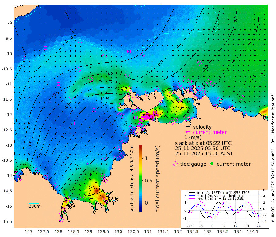 230cm/s -102T +4cm/s rms + 6cm/s 51T. Darwin_C1 52m 161cm/s -90T +4cm/s rms + 7cm/s -161T. Darwin_CW1 22m 104cm/s -107T +4cm/s rms + 8cm/s 61T. Darwin_CW2 34m 112cm/s -133T +3cm/s rms + 9cm/s 98T. Darwin_CW3 22m 152cm/s -90T +5cm/s rms + 7cm/s 88T. Darwin_C3 56m 132cm/s -115T +2cm/s rms + 9cm/s -126T. Darwin_CTbW 22m 5cm/s -89T +9cm/s rms + 2cm/s -110T. NWSLYN 196m 28cm/s -103T +1cm/s rms + 1cm/s -47T. DARBGF 30m 9cm/s 154T +7cm/s rms + 2cm/s -137T. ITFTIS 464m 8cm/s 152T +9cm/s rms + 1cm/s 74T. ITFMHB 146m 8cm/s 39T +4cm/s rms + 1cm/s -134T. ITFJBG 61m 9cm/s 117T +6cm/s rms + 4cm/s 121T. ITFFTB 108m 17cm/s -95T +4cm/s rms + 3cm/s 80T. NRSDAR 19m 4cm Carronade Island 0cm Guy Point -4cm Napier Broome Bay -103cm Lesueur Island -183cm Reveley Island -96cm Rocky Island -256cm Cape Domett -231cm Lacrosse Island -258cm Adolphus Island -199cm Pender Point -180cm Wyndham -75cm The Boxers -94cm Unnamed Shoal -11cm Loxton Shoal -275cm Pelican Island -51cm Calder Shoal -17cm Evans Shoal -294cm Quoin Island -281cm Port Keats -257cm Jones Point -216cm Catfish Island -211cm Cape Scott Offshore -215cm Cape Ford -235cm Anson Bay -40cm Goodrich Bank -204cm Peron Island North -207cm Point Jenny -209cm Native Point -209cm Fish Reef -236cm Tapa Bay -120cm Point Fawcett (Offshore) -243cm Burge Point -209cm Munkunuwa -178cm Beagle A -241cm Parsons Bank -233cm Fenton Patches -30cm Lynedoch Bank -243cm Hancox Shoal Area -251cm Nightcliff -270cm Darwin -252cm Charles Point Patches -199cm Glyde Point -151cm Chambers Bay -142cm Point Stuart -164cm Cape Hotham -149cm Christine Reef -147cm West Alligator Head -131cm East Field Island -138cm Two Hills Bay -145cm Newby Shoal -146cm Camp Point -227cm Medina Inlet South -109cm South Barlow Point -78cm St. Asaph Bay -43cm Cape Van Dieman -54cm Snake Bay -47cm Cache Point 21cm Echo Shoal -62cm Point Jahleel (Off) -105cm Cape Don -71cm Port Essington -71cm Smith Point - West -69cm NW Peacock Island -50cm North Of Jones Shoal -19cm Peacock Island -89cm Point David -75cm D'urville Point -65cm Money Shoal -87cm Copeland Island -110cm Cape Cockburn -85cm One Tree Point -114cm Hogmany Shoal -91cm New Year Island - West -96cm Grant Island -102cm Aurari Bay -121cm Cuthbert Point -106cm North Goulburn Island -130cm Paxie Shoal -129cm Entrance Island -130cm Yabooma Island