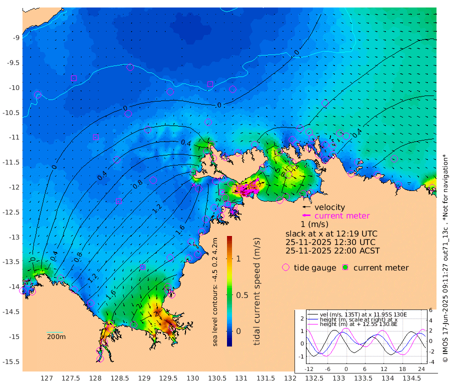 200cm/s 78T +4cm/s rms + 6cm/s 51T. Darwin_C1 52m 132cm/s 93T +4cm/s rms + 7cm/s -161T. Darwin_CW1 22m 101cm/s 72T +4cm/s rms + 8cm/s 61T. Darwin_CW2 34m 111cm/s 46T +3cm/s rms + 9cm/s 98T. Darwin_CW3 22m 150cm/s 90T +5cm/s rms + 7cm/s 88T. Darwin_C3 56m 105cm/s 66T +2cm/s rms + 9cm/s -126T. Darwin_CTbW 22m 4cm/s -8T +9cm/s rms + 2cm/s -110T. NWSLYN 196m 23cm/s 71T +1cm/s rms + 1cm/s -47T. DARBGF 30m 4cm/s -106T +7cm/s rms + 2cm/s -137T. ITFTIS 464m 10cm/s -145T +9cm/s rms + 1cm/s 74T. ITFMHB 146m 12cm/s -129T +4cm/s rms + 1cm/s -134T. ITFJBG 61m 10cm/s -109T +6cm/s rms + 4cm/s 121T. ITFFTB 108m 15cm/s 83T +4cm/s rms + 3cm/s 80T. NRSDAR 19m 8cm Carronade Island 13cm Guy Point 12cm Napier Broome Bay 82cm Lesueur Island 169cm Reveley Island 125cm Rocky Island 239cm Cape Domett 217cm Lacrosse Island 255cm Adolphus Island 203cm Pender Point 190cm Wyndham 47cm The Boxers 34cm Unnamed Shoal -2cm Loxton Shoal 247cm Pelican Island 32cm Calder Shoal 2cm Evans Shoal 294cm Quoin Island 246cm Port Keats 214cm Jones Point 245cm Catfish Island 177cm Cape Scott Offshore 143cm Cape Ford 192cm Anson Bay 9cm Goodrich Bank 165cm Peron Island North 170cm Point Jenny 169cm Native Point 173cm Fish Reef 188cm Tapa Bay 87cm Point Fawcett (Offshore) 201cm Burge Point 173cm Munkunuwa 148cm Beagle A 193cm Parsons Bank 197cm Fenton Patches 3cm Lynedoch Bank 196cm Hancox Shoal Area 215cm Nightcliff 216cm Darwin 195cm Charles Point Patches 161cm Glyde Point 141cm Chambers Bay 128cm Point Stuart 136cm Cape Hotham 140cm Christine Reef 140cm West Alligator Head 131cm East Field Island 117cm Two Hills Bay 116cm Newby Shoal 116cm Camp Point 184cm Medina Inlet South 74cm South Barlow Point 50cm St. Asaph Bay 10cm Cape Van Dieman 15cm Snake Bay 16cm Cache Point -19cm Echo Shoal 31cm Point Jahleel (Off) 70cm Cape Don 28cm Port Essington 33cm Smith Point - West 25cm NW Peacock Island 17cm North Of Jones Shoal 6cm Peacock Island 24cm Point David 29cm D'urville Point 15cm Money Shoal 25cm Copeland Island 39cm Cape Cockburn 29cm One Tree Point 32cm Hogmany Shoal 30cm New Year Island - West 33cm Grant Island 40cm Aurari Bay 54cm Cuthbert Point 42cm North Goulburn Island 55cm Paxie Shoal 62cm Entrance Island 63cm Yabooma Island