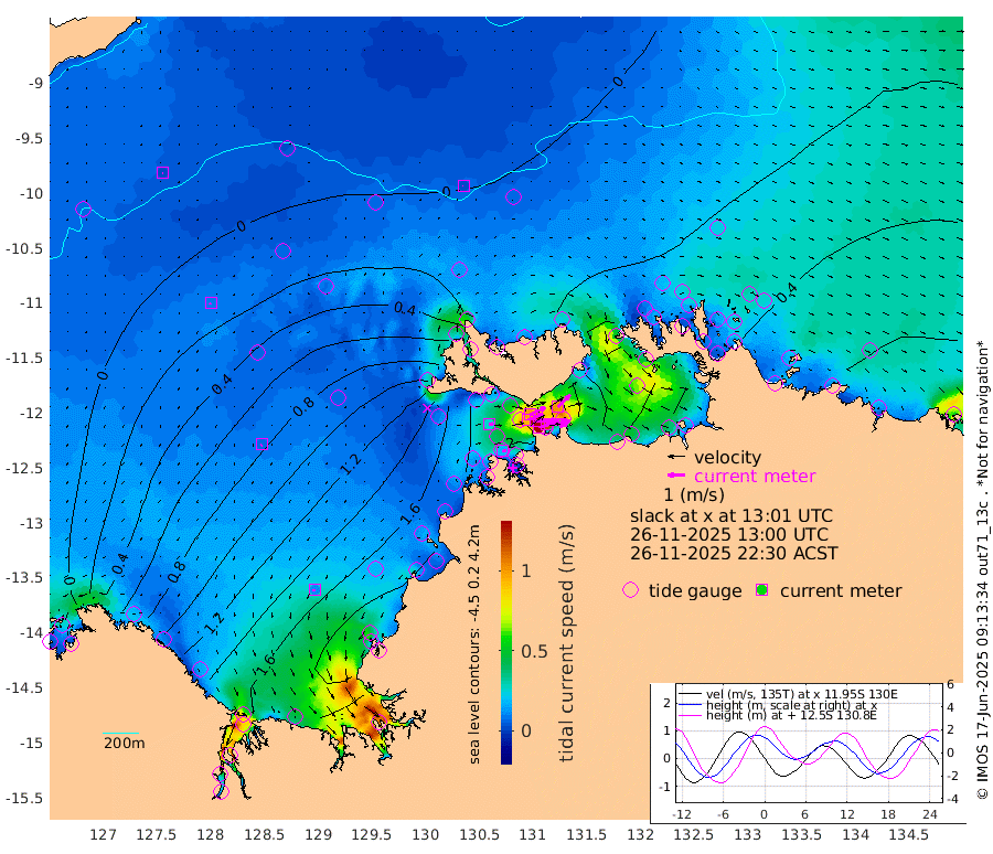 186cm/s 78T +4cm/s rms + 6cm/s 51T. Darwin_C1 52m 116cm/s 93T +4cm/s rms + 7cm/s -161T. Darwin_CW1 22m 93cm/s 72T +4cm/s rms + 8cm/s 61T. Darwin_CW2 34m 102cm/s 47T +3cm/s rms + 9cm/s 98T. Darwin_CW3 22m 136cm/s 90T +5cm/s rms + 7cm/s 88T. Darwin_C3 56m 99cm/s 66T +2cm/s rms + 9cm/s -126T. Darwin_CTbW 22m 3cm/s -10T +9cm/s rms + 2cm/s -110T. NWSLYN 196m 25cm/s 76T +1cm/s rms + 1cm/s -47T. DARBGF 30m 3cm/s -108T +7cm/s rms + 2cm/s -137T. ITFTIS 464m 10cm/s -152T +9cm/s rms + 1cm/s 74T. ITFMHB 146m 12cm/s -145T +4cm/s rms + 1cm/s -134T. ITFJBG 61m 8cm/s -133T +6cm/s rms + 4cm/s 121T. ITFFTB 108m 18cm/s 94T +4cm/s rms + 3cm/s 80T. NRSDAR 19m 7cm Carronade Island 10cm Guy Point 12cm Napier Broome Bay 72cm Lesueur Island 151cm Reveley Island 118cm Rocky Island 211cm Cape Domett 191cm Lacrosse Island 220cm Adolphus Island 168cm Pender Point 153cm Wyndham 48cm The Boxers 39cm Unnamed Shoal 2cm Loxton Shoal 216cm Pelican Island 36cm Calder Shoal 5cm Evans Shoal 245cm Quoin Island 225cm Port Keats 193cm Jones Point 193cm Catfish Island 164cm Cape Scott Offshore 138cm Cape Ford 178cm Anson Bay 13cm Goodrich Bank 156cm Peron Island North 163cm Point Jenny 162cm Native Point 164cm Fish Reef 178cm Tapa Bay 86cm Point Fawcett (Offshore) 192cm Burge Point 167cm Munkunuwa 144cm Beagle A 183cm Parsons Bank 187cm Fenton Patches 6cm Lynedoch Bank 183cm Hancox Shoal Area 203cm Nightcliff 200cm Darwin 180cm Charles Point Patches 146cm Glyde Point 122cm Chambers Bay 108cm Point Stuart 121cm Cape Hotham 124cm Christine Reef 118cm West Alligator Head 106cm East Field Island 103cm Two Hills Bay 117cm Newby Shoal 102cm Camp Point 175cm Medina Inlet South 75cm South Barlow Point 52cm St. Asaph Bay 14cm Cape Van Dieman 20cm Snake Bay 19cm Cache Point -17cm Echo Shoal 32cm Point Jahleel (Off) 67cm Cape Don 29cm Port Essington 34cm Smith Point - West 27cm NW Peacock Island 19cm North Of Jones Shoal 7cm Peacock Island 24cm Point David 31cm D'urville Point 16cm Money Shoal 25cm Copeland Island 39cm Cape Cockburn 29cm One Tree Point 30cm Hogmany Shoal 30cm New Year Island - West 33cm Grant Island 37cm Aurari Bay 49cm Cuthbert Point 41cm North Goulburn Island 48cm Paxie Shoal 55cm Entrance Island 52cm Yabooma Island