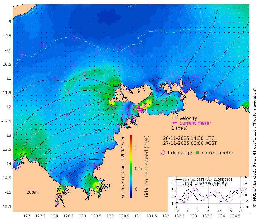 103cm/s 78T +4cm/s rms + 6cm/s 51T. Darwin_C1 52m 68cm/s 92T +4cm/s rms + 7cm/s -161T. Darwin_CW1 22m 56cm/s 70T +4cm/s rms + 8cm/s 61T. Darwin_CW2 34m 66cm/s 48T +3cm/s rms + 9cm/s 98T. Darwin_CW3 22m 85cm/s 90T +5cm/s rms + 7cm/s 88T. Darwin_C3 56m 60cm/s 66T +2cm/s rms + 9cm/s -126T. Darwin_CTbW 22m 4cm/s -10T +9cm/s rms + 2cm/s -110T. NWSLYN 196m 14cm/s -61T +1cm/s rms + 1cm/s -47T. DARBGF 30m 4cm/s -77T +7cm/s rms + 2cm/s -137T. ITFTIS 464m 6cm/s -68T +9cm/s rms + 1cm/s 74T. ITFMHB 146m 16cm/s -51T +4cm/s rms + 1cm/s -134T. ITFJBG 61m 20cm/s -59T +6cm/s rms + 4cm/s 121T. ITFFTB 108m 28cm/s -46T +4cm/s rms + 3cm/s 80T. NRSDAR 19m 66cm Carronade Island 69cm Guy Point 76cm Napier Broome Bay 100cm Lesueur Island 143cm Reveley Island 114cm Rocky Island 216cm Cape Domett 195cm Lacrosse Island 248cm Adolphus Island 254cm Pender Point 268cm Wyndham 32cm The Boxers 13cm Unnamed Shoal -2cm Loxton Shoal 205cm Pelican Island 11cm Calder Shoal -10cm Evans Shoal 300cm Quoin Island 179cm Port Keats 154cm Jones Point 318cm Catfish Island 110cm Cape Scott Offshore 36cm Cape Ford 113cm Anson Bay -12cm Goodrich Bank 89cm Peron Island North 91cm Point Jenny 89cm Native Point 93cm Fish Reef 101cm Tapa Bay 32cm Point Fawcett (Offshore) 115cm Burge Point 79cm Munkunuwa 76cm Beagle A 104cm Parsons Bank 113cm Fenton Patches -8cm Lynedoch Bank 116cm Hancox Shoal Area 128cm Nightcliff 129cm Darwin 110cm Charles Point Patches 124cm Glyde Point 153cm Chambers Bay 148cm Point Stuart 116cm Cape Hotham 144cm Christine Reef 166cm West Alligator Head 179cm East Field Island 117cm Two Hills Bay 71cm Newby Shoal 117cm Camp Point 98cm Medina Inlet South 17cm South Barlow Point 6cm St. Asaph Bay -15cm Cape Van Dieman -12cm Snake Bay -6cm Cache Point -4cm Echo Shoal 8cm Point Jahleel (Off) 48cm Cape Don 5cm Port Essington 6cm Smith Point - West 3cm NW Peacock Island -1cm North Of Jones Shoal -1cm Peacock Island 5cm Point David 3cm D'urville Point 2cm Money Shoal 7cm Copeland Island 16cm Cape Cockburn 12cm One Tree Point 14cm Hogmany Shoal 15cm New Year Island - West 15cm Grant Island 27cm Aurari Bay 45cm Cuthbert Point 28cm North Goulburn Island 55cm Paxie Shoal 63cm Entrance Island 76cm Yabooma Island