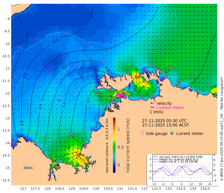 172cm/s -102T +4cm/s rms + 6cm/s 51T. Darwin_C1 52m 116cm/s -89T +4cm/s rms + 7cm/s -161T. Darwin_CW1 22m 83cm/s -108T +4cm/s rms + 8cm/s 61T. Darwin_CW2 34m 73cm/s -126T +3cm/s rms + 9cm/s 98T. Darwin_CW3 22m 110cm/s -91T +5cm/s rms + 7cm/s 88T. Darwin_C3 56m 95cm/s -116T +2cm/s rms + 9cm/s -126T. Darwin_CTbW 22m 8cm/s -50T +9cm/s rms + 2cm/s -110T. NWSLYN 196m 43cm/s -94T +1cm/s rms + 1cm/s -47T. DARBGF 30m 7cm/s -164T +7cm/s rms + 2cm/s -137T. ITFTIS 464m 3cm/s -39T +9cm/s rms + 1cm/s 74T. ITFMHB 146m 19cm/s -19T +4cm/s rms + 1cm/s -134T. ITFJBG 61m 14cm/s -51T +6cm/s rms + 4cm/s 121T. ITFFTB 108m 31cm/s -68T +4cm/s rms + 3cm/s 80T. NRSDAR 19m 3cm Carronade Island 2cm Guy Point -5cm Napier Broome Bay -50cm Lesueur Island -96cm Reveley Island -79cm Rocky Island -116cm Cape Domett -99cm Lacrosse Island -87cm Adolphus Island -29cm Pender Point 5cm Wyndham -90cm The Boxers -97cm Unnamed Shoal -54cm Loxton Shoal -124cm Pelican Island -82cm Calder Shoal -57cm Evans Shoal -66cm Quoin Island -171cm Port Keats -147cm Jones Point 23cm Catfish Island -147cm Cape Scott Offshore -226cm Cape Ford -165cm Anson Bay -74cm Goodrich Bank -157cm Peron Island North -171cm Point Jenny -174cm Native Point -167cm Fish Reef -180cm Tapa Bay -127cm Point Fawcett (Offshore) -188cm Burge Point -177cm Munkunuwa -157cm Beagle A -181cm Parsons Bank -176cm Fenton Patches -59cm Lynedoch Bank -166cm Hancox Shoal Area -174cm Nightcliff -188cm Darwin -188cm Charles Point Patches -111cm Glyde Point -35cm Chambers Bay -23cm Point Stuart -74cm Cape Hotham -50cm Christine Reef -15cm West Alligator Head 15cm East Field Island -50cm Two Hills Bay -145cm Newby Shoal -57cm Camp Point -180cm Medina Inlet South -127cm South Barlow Point -104cm St. Asaph Bay -79cm Cape Van Dieman -84cm Snake Bay -75cm Cache Point -19cm Echo Shoal -73cm Point Jahleel (Off) -84cm Cape Don -78cm Port Essington -79cm Smith Point - West -74cm NW Peacock Island -65cm North Of Jones Shoal -23cm Peacock Island -68cm Point David -79cm D'urville Point -66cm Money Shoal -64cm Copeland Island -85cm Cape Cockburn -69cm One Tree Point -81cm Hogmany Shoal -69cm New Year Island - West -74cm Grant Island -55cm Aurari Bay -64cm Cuthbert Point -67cm North Goulburn Island -55cm Paxie Shoal -44cm Entrance Island -16cm Yabooma Island