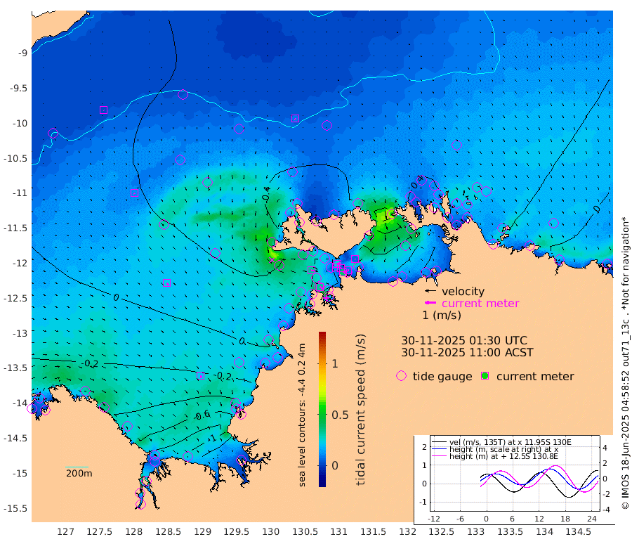 39cm/s 77T +4cm/s rms + 6cm/s 51T. Darwin_C1 52m 10cm/s 93T +4cm/s rms + 7cm/s -161T. Darwin_CW1 22m 12cm/s 75T +4cm/s rms + 8cm/s 61T. Darwin_CW2 34m 6cm/s 105T +3cm/s rms + 9cm/s 98T. Darwin_CW3 22m 5cm/s 71T +5cm/s rms + 7cm/s 88T. Darwin_C3 56m 25cm/s 63T +2cm/s rms + 9cm/s -126T. Darwin_CTbW 22m 10cm/s 154T +9cm/s rms + 2cm/s -110T. NWSLYN 196m 32cm/s 97T +1cm/s rms + 1cm/s -47T. DARBGF 30m 3cm/s 121T +7cm/s rms + 2cm/s -137T. ITFTIS 464m 11cm/s 167T +9cm/s rms + 1cm/s 74T. ITFMHB 146m 22cm/s 148T +4cm/s rms + 1cm/s -134T. ITFJBG 61m 23cm/s 137T +6cm/s rms + 4cm/s 121T. ITFFTB 108m 34cm/s 123T +4cm/s rms + 3cm/s 80T. NRSDAR 19m -50cm Carronade Island -48cm Guy Point -54cm Napier Broome Bay -60cm Lesueur Island -58cm Reveley Island -46cm Rocky Island -93cm Cape Domett -93cm Lacrosse Island -124cm Adolphus Island -156cm Pender Point -182cm Wyndham 9cm The Boxers 14cm Unnamed Shoal 13cm Loxton Shoal -72cm Pelican Island 16cm Calder Shoal 27cm Evans Shoal -168cm Quoin Island -43cm Port Keats -40cm Jones Point -172cm Catfish Island -5cm Cape Scott Offshore 52cm Cape Ford 2cm Anson Bay 33cm Goodrich Bank 11cm Peron Island North 19cm Point Jenny 19cm Native Point 10cm Fish Reef 14cm Tapa Bay 35cm Point Fawcett (Offshore) -1cm Burge Point 23cm Munkunuwa 11cm Beagle A 13cm Parsons Bank -6cm Fenton Patches 23cm Lynedoch Bank 2cm Hancox Shoal Area -8cm Nightcliff -7cm Darwin 7cm Charles Point Patches -33cm Glyde Point -67cm Chambers Bay -78cm Point Stuart -42cm Cape Hotham -60cm Christine Reef -92cm West Alligator Head -118cm East Field Island -47cm Two Hills Bay 1cm Newby Shoal -52cm Camp Point 11cm Medina Inlet South 38cm South Barlow Point 36cm St. Asaph Bay 38cm Cape Van Dieman 35cm Snake Bay 34cm Cache Point -1cm Echo Shoal 25cm Point Jahleel (Off) 12cm Cape Don 35cm Port Essington 37cm Smith Point - West 36cm NW Peacock Island 32cm North Of Jones Shoal 12cm Peacock Island 35cm Point David 40cm D'urville Point 31cm Money Shoal 34cm Copeland Island 39cm Cape Cockburn 31cm One Tree Point 42cm Hogmany Shoal 25cm New Year Island - West 31cm Grant Island 18cm Aurari Bay 21cm Cuthbert Point 29cm North Goulburn Island 8cm Paxie Shoal 4cm Entrance Island -11cm Yabooma Island