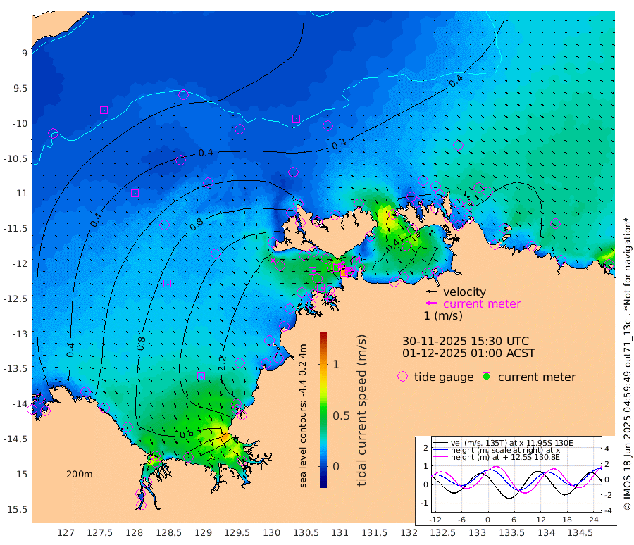 96cm/s 78T +4cm/s rms + 6cm/s 51T. Darwin_C1 52m 52cm/s 90T +4cm/s rms + 7cm/s -161T. Darwin_CW1 22m 58cm/s 73T +4cm/s rms + 8cm/s 61T. Darwin_CW2 34m 36cm/s 53T +3cm/s rms + 9cm/s 98T. Darwin_CW3 22m 76cm/s 89T +5cm/s rms + 7cm/s 88T. Darwin_C3 56m 62cm/s 64T +2cm/s rms + 9cm/s -126T. Darwin_CTbW 22m 1cm/s 19T +9cm/s rms + 2cm/s -110T. NWSLYN 196m 37cm/s 88T +1cm/s rms + 1cm/s -47T. DARBGF 30m 3cm/s 17T +7cm/s rms + 2cm/s -137T. ITFTIS 464m 4cm/s 162T +9cm/s rms + 1cm/s 74T. ITFMHB 146m 21cm/s 161T +4cm/s rms + 1cm/s -134T. ITFJBG 61m 15cm/s 138T +6cm/s rms + 4cm/s 121T. ITFFTB 108m 34cm/s 117T +4cm/s rms + 3cm/s 80T. NRSDAR 19m -10cm Carronade Island -19cm Guy Point -6cm Napier Broome Bay 35cm Lesueur Island 68cm Reveley Island 65cm Rocky Island 79cm Cape Domett 76cm Lacrosse Island 50cm Adolphus Island -1cm Pender Point -22cm Wyndham 55cm The Boxers 80cm Unnamed Shoal 15cm Loxton Shoal 83cm Pelican Island 51cm Calder Shoal 22cm Evans Shoal 30cm Quoin Island 120cm Port Keats 110cm Jones Point 1cm Catfish Island 107cm Cape Scott Offshore 136cm Cape Ford 122cm Anson Bay 38cm Goodrich Bank 118cm Peron Island North 127cm Point Jenny 129cm Native Point 130cm Fish Reef 132cm Tapa Bay 88cm Point Fawcett (Offshore) 143cm Burge Point 132cm Munkunuwa 124cm Beagle A 136cm Parsons Bank 140cm Fenton Patches 27cm Lynedoch Bank 121cm Hancox Shoal Area 138cm Nightcliff 136cm Darwin 126cm Charles Point Patches 86cm Glyde Point 40cm Chambers Bay 32cm Point Stuart 66cm Cape Hotham 43cm Christine Reef 29cm West Alligator Head 8cm East Field Island 48cm Two Hills Bay 107cm Newby Shoal 43cm Camp Point 131cm Medina Inlet South 84cm South Barlow Point 65cm St. Asaph Bay 43cm Cape Van Dieman 50cm Snake Bay 42cm Cache Point -5cm Echo Shoal 45cm Point Jahleel (Off) 56cm Cape Don 44cm Port Essington 48cm Smith Point - West 44cm NW Peacock Island 35cm North Of Jones Shoal 13cm Peacock Island 45cm Point David 49cm D'urville Point 33cm Money Shoal 42cm Copeland Island 59cm Cape Cockburn 43cm One Tree Point 46cm Hogmany Shoal 47cm New Year Island - West 48cm Grant Island 45cm Aurari Bay 45cm Cuthbert Point 49cm North Goulburn Island 35cm Paxie Shoal 44cm Entrance Island 26cm Yabooma Island