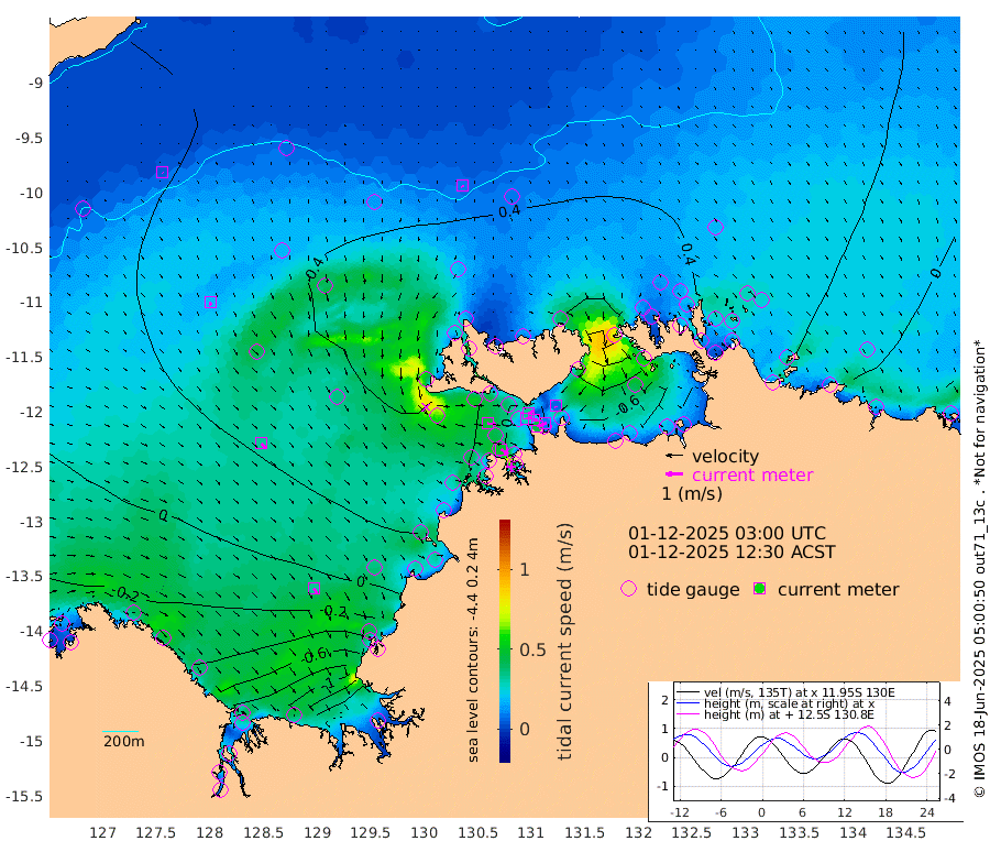 43cm/s 78T +4cm/s rms + 6cm/s 51T. Darwin_C1 52m 9cm/s 97T +4cm/s rms + 7cm/s -161T. Darwin_CW1 22m 28cm/s 74T +4cm/s rms + 8cm/s 61T. Darwin_CW2 34m 6cm/s 156T +3cm/s rms + 9cm/s 98T. Darwin_CW3 22m 22cm/s 84T +5cm/s rms + 7cm/s 88T. Darwin_C3 56m 34cm/s 64T +2cm/s rms + 9cm/s -126T. Darwin_CTbW 22m 9cm/s 156T +9cm/s rms + 2cm/s -110T. NWSLYN 196m 47cm/s 94T +1cm/s rms + 1cm/s -47T. DARBGF 30m 4cm/s 133T +7cm/s rms + 2cm/s -137T. ITFTIS 464m 18cm/s 169T +9cm/s rms + 1cm/s 74T. ITFMHB 146m 32cm/s 149T +4cm/s rms + 1cm/s -134T. ITFJBG 61m 33cm/s 138T +6cm/s rms + 4cm/s 121T. ITFFTB 108m 49cm/s 123T +4cm/s rms + 3cm/s 80T. NRSDAR 19m -51cm Carronade Island -49cm Guy Point -57cm Napier Broome Bay -55cm Lesueur Island -45cm Reveley Island -39cm Rocky Island -80cm Cape Domett -76cm Lacrosse Island -120cm Adolphus Island -170cm Pender Point -199cm Wyndham 19cm The Boxers 22cm Unnamed Shoal 13cm Loxton Shoal -55cm Pelican Island 29cm Calder Shoal 31cm Evans Shoal -170cm Quoin Island -20cm Port Keats -17cm Jones Point -163cm Catfish Island 25cm Cape Scott Offshore 84cm Cape Ford 35cm Anson Bay 38cm Goodrich Bank 40cm Peron Island North 55cm Point Jenny 53cm Native Point 44cm Fish Reef 48cm Tapa Bay 60cm Point Fawcett (Offshore) 33cm Burge Point 57cm Munkunuwa 45cm Beagle A 42cm Parsons Bank 30cm Fenton Patches 23cm Lynedoch Bank 30cm Hancox Shoal Area 28cm Nightcliff 21cm Darwin 34cm Charles Point Patches -17cm Glyde Point -57cm Chambers Bay -76cm Point Stuart -30cm Cape Hotham -51cm Christine Reef -90cm West Alligator Head -122cm East Field Island -41cm Two Hills Bay 24cm Newby Shoal -48cm Camp Point 42cm Medina Inlet South 56cm South Barlow Point 53cm St. Asaph Bay 44cm Cape Van Dieman 40cm Snake Bay 41cm Cache Point 0cm Echo Shoal 32cm Point Jahleel (Off) 19cm Cape Don 38cm Port Essington 43cm Smith Point - West 39cm NW Peacock Island 36cm North Of Jones Shoal 13cm Peacock Island 32cm Point David 44cm D'urville Point 30cm Money Shoal 32cm Copeland Island 38cm Cape Cockburn 30cm One Tree Point 37cm Hogmany Shoal 23cm New Year Island - West 29cm Grant Island 16cm Aurari Bay 17cm Cuthbert Point 27cm North Goulburn Island 2cm Paxie Shoal 2cm Entrance Island -14cm Yabooma Island
