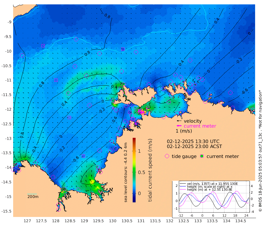 90cm/s -102T +4cm/s rms + 6cm/s 51T. Darwin_C1 52m 80cm/s -89T +4cm/s rms + 7cm/s -161T. Darwin_CW1 22m 52cm/s -107T +4cm/s rms + 8cm/s 61T. Darwin_CW2 34m 47cm/s -134T +3cm/s rms + 9cm/s 98T. Darwin_CW3 22m 85cm/s -91T +5cm/s rms + 7cm/s 88T. Darwin_C3 56m 47cm/s -115T +2cm/s rms + 9cm/s -126T. Darwin_CTbW 22m 5cm/s 149T +9cm/s rms + 2cm/s -110T. NWSLYN 196m 5cm/s -137T +1cm/s rms + 1cm/s -47T. DARBGF 30m 7cm/s 60T +7cm/s rms + 2cm/s -137T. ITFTIS 464m 8cm/s 81T +9cm/s rms + 1cm/s 74T. ITFMHB 146m 9cm/s 49T +4cm/s rms + 1cm/s -134T. ITFJBG 61m 14cm/s 89T +6cm/s rms + 4cm/s 121T. ITFFTB 108m 6cm/s -152T +4cm/s rms + 3cm/s 80T. NRSDAR 19m 95cm Carronade Island 91cm Guy Point 96cm Napier Broome Bay 38cm Lesueur Island -59cm Reveley Island -5cm Rocky Island -114cm Cape Domett -96cm Lacrosse Island -117cm Adolphus Island -92cm Pender Point -76cm Wyndham 60cm The Boxers 48cm Unnamed Shoal 101cm Loxton Shoal -137cm Pelican Island 70cm Calder Shoal 81cm Evans Shoal -158cm Quoin Island -119cm Port Keats -123cm Jones Point -106cm Catfish Island -71cm Cape Scott Offshore -50cm Cape Ford -89cm Anson Bay 69cm Goodrich Bank -59cm Peron Island North -69cm Point Jenny -66cm Native Point -69cm Fish Reef -86cm Tapa Bay 10cm Point Fawcett (Offshore) -97cm Burge Point -83cm Munkunuwa -38cm Beagle A -99cm Parsons Bank -87cm Fenton Patches 73cm Lynedoch Bank -103cm Hancox Shoal Area -108cm Nightcliff -107cm Darwin -83cm Charles Point Patches -81cm Glyde Point -79cm Chambers Bay -76cm Point Stuart -69cm Cape Hotham -72cm Christine Reef -86cm West Alligator Head -81cm East Field Island -53cm Two Hills Bay 21cm Newby Shoal -56cm Camp Point -78cm Medina Inlet South 21cm South Barlow Point 40cm St. Asaph Bay 66cm Cape Van Dieman 66cm Snake Bay 64cm Cache Point 112cm Echo Shoal 45cm Point Jahleel (Off) 0cm Cape Don 37cm Port Essington 37cm Smith Point - West 39cm NW Peacock Island 53cm North Of Jones Shoal 17cm Peacock Island 12cm Point David 34cm D'urville Point 38cm Money Shoal 7cm Copeland Island 14cm Cape Cockburn 18cm One Tree Point 13cm Hogmany Shoal 20cm New Year Island - West 14cm Grant Island -10cm Aurari Bay -27cm Cuthbert Point -6cm North Goulburn Island -45cm Paxie Shoal -59cm Entrance Island -91cm Yabooma Island