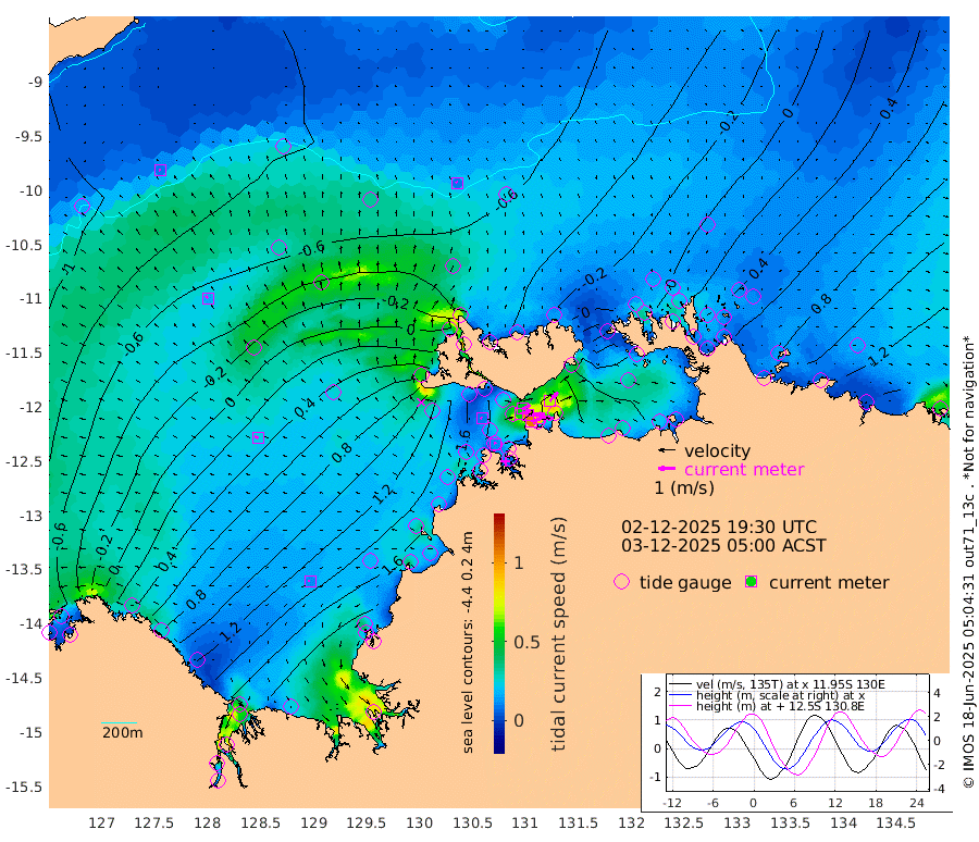 105cm/s 78T +4cm/s rms + 6cm/s 51T. Darwin_C1 52m 87cm/s 92T +4cm/s rms + 7cm/s -161T. Darwin_CW1 22m 59cm/s 72T +4cm/s rms + 8cm/s 61T. Darwin_CW2 34m 69cm/s 42T +3cm/s rms + 9cm/s 98T. Darwin_CW3 22m 100cm/s 90T +5cm/s rms + 7cm/s 88T. Darwin_C3 56m 50cm/s 65T +2cm/s rms + 9cm/s -126T. Darwin_CTbW 22m 9cm/s -20T +9cm/s rms + 2cm/s -110T. NWSLYN 196m 8cm/s -48T +1cm/s rms + 1cm/s -47T. DARBGF 30m 8cm/s -66T +7cm/s rms + 2cm/s -137T. ITFTIS 464m 17cm/s -31T +9cm/s rms + 1cm/s 74T. ITFMHB 146m 12cm/s -87T +4cm/s rms + 1cm/s -134T. ITFJBG 61m 24cm/s -61T +6cm/s rms + 4cm/s 121T. ITFFTB 108m 12cm/s -25T +4cm/s rms + 3cm/s 80T. NRSDAR 19m -76cm Carronade Island -83cm Guy Point -72cm Napier Broome Bay 11cm Lesueur Island 100cm Reveley Island 45cm Rocky Island 172cm Cape Domett 151cm Lacrosse Island 180cm Adolphus Island 153cm Pender Point 145cm Wyndham -32cm The Boxers 8cm Unnamed Shoal -92cm Loxton Shoal 185cm Pelican Island -54cm Calder Shoal -79cm Evans Shoal 227cm Quoin Island 174cm Port Keats 178cm Jones Point 163cm Catfish Island 99cm Cape Scott Offshore 79cm Cape Ford 120cm Anson Bay -54cm Goodrich Bank 93cm Peron Island North 94cm Point Jenny 95cm Native Point 105cm Fish Reef 118cm Tapa Bay 3cm Point Fawcett (Offshore) 141cm Burge Point 108cm Munkunuwa 72cm Beagle A 140cm Parsons Bank 133cm Fenton Patches -55cm Lynedoch Bank 140cm Hancox Shoal Area 146cm Nightcliff 160cm Darwin 126cm Charles Point Patches 132cm Glyde Point 119cm Chambers Bay 129cm Point Stuart 118cm Cape Hotham 110cm Christine Reef 140cm West Alligator Head 142cm East Field Island 99cm Two Hills Bay 26cm Newby Shoal 104cm Camp Point 114cm Medina Inlet South 0cm South Barlow Point -30cm St. Asaph Bay -51cm Cape Van Dieman -42cm Snake Bay -49cm Cache Point -110cm Echo Shoal -25cm Point Jahleel (Off) 28cm Cape Don -14cm Port Essington -17cm Smith Point - West -15cm NW Peacock Island -38cm North Of Jones Shoal -10cm Peacock Island 24cm Point David -9cm D'urville Point -12cm Money Shoal 27cm Copeland Island 31cm Cape Cockburn 14cm One Tree Point 29cm Hogmany Shoal 22cm New Year Island - West 26cm Grant Island 55cm Aurari Bay 72cm Cuthbert Point 47cm North Goulburn Island 89cm Paxie Shoal 108cm Entrance Island 137cm Yabooma Island
