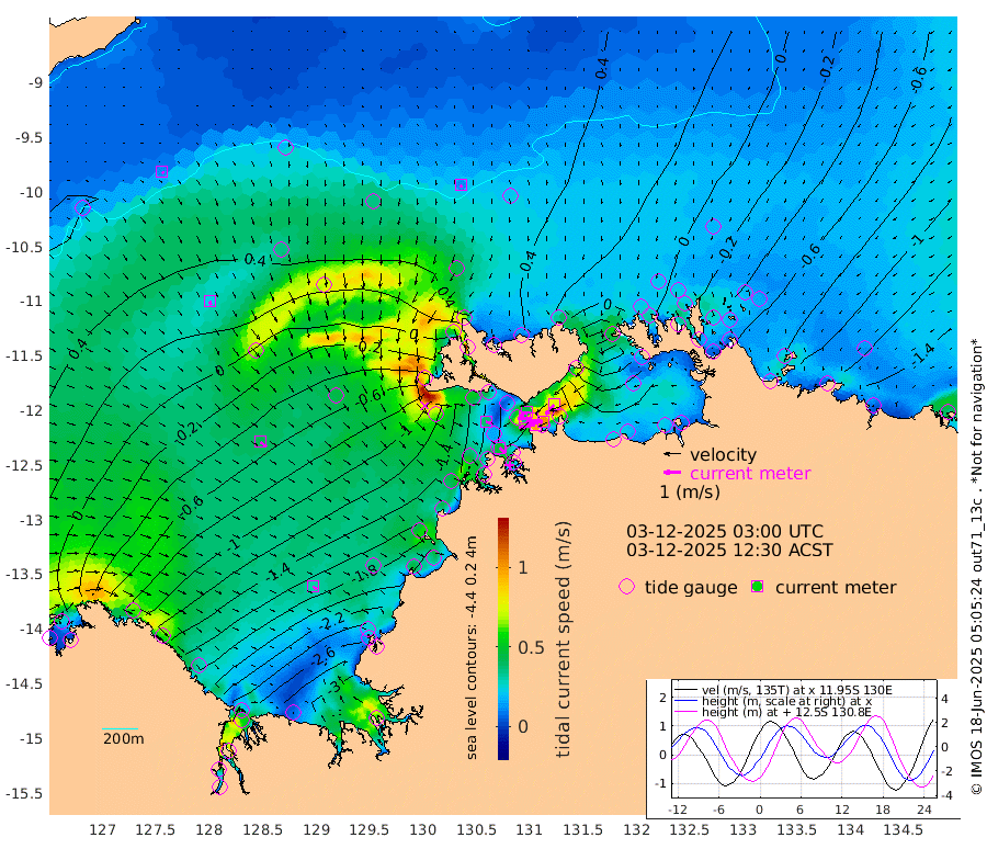 97cm/s -101T +4cm/s rms + 6cm/s 51T. Darwin_C1 52m 101cm/s -93T +4cm/s rms + 7cm/s -161T. Darwin_CW1 22m 36cm/s -105T +4cm/s rms + 8cm/s 61T. Darwin_CW2 34m 76cm/s -140T +3cm/s rms + 9cm/s 98T. Darwin_CW3 22m 86cm/s -89T +5cm/s rms + 7cm/s 88T. Darwin_C3 56m 44cm/s -116T +2cm/s rms + 9cm/s -126T. Darwin_CTbW 22m 12cm/s 171T +9cm/s rms + 2cm/s -110T. NWSLYN 196m 36cm/s 103T +1cm/s rms + 1cm/s -47T. DARBGF 30m 11cm/s 126T +7cm/s rms + 2cm/s -137T. ITFTIS 464m 24cm/s 159T +9cm/s rms + 1cm/s 74T. ITFMHB 146m 31cm/s 133T +4cm/s rms + 1cm/s -134T. ITFJBG 61m 43cm/s 131T +6cm/s rms + 4cm/s 121T. ITFFTB 108m 46cm/s 131T +4cm/s rms + 3cm/s 80T. NRSDAR 19m -28cm Carronade Island -28cm Guy Point -30cm Napier Broome Bay -116cm Lesueur Island -181cm Reveley Island -84cm Rocky Island -276cm Cape Domett -253cm Lacrosse Island -323cm Adolphus Island -317cm Pender Point -336cm Wyndham -7cm The Boxers -20cm Unnamed Shoal 48cm Loxton Shoal -273cm Pelican Island 22cm Calder Shoal 49cm Evans Shoal -393cm Quoin Island -232cm Port Keats -223cm Jones Point -341cm Catfish Island -126cm Cape Scott Offshore -95cm Cape Ford -135cm Anson Bay 34cm Goodrich Bank -110cm Peron Island North -103cm Point Jenny -102cm Native Point -115cm Fish Reef -129cm Tapa Bay -13cm Point Fawcett (Offshore) -156cm Burge Point -96cm Munkunuwa -88cm Beagle A -145cm Parsons Bank -154cm Fenton Patches 30cm Lynedoch Bank -161cm Hancox Shoal Area -165cm Nightcliff -183cm Darwin -151cm Charles Point Patches -178cm Glyde Point -197cm Chambers Bay -211cm Point Stuart -172cm Cape Hotham -186cm Christine Reef -232cm West Alligator Head -256cm East Field Island -161cm Two Hills Bay -66cm Newby Shoal -170cm Camp Point -122cm Medina Inlet South -3cm South Barlow Point 19cm St. Asaph Bay 37cm Cape Van Dieman 29cm Snake Bay 27cm Cache Point 53cm Echo Shoal 2cm Point Jahleel (Off) -55cm Cape Don -3cm Port Essington 0cm Smith Point - West -4cm NW Peacock Island 16cm North Of Jones Shoal 4cm Peacock Island -36cm Point David -5cm D'urville Point -9cm Money Shoal -40cm Copeland Island -52cm Cape Cockburn -31cm One Tree Point -57cm Hogmany Shoal -44cm New Year Island - West -45cm Grant Island -73cm Aurari Bay -96cm Cuthbert Point -64cm North Goulburn Island -115cm Paxie Shoal -135cm Entrance Island -170cm Yabooma Island