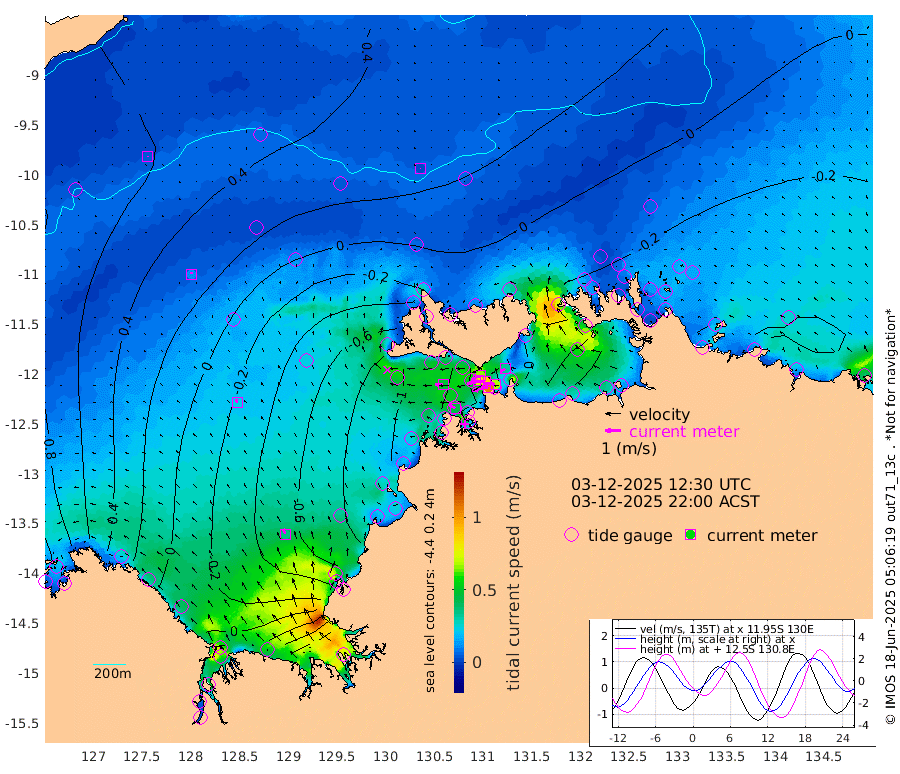 104cm/s -103T +4cm/s rms + 6cm/s 51T. Darwin_C1 52m 68cm/s -88T +4cm/s rms + 7cm/s -161T. Darwin_CW1 22m 76cm/s -109T +4cm/s rms + 8cm/s 61T. Darwin_CW2 34m 33cm/s -118T +3cm/s rms + 9cm/s 98T. Darwin_CW3 22m 86cm/s -93T +5cm/s rms + 7cm/s 88T. Darwin_C3 56m 65cm/s -115T +2cm/s rms + 9cm/s -126T. Darwin_CTbW 22m 2cm/s 89T +9cm/s rms + 2cm/s -110T. NWSLYN 196m 47cm/s -90T +1cm/s rms + 1cm/s -47T. DARBGF 30m 4cm/s 13T +7cm/s rms + 2cm/s -137T. ITFTIS 464m 12cm/s 13T +9cm/s rms + 1cm/s 74T. ITFMHB 146m 34cm/s -18T +4cm/s rms + 1cm/s -134T. ITFJBG 61m 24cm/s -28T +6cm/s rms + 4cm/s 121T. ITFFTB 108m 44cm/s -62T +4cm/s rms + 3cm/s 80T. NRSDAR 19m 143cm Carronade Island 149cm Guy Point 145cm Napier Broome Bay 87cm Lesueur Island 5cm Reveley Island 13cm Rocky Island -1cm Cape Domett 5cm Lacrosse Island 44cm Adolphus Island 112cm Pender Point 154cm Wyndham 29cm The Boxers -7cm Unnamed Shoal 70cm Loxton Shoal -35cm Pelican Island 27cm Calder Shoal 42cm Evans Shoal 56cm Quoin Island -67cm Port Keats -79cm Jones Point 106cm Catfish Island -72cm Cape Scott Offshore -111cm Cape Ford -98cm Anson Bay 20cm Goodrich Bank -83cm Peron Island North -97cm Point Jenny -97cm Native Point -99cm Fish Reef -106cm Tapa Bay -44cm Point Fawcett (Offshore) -110cm Burge Point -122cm Munkunuwa -76cm Beagle A -116cm Parsons Bank -100cm Fenton Patches 34cm Lynedoch Bank -98cm Hancox Shoal Area -108cm Nightcliff -106cm Darwin -93cm Charles Point Patches -44cm Glyde Point 14cm Chambers Bay 23cm Point Stuart -21cm Cape Hotham 15cm Christine Reef 30cm West Alligator Head 64cm East Field Island 6cm Two Hills Bay -13cm Newby Shoal 10cm Camp Point -103cm Medina Inlet South -40cm South Barlow Point -16cm St. Asaph Bay 11cm Cape Van Dieman 9cm Snake Bay 17cm Cache Point 94cm Echo Shoal 9cm Point Jahleel (Off) -10cm Cape Don 0cm Port Essington -2cm Smith Point - West 2cm NW Peacock Island 16cm North Of Jones Shoal 3cm Peacock Island -13cm Point David -6cm D'urville Point 11cm Money Shoal -14cm Copeland Island -14cm Cape Cockburn -6cm One Tree Point -4cm Hogmany Shoal -1cm New Year Island - West -8cm Grant Island -17cm Aurari Bay -18cm Cuthbert Point -16cm North Goulburn Island -17cm Paxie Shoal -25cm Entrance Island -26cm Yabooma Island