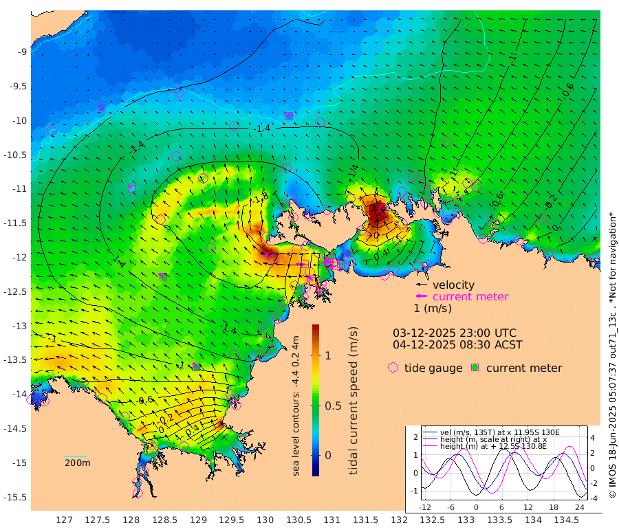 74cm/s -103T +4cm/s rms + 6cm/s 51T. Darwin_C1 52m 32cm/s -87T +4cm/s rms + 7cm/s -161T. Darwin_CW1 22m 60cm/s -105T +4cm/s rms + 8cm/s 61T. Darwin_CW2 34m 7cm/s -74T +3cm/s rms + 9cm/s 98T. Darwin_CW3 22m 65cm/s -93T +5cm/s rms + 7cm/s 88T. Darwin_C3 56m 55cm/s -116T +2cm/s rms + 9cm/s -126T. Darwin_CTbW 22m 12cm/s -41T +9cm/s rms + 2cm/s -110T. NWSLYN 196m 84cm/s -89T +1cm/s rms + 1cm/s -47T. DARBGF 30m 10cm/s -117T +7cm/s rms + 2cm/s -137T. ITFTIS 464m 25cm/s -30T +9cm/s rms + 1cm/s 74T. ITFMHB 146m 47cm/s -31T +4cm/s rms + 1cm/s -134T. ITFJBG 61m 54cm/s -53T +6cm/s rms + 4cm/s 121T. ITFFTB 108m 86cm/s -57T +4cm/s rms + 3cm/s 80T. NRSDAR 19m -44cm Carronade Island -42cm Guy Point -43cm Napier Broome Bay -65cm Lesueur Island -42cm Reveley Island -33cm Rocky Island 1cm Cape Domett -17cm Lacrosse Island 64cm Adolphus Island 149cm Pender Point 180cm Wyndham -145cm The Boxers -142cm Unnamed Shoal -122cm Loxton Shoal -13cm Pelican Island -157cm Calder Shoal -128cm Evans Shoal 133cm Quoin Island -81cm Port Keats -70cm Jones Point 121cm Catfish Island -141cm Cape Scott Offshore -260cm Cape Ford -153cm Anson Bay -137cm Goodrich Bank -165cm Peron Island North -181cm Point Jenny -181cm Native Point -178cm Fish Reef -172cm Tapa Bay -193cm Point Fawcett (Offshore) -163cm Burge Point -169cm Munkunuwa -190cm Beagle A -145cm Parsons Bank -164cm Fenton Patches -113cm Lynedoch Bank -127cm Hancox Shoal Area -146cm Nightcliff -140cm Darwin -165cm Charles Point Patches -59cm Glyde Point 30cm Chambers Bay 59cm Point Stuart -27cm Cape Hotham 19cm Christine Reef 78cm West Alligator Head 121cm East Field Island 0cm Two Hills Bay -185cm Newby Shoal 2cm Camp Point -169cm Medina Inlet South -178cm South Barlow Point -173cm St. Asaph Bay -145cm Cape Van Dieman -143cm Snake Bay -143cm Cache Point -107cm Echo Shoal -122cm Point Jahleel (Off) -93cm Cape Don -116cm Port Essington -123cm Smith Point - West -112cm NW Peacock Island -120cm North Of Jones Shoal -41cm Peacock Island -76cm Point David -115cm D'urville Point -95cm Money Shoal -69cm Copeland Island -99cm Cape Cockburn -84cm One Tree Point -85cm Hogmany Shoal -80cm New Year Island - West -77cm Grant Island -46cm Aurari Bay -31cm Cuthbert Point -59cm North Goulburn Island -4cm Paxie Shoal 9cm Entrance Island 56cm Yabooma Island