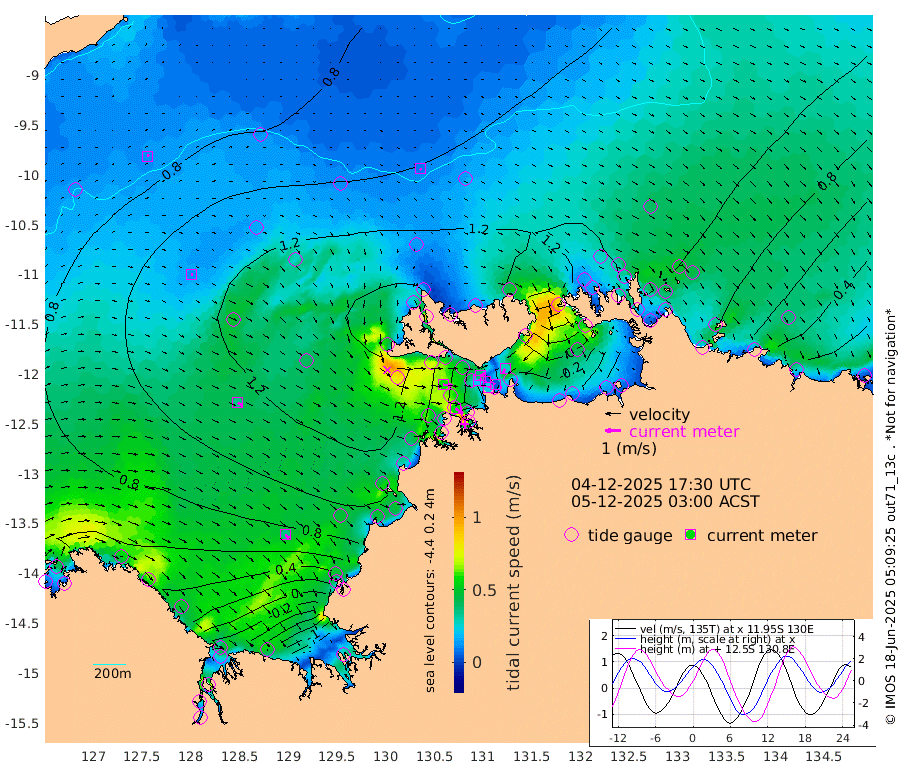 25cm/s 79T +4cm/s rms + 6cm/s 51T. Darwin_C1 52m 6cm/s -53T +4cm/s rms + 7cm/s -161T. Darwin_CW1 22m 21cm/s 76T +4cm/s rms + 8cm/s 61T. Darwin_CW2 34m 29cm/s -146T +3cm/s rms + 9cm/s 98T. Darwin_CW3 22m 4cm/s 67T +5cm/s rms + 7cm/s 88T. Darwin_C3 56m 38cm/s 61T +2cm/s rms + 9cm/s -126T. Darwin_CTbW 22m 9cm/s 137T +9cm/s rms + 2cm/s -110T. NWSLYN 196m 57cm/s 94T +1cm/s rms + 1cm/s -47T. DARBGF 30m 12cm/s 35T +7cm/s rms + 2cm/s -137T. ITFTIS 464m 11cm/s 87T +9cm/s rms + 1cm/s 74T. ITFMHB 146m 36cm/s 139T +4cm/s rms + 1cm/s -134T. ITFJBG 61m 36cm/s 118T +6cm/s rms + 4cm/s 121T. ITFFTB 108m 58cm/s 126T +4cm/s rms + 3cm/s 80T. NRSDAR 19m -5cm Carronade Island -17cm Guy Point -1cm Napier Broome Bay 18cm Lesueur Island -20cm Reveley Island -5cm Rocky Island -61cm Cape Domett -47cm Lacrosse Island -113cm Adolphus Island -174cm Pender Point -196cm Wyndham 96cm The Boxers 128cm Unnamed Shoal 75cm Loxton Shoal -49cm Pelican Island 97cm Calder Shoal 81cm Evans Shoal -172cm Quoin Island 13cm Port Keats 17cm Jones Point -157cm Catfish Island 64cm Cape Scott Offshore 153cm Cape Ford 78cm Anson Bay 100cm Goodrich Bank 90cm Peron Island North 97cm Point Jenny 100cm Native Point 101cm Fish Reef 91cm Tapa Bay 118cm Point Fawcett (Offshore) 86cm Burge Point 91cm Munkunuwa 110cm Beagle A 82cm Parsons Bank 88cm Fenton Patches 86cm Lynedoch Bank 61cm Hancox Shoal Area 67cm Nightcliff 76cm Darwin 94cm Charles Point Patches 23cm Glyde Point -54cm Chambers Bay -63cm Point Stuart 1cm Cape Hotham -47cm Christine Reef -84cm West Alligator Head -115cm East Field Island -16cm Two Hills Bay 116cm Newby Shoal -15cm Camp Point 95cm Medina Inlet South 121cm South Barlow Point 112cm St. Asaph Bay 107cm Cape Van Dieman 112cm Snake Bay 102cm Cache Point 57cm Echo Shoal 87cm Point Jahleel (Off) 65cm Cape Don 94cm Port Essington 94cm Smith Point - West 93cm NW Peacock Island 91cm North Of Jones Shoal 33cm Peacock Island 84cm Point David 97cm D'urville Point 88cm Money Shoal 78cm Copeland Island 103cm Cape Cockburn 84cm One Tree Point 91cm Hogmany Shoal 86cm New Year Island - West 83cm Grant Island 67cm Aurari Bay 54cm Cuthbert Point 71cm North Goulburn Island 33cm Paxie Shoal 24cm Entrance Island -10cm Yabooma Island