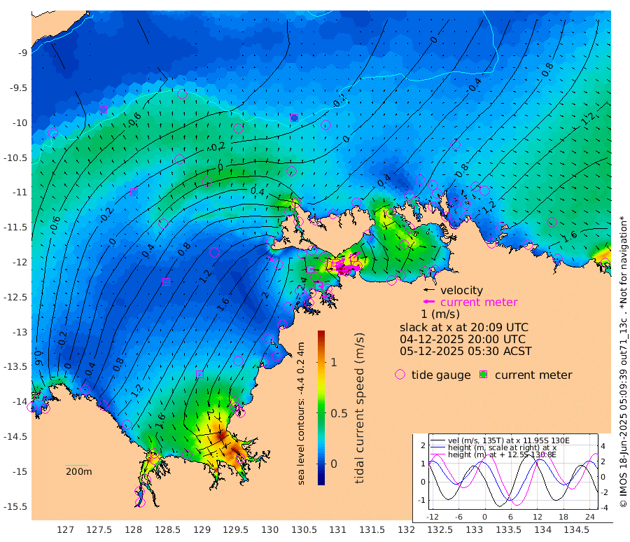 165cm/s 77T +4cm/s rms + 6cm/s 51T. Darwin_C1 52m 125cm/s 89T +4cm/s rms + 7cm/s -161T. Darwin_CW1 22m 81cm/s 74T +4cm/s rms + 8cm/s 61T. Darwin_CW2 34m 87cm/s 44T +3cm/s rms + 9cm/s 98T. Darwin_CW3 22m 123cm/s 89T +5cm/s rms + 7cm/s 88T. Darwin_C3 56m 87cm/s 64T +2cm/s rms + 9cm/s -126T. Darwin_CTbW 22m 5cm/s 1T +9cm/s rms + 2cm/s -110T. NWSLYN 196m 27cm/s 82T +1cm/s rms + 1cm/s -47T. DARBGF 30m 8cm/s -46T +7cm/s rms + 2cm/s -137T. ITFTIS 464m 12cm/s -28T +9cm/s rms + 1cm/s 74T. ITFMHB 146m 18cm/s -170T +4cm/s rms + 1cm/s -134T. ITFJBG 61m 7cm/s -93T +6cm/s rms + 4cm/s 121T. ITFFTB 108m 27cm/s 105T +4cm/s rms + 3cm/s 80T. NRSDAR 19m -113cm Carronade Island -124cm Guy Point -114cm Napier Broome Bay 3cm Lesueur Island 99cm Reveley Island 33cm Rocky Island 156cm Cape Domett 137cm Lacrosse Island 139cm Adolphus Island 60cm Pender Point 32cm Wyndham 4cm The Boxers 59cm Unnamed Shoal -71cm Loxton Shoal 188cm Pelican Island -17cm Calder Shoal -45cm Evans Shoal 159cm Quoin Island 205cm Port Keats 213cm Jones Point 91cm Catfish Island 149cm Cape Scott Offshore 194cm Cape Ford 180cm Anson Bay -8cm Goodrich Bank 161cm Peron Island North 162cm Point Jenny 163cm Native Point 177cm Fish Reef 188cm Tapa Bay 71cm Point Fawcett (Offshore) 207cm Burge Point 178cm Munkunuwa 140cm Beagle A 211cm Parsons Bank 198cm Fenton Patches -20cm Lynedoch Bank 199cm Hancox Shoal Area 202cm Nightcliff 226cm Darwin 200cm Charles Point Patches 160cm Glyde Point 100cm Chambers Bay 106cm Point Stuart 133cm Cape Hotham 94cm Christine Reef 107cm West Alligator Head 88cm East Field Island 101cm Two Hills Bay 79cm Newby Shoal 102cm Camp Point 184cm Medina Inlet South 66cm South Barlow Point 28cm St. Asaph Bay -1cm Cape Van Dieman 10cm Snake Bay 0cm Cache Point -103cm Echo Shoal 19cm Point Jahleel (Off) 68cm Cape Don 39cm Port Essington 37cm Smith Point - West 38cm NW Peacock Island 9cm North Of Jones Shoal 7cm Peacock Island 77cm Point David 48cm D'urville Point 35cm Money Shoal 79cm Copeland Island 98cm Cape Cockburn 66cm One Tree Point 92cm Hogmany Shoal 72cm New Year Island - West 79cm Grant Island 102cm Aurari Bay 118cm Cuthbert Point 97cm North Goulburn Island 121cm Paxie Shoal 139cm Entrance Island 155cm Yabooma Island