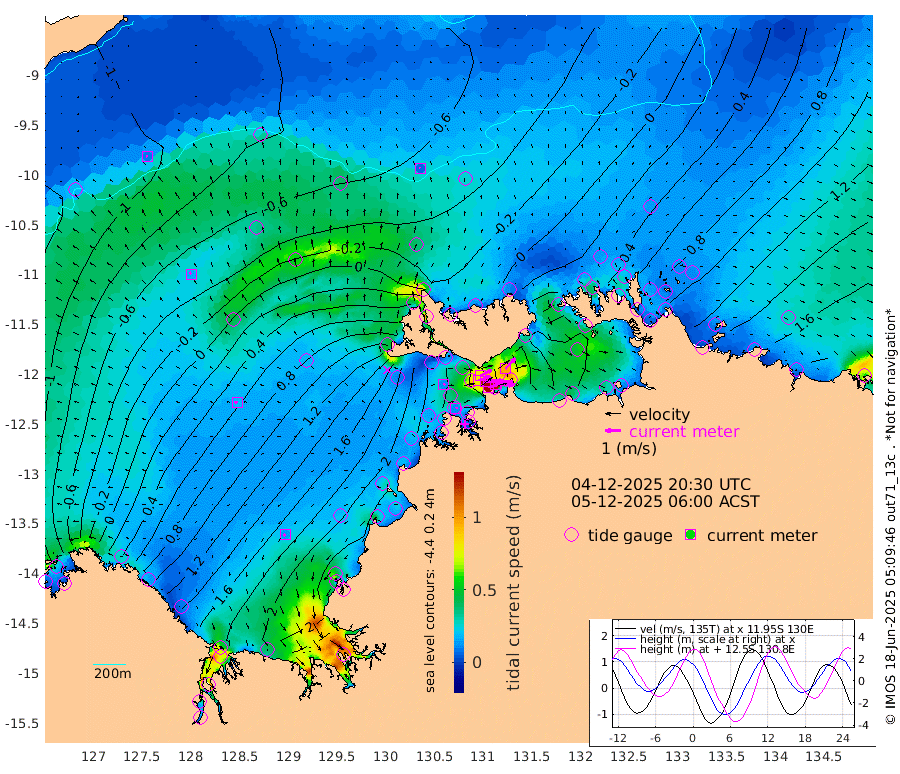 163cm/s 78T +4cm/s rms + 6cm/s 51T. Darwin_C1 52m 127cm/s 91T +4cm/s rms + 7cm/s -161T. Darwin_CW1 22m 79cm/s 73T +4cm/s rms + 8cm/s 61T. Darwin_CW2 34m 95cm/s 43T +3cm/s rms + 9cm/s 98T. Darwin_CW3 22m 127cm/s 89T +5cm/s rms + 7cm/s 88T. Darwin_C3 56m 80cm/s 65T +2cm/s rms + 9cm/s -126T. Darwin_CTbW 22m 8cm/s -12T +9cm/s rms + 2cm/s -110T. NWSLYN 196m 12cm/s 65T +1cm/s rms + 1cm/s -47T. DARBGF 30m 9cm/s -63T +7cm/s rms + 2cm/s -137T. ITFTIS 464m 16cm/s -33T +9cm/s rms + 1cm/s 74T. ITFMHB 146m 14cm/s -135T +4cm/s rms + 1cm/s -134T. ITFJBG 61m 19cm/s -70T +6cm/s rms + 4cm/s 121T. ITFFTB 108m 11cm/s 74T +4cm/s rms + 3cm/s 80T. NRSDAR 19m -119cm Carronade Island -128cm Guy Point -120cm Napier Broome Bay -2cm Lesueur Island 107cm Reveley Island 34cm Rocky Island 179cm Cape Domett 155cm Lacrosse Island 178cm Adolphus Island 114cm Pender Point 92cm Wyndham -24cm The Boxers 30cm Unnamed Shoal -98cm Loxton Shoal 210cm Pelican Island -48cm Calder Shoal -73cm Evans Shoal 216cm Quoin Island 210cm Port Keats 219cm Jones Point 142cm Catfish Island 134cm Cape Scott Offshore 156cm Cape Ford 164cm Anson Bay -38cm Goodrich Bank 141cm Peron Island North 139cm Point Jenny 139cm Native Point 155cm Fish Reef 168cm Tapa Bay 37cm Point Fawcett (Offshore) 190cm Burge Point 157cm Munkunuwa 112cm Beagle A 196cm Parsons Bank 180cm Fenton Patches -45cm Lynedoch Bank 190cm Hancox Shoal Area 190cm Nightcliff 215cm Darwin 181cm Charles Point Patches 163cm Glyde Point 122cm Chambers Bay 133cm Point Stuart 141cm Cape Hotham 113cm Christine Reef 140cm West Alligator Head 129cm East Field Island 113cm Two Hills Bay 48cm Newby Shoal 114cm Camp Point 163cm Medina Inlet South 33cm South Barlow Point -5cm St. Asaph Bay -32cm Cape Van Dieman -21cm Snake Bay -29cm Cache Point -127cm Echo Shoal -4cm Point Jahleel (Off) 55cm Cape Don 16cm Port Essington 13cm Smith Point - West 16cm NW Peacock Island -16cm North Of Jones Shoal -1cm Peacock Island 62cm Point David 26cm D'urville Point 16cm Money Shoal 66cm Copeland Island 80cm Cape Cockburn 50cm One Tree Point 78cm Hogmany Shoal 57cm New Year Island - West 65cm Grant Island 95cm Aurari Bay 117cm Cuthbert Point 88cm North Goulburn Island 126cm Paxie Shoal 148cm Entrance Island 176cm Yabooma Island