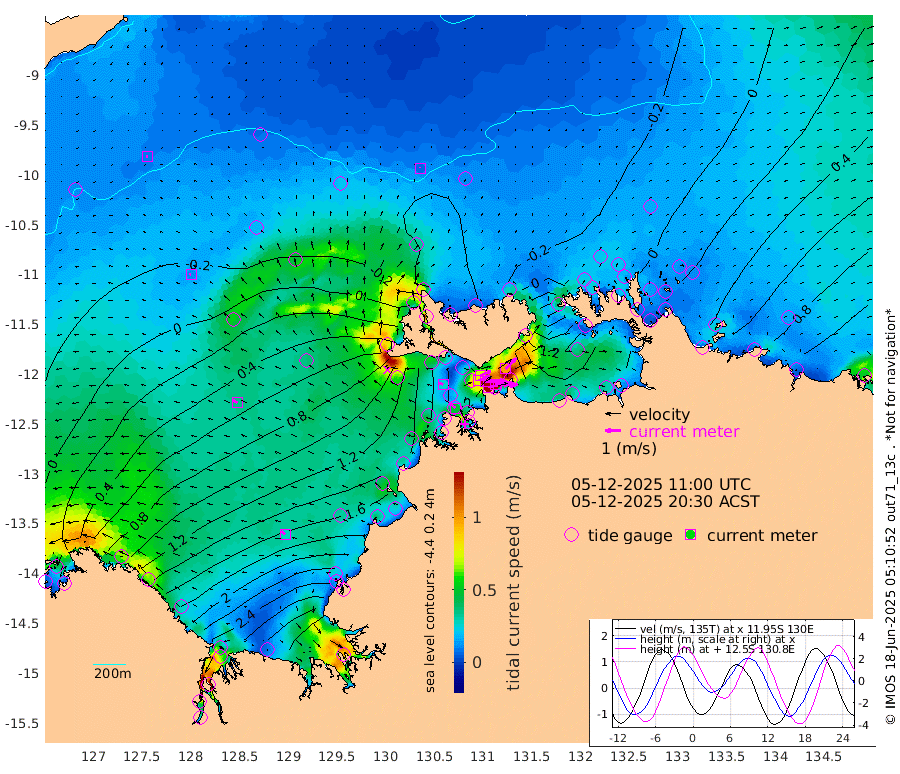 148cm/s 79T +4cm/s rms + 6cm/s 51T. Darwin_C1 52m 142cm/s 91T +4cm/s rms + 7cm/s -161T. Darwin_CW1 22m 77cm/s 71T +4cm/s rms + 8cm/s 61T. Darwin_CW2 34m 98cm/s 46T +3cm/s rms + 9cm/s 98T. Darwin_CW3 22m 137cm/s 90T +5cm/s rms + 7cm/s 88T. Darwin_C3 56m 72cm/s 66T +2cm/s rms + 9cm/s -126T. Darwin_CTbW 22m 8cm/s 0T +9cm/s rms + 2cm/s -110T. NWSLYN 196m 26cm/s -65T +1cm/s rms + 1cm/s -47T. DARBGF 30m 8cm/s -83T +7cm/s rms + 2cm/s -137T. ITFTIS 464m 11cm/s -65T +9cm/s rms + 1cm/s 74T. ITFMHB 146m 27cm/s -53T +4cm/s rms + 1cm/s -134T. ITFJBG 61m 35cm/s -58T +6cm/s rms + 4cm/s 121T. ITFFTB 108m 46cm/s -48T +4cm/s rms + 3cm/s 80T. NRSDAR 19m 68cm Carronade Island 80cm Guy Point 69cm Napier Broome Bay 137cm Lesueur Island 223cm Reveley Island 114cm Rocky Island 324cm Cape Domett 296cm Lacrosse Island 368cm Adolphus Island 367cm Pender Point 378cm Wyndham 26cm The Boxers 1cm Unnamed Shoal -20cm Loxton Shoal 317cm Pelican Island 6cm Calder Shoal -22cm Evans Shoal 442cm Quoin Island 273cm Port Keats 249cm Jones Point 388cm Catfish Island 166cm Cape Scott Offshore 144cm Cape Ford 170cm Anson Bay -23cm Goodrich Bank 145cm Peron Island North 142cm Point Jenny 138cm Native Point 147cm Fish Reef 164cm Tapa Bay 47cm Point Fawcett (Offshore) 188cm Burge Point 135cm Munkunuwa 115cm Beagle A 172cm Parsons Bank 179cm Fenton Patches -23cm Lynedoch Bank 190cm Hancox Shoal Area 198cm Nightcliff 207cm Darwin 179cm Charles Point Patches 190cm Glyde Point 217cm Chambers Bay 219cm Point Stuart 182cm Cape Hotham 208cm Christine Reef 243cm West Alligator Head 260cm East Field Island 171cm Two Hills Bay 89cm Newby Shoal 174cm Camp Point 156cm Medina Inlet South 23cm South Barlow Point 7cm St. Asaph Bay -27cm Cape Van Dieman -24cm Snake Bay -13cm Cache Point -24cm Echo Shoal 9cm Point Jahleel (Off) 66cm Cape Don 6cm Port Essington 5cm Smith Point - West 2cm NW Peacock Island -7cm North Of Jones Shoal -3cm Peacock Island 15cm Point David 2cm D'urville Point 2cm Money Shoal 19cm Copeland Island 32cm Cape Cockburn 19cm One Tree Point 39cm Hogmany Shoal 22cm New Year Island - West 26cm Grant Island 40cm Aurari Bay 69cm Cuthbert Point 44cm North Goulburn Island 89cm Paxie Shoal 103cm Entrance Island 131cm Yabooma Island