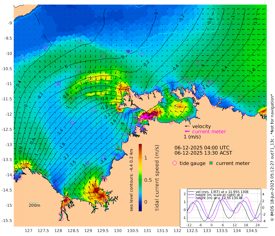 252cm/s -101T +4cm/s rms + 6cm/s 51T. Darwin_C1 52m 212cm/s -91T +4cm/s rms + 7cm/s -161T. Darwin_CW1 22m 115cm/s -106T +4cm/s rms + 8cm/s 61T. Darwin_CW2 34m 132cm/s -136T +3cm/s rms + 9cm/s 98T. Darwin_CW3 22m 194cm/s -90T +5cm/s rms + 7cm/s 88T. Darwin_C3 56m 140cm/s -115T +2cm/s rms + 9cm/s -126T. Darwin_CTbW 22m 7cm/s -142T +9cm/s rms + 2cm/s -110T. NWSLYN 196m 19cm/s -121T +1cm/s rms + 1cm/s -47T. DARBGF 30m 14cm/s 141T +7cm/s rms + 2cm/s -137T. ITFTIS 464m 16cm/s 153T +9cm/s rms + 1cm/s 74T. ITFMHB 146m 13cm/s 79T +4cm/s rms + 1cm/s -134T. ITFJBG 61m 24cm/s 123T +6cm/s rms + 4cm/s 121T. ITFFTB 108m 11cm/s -145T +4cm/s rms + 3cm/s 80T. NRSDAR 19m -5cm Carronade Island -5cm Guy Point -8cm Napier Broome Bay -146cm Lesueur Island -262cm Reveley Island -121cm Rocky Island -378cm Cape Domett -344cm Lacrosse Island -391cm Adolphus Island -325cm Pender Point -313cm Wyndham -73cm The Boxers -94cm Unnamed Shoal 21cm Loxton Shoal -395cm Pelican Island -40cm Calder Shoal 6cm Evans Shoal -455cm Quoin Island -387cm Port Keats -369cm Jones Point -379cm Catfish Island -271cm Cape Scott Offshore -312cm Cape Ford -300cm Anson Bay -21cm Goodrich Bank -271cm Peron Island North -266cm Point Jenny -264cm Native Point -283cm Fish Reef -301cm Tapa Bay -138cm Point Fawcett (Offshore) -333cm Burge Point -265cm Munkunuwa -231cm Beagle A -321cm Parsons Bank -315cm Fenton Patches -10cm Lynedoch Bank -322cm Hancox Shoal Area -330cm Nightcliff -363cm Darwin -330cm Charles Point Patches -288cm Glyde Point -248cm Chambers Bay -252cm Point Stuart -256cm Cape Hotham -237cm Christine Reef -267cm West Alligator Head -260cm East Field Island -223cm Two Hills Bay -180cm Newby Shoal -226cm Camp Point -294cm Medina Inlet South -114cm South Barlow Point -73cm St. Asaph Bay -25cm Cape Van Dieman -37cm Snake Bay -37cm Cache Point 53cm Echo Shoal -62cm Point Jahleel (Off) -139cm Cape Don -78cm Port Essington -75cm Smith Point - West -74cm NW Peacock Island -47cm North Of Jones Shoal -19cm Peacock Island -108cm Point David -81cm D'urville Point -73cm Money Shoal -110cm Copeland Island -149cm Cape Cockburn -106cm One Tree Point -148cm Hogmany Shoal -112cm New Year Island - West -120cm Grant Island -139cm Aurari Bay -174cm Cuthbert Point -144cm North Goulburn Island -189cm Paxie Shoal -204cm Entrance Island -229cm Yabooma Island