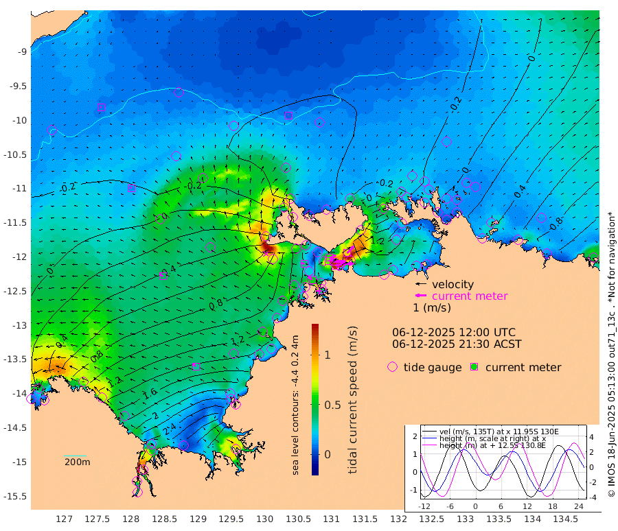 122cm/s 79T +4cm/s rms + 6cm/s 51T. Darwin_C1 52m 122cm/s 90T +4cm/s rms + 7cm/s -161T. Darwin_CW1 22m 63cm/s 71T +4cm/s rms + 8cm/s 61T. Darwin_CW2 34m 88cm/s 45T +3cm/s rms + 9cm/s 98T. Darwin_CW3 22m 118cm/s 91T +5cm/s rms + 7cm/s 88T. Darwin_C3 56m 60cm/s 66T +2cm/s rms + 9cm/s -126T. Darwin_CTbW 22m 7cm/s 0T +9cm/s rms + 2cm/s -110T. NWSLYN 196m 35cm/s -72T +1cm/s rms + 1cm/s -47T. DARBGF 30m 8cm/s -80T +7cm/s rms + 2cm/s -137T. ITFTIS 464m 12cm/s -56T +9cm/s rms + 1cm/s 74T. ITFMHB 146m 33cm/s -46T +4cm/s rms + 1cm/s -134T. ITFJBG 61m 39cm/s -56T +6cm/s rms + 4cm/s 121T. ITFFTB 108m 55cm/s -49T +4cm/s rms + 3cm/s 80T. NRSDAR 19m 91cm Carronade Island 102cm Guy Point 95cm Napier Broome Bay 143cm Lesueur Island 217cm Reveley Island 121cm Rocky Island 316cm Cape Domett 288cm Lacrosse Island 363cm Adolphus Island 386cm Pender Point 403cm Wyndham 24cm The Boxers -3cm Unnamed Shoal -14cm Loxton Shoal 300cm Pelican Island 3cm Calder Shoal -21cm Evans Shoal 439cm Quoin Island 250cm Port Keats 226cm Jones Point 400cm Catfish Island 142cm Cape Scott Offshore 108cm Cape Ford 142cm Anson Bay -27cm Goodrich Bank 119cm Peron Island North 114cm Point Jenny 111cm Native Point 118cm Fish Reef 134cm Tapa Bay 30cm Point Fawcett (Offshore) 159cm Burge Point 106cm Munkunuwa 90cm Beagle A 143cm Parsons Bank 148cm Fenton Patches -24cm Lynedoch Bank 161cm Hancox Shoal Area 167cm Nightcliff 177cm Darwin 148cm Charles Point Patches 175cm Glyde Point 216cm Chambers Bay 221cm Point Stuart 172cm Cape Hotham 206cm Christine Reef 248cm West Alligator Head 271cm East Field Island 169cm Two Hills Bay 76cm Newby Shoal 170cm Camp Point 127cm Medina Inlet South 7cm South Barlow Point -5cm St. Asaph Bay -32cm Cape Van Dieman -30cm Snake Bay -18cm Cache Point -16cm Echo Shoal 3cm Point Jahleel (Off) 58cm Cape Don -2cm Port Essington -3cm Smith Point - West -5cm NW Peacock Island -13cm North Of Jones Shoal -5cm Peacock Island 8cm Point David -6cm D'urville Point -4cm Money Shoal 11cm Copeland Island 22cm Cape Cockburn 12cm One Tree Point 31cm Hogmany Shoal 16cm New Year Island - West 20cm Grant Island 32cm Aurari Bay 61cm Cuthbert Point 38cm North Goulburn Island 84cm Paxie Shoal 97cm Entrance Island 124cm Yabooma Island
