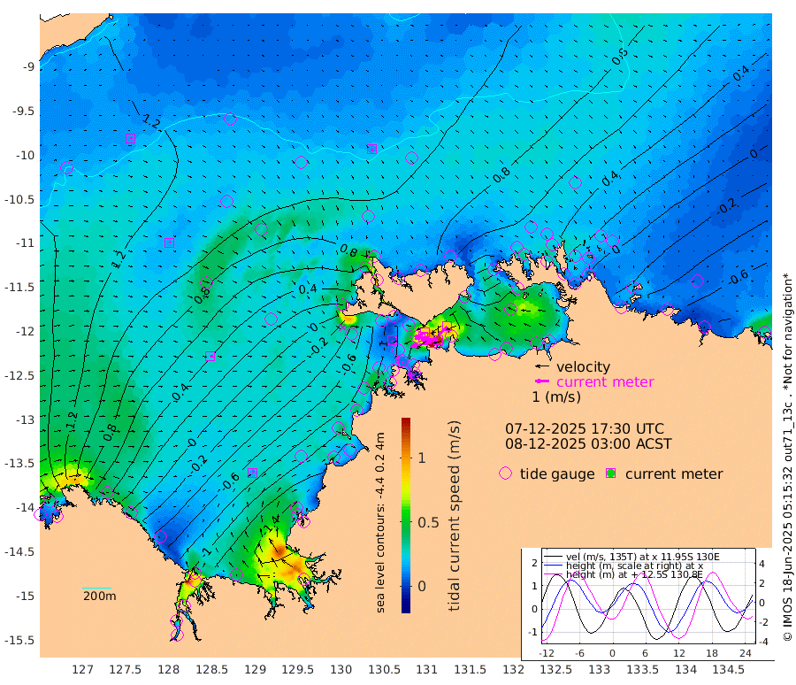 155cm/s -101T +4cm/s rms + 6cm/s 51T. Darwin_C1 52m 120cm/s -91T +4cm/s rms + 7cm/s -161T. Darwin_CW1 22m 62cm/s -107T +4cm/s rms + 8cm/s 61T. Darwin_CW2 34m 83cm/s -135T +3cm/s rms + 9cm/s 98T. Darwin_CW3 22m 100cm/s -91T +5cm/s rms + 7cm/s 88T. Darwin_C3 56m 82cm/s -116T +2cm/s rms + 9cm/s -126T. Darwin_CTbW 22m 13cm/s 142T +9cm/s rms + 2cm/s -110T. NWSLYN 196m 5cm/s 159T +1cm/s rms + 1cm/s -47T. DARBGF 30m 14cm/s 43T +7cm/s rms + 2cm/s -137T. ITFTIS 464m 16cm/s 57T +9cm/s rms + 1cm/s 74T. ITFMHB 146m 16cm/s 47T +4cm/s rms + 1cm/s -134T. ITFJBG 61m 23cm/s 82T +6cm/s rms + 4cm/s 121T. ITFFTB 108m 10cm/s -173T +4cm/s rms + 3cm/s 80T. NRSDAR 19m 124cm Carronade Island 125cm Guy Point 136cm Napier Broome Bay 44cm Lesueur Island -86cm Reveley Island -45cm Rocky Island -152cm Cape Domett -128cm Lacrosse Island -172cm Adolphus Island -124cm Pender Point -105cm Wyndham 83cm The Boxers 69cm Unnamed Shoal 127cm Loxton Shoal -180cm Pelican Island 92cm Calder Shoal 100cm Evans Shoal -219cm Quoin Island -151cm Port Keats -158cm Jones Point -163cm Catfish Island -77cm Cape Scott Offshore -58cm Cape Ford -91cm Anson Bay 88cm Goodrich Bank -75cm Peron Island North -69cm Point Jenny -65cm Native Point -83cm Fish Reef -92cm Tapa Bay 23cm Point Fawcett (Offshore) -108cm Burge Point -97cm Munkunuwa -42cm Beagle A -119cm Parsons Bank -103cm Fenton Patches 93cm Lynedoch Bank -119cm Hancox Shoal Area -120cm Nightcliff -126cm Darwin -89cm Charles Point Patches -101cm Glyde Point -102cm Chambers Bay -110cm Point Stuart -95cm Cape Hotham -91cm Christine Reef -127cm West Alligator Head -123cm East Field Island -79cm Two Hills Bay 32cm Newby Shoal -65cm Camp Point -87cm Medina Inlet South 32cm South Barlow Point 57cm St. Asaph Bay 86cm Cape Van Dieman 83cm Snake Bay 82cm Cache Point 138cm Echo Shoal 54cm Point Jahleel (Off) 4cm Cape Don 49cm Port Essington 44cm Smith Point - West 48cm NW Peacock Island 70cm North Of Jones Shoal 22cm Peacock Island 21cm Point David 41cm D'urville Point 59cm Money Shoal 14cm Copeland Island 20cm Cape Cockburn 28cm One Tree Point 20cm Hogmany Shoal 29cm New Year Island - West 20cm Grant Island -11cm Aurari Bay -28cm Cuthbert Point -3cm North Goulburn Island -32cm Paxie Shoal -62cm Entrance Island -92cm Yabooma Island
