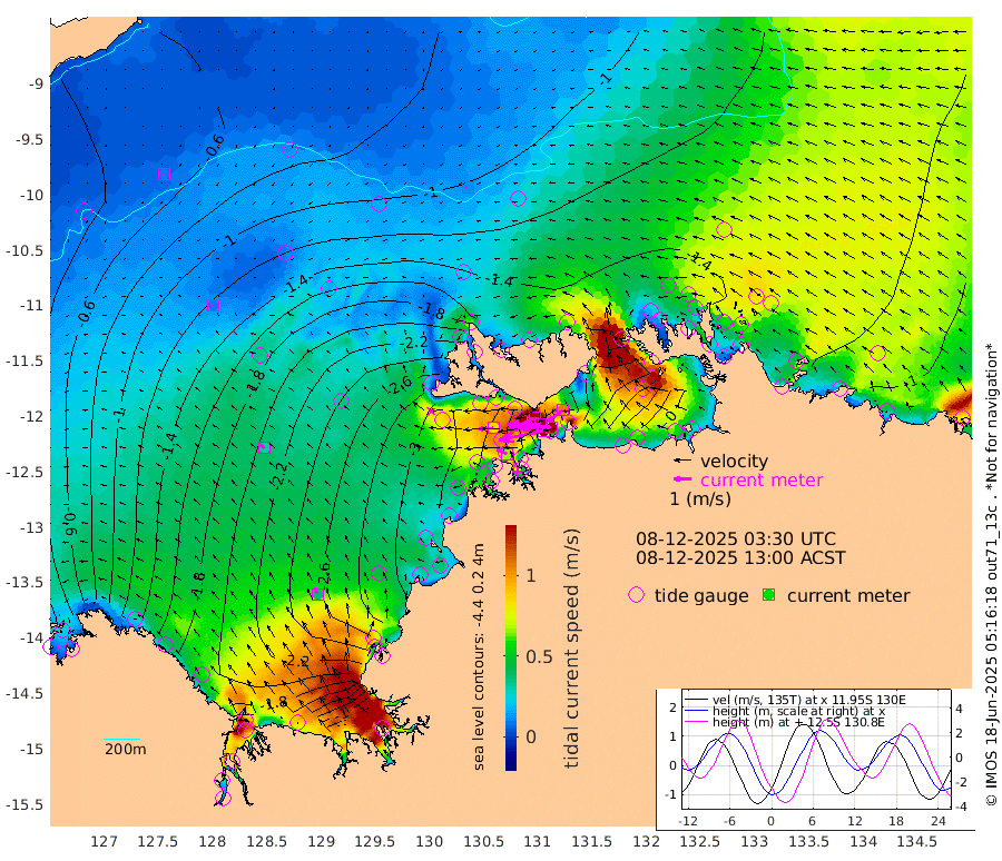 262cm/s -102T +4cm/s rms + 6cm/s 51T. Darwin_C1 52m 189cm/s -89T +4cm/s rms + 7cm/s -161T. Darwin_CW1 22m 144cm/s -108T +4cm/s rms + 8cm/s 61T. Darwin_CW2 34m 105cm/s -127T +3cm/s rms + 9cm/s 98T. Darwin_CW3 22m 192cm/s -91T +5cm/s rms + 7cm/s 88T. Darwin_C3 56m 151cm/s -115T +2cm/s rms + 9cm/s -126T. Darwin_CTbW 22m 11cm/s -58T +9cm/s rms + 2cm/s -110T. NWSLYN 196m 84cm/s -93T +1cm/s rms + 1cm/s -47T. DARBGF 30m 10cm/s -161T +7cm/s rms + 2cm/s -137T. ITFTIS 464m 9cm/s -28T +9cm/s rms + 1cm/s 74T. ITFMHB 146m 38cm/s -21T +4cm/s rms + 1cm/s -134T. ITFJBG 61m 30cm/s -49T +6cm/s rms + 4cm/s 121T. ITFFTB 108m 66cm/s -64T +4cm/s rms + 3cm/s 80T. NRSDAR 19m 13cm Carronade Island 15cm Guy Point 4cm Napier Broome Bay -99cm Lesueur Island -171cm Reveley Island -99cm Rocky Island -207cm Cape Domett -197cm Lacrosse Island -151cm Adolphus Island -47cm Pender Point 1cm Wyndham -144cm The Boxers -167cm Unnamed Shoal -75cm Loxton Shoal -230cm Pelican Island -137cm Calder Shoal -89cm Evans Shoal -153cm Quoin Island -291cm Port Keats -270cm Jones Point -88cm Catfish Island -274cm Cape Scott Offshore -367cm Cape Ford -306cm Anson Bay -112cm Goodrich Bank -291cm Peron Island North -293cm Point Jenny -294cm Native Point -306cm Fish Reef -313cm Tapa Bay -231cm Point Fawcett (Offshore) -322cm Burge Point -306cm Munkunuwa -272cm Beagle A -308cm Parsons Bank -304cm Fenton Patches -89cm Lynedoch Bank -286cm Hancox Shoal Area -309cm Nightcliff -330cm Darwin -328cm Charles Point Patches -202cm Glyde Point -85cm Chambers Bay -69cm Point Stuart -151cm Cape Hotham -88cm Christine Reef -59cm West Alligator Head -12cm East Field Island -106cm Two Hills Bay -232cm Newby Shoal -107cm Camp Point -316cm Medina Inlet South -210cm South Barlow Point -176cm St. Asaph Bay -122cm Cape Van Dieman -132cm Snake Bay -121cm Cache Point -34cm Echo Shoal -121cm Point Jahleel (Off) -141cm Cape Don -126cm Port Essington -125cm Smith Point - West -115cm NW Peacock Island -112cm North Of Jones Shoal -40cm Peacock Island -109cm Point David -122cm D'urville Point -102cm Money Shoal -103cm Copeland Island -142cm Cape Cockburn -115cm One Tree Point -126cm Hogmany Shoal -111cm New Year Island - West -113cm Grant Island -99cm Aurari Bay -99cm Cuthbert Point -110cm North Goulburn Island -96cm Paxie Shoal -74cm Entrance Island -45cm Yabooma Island