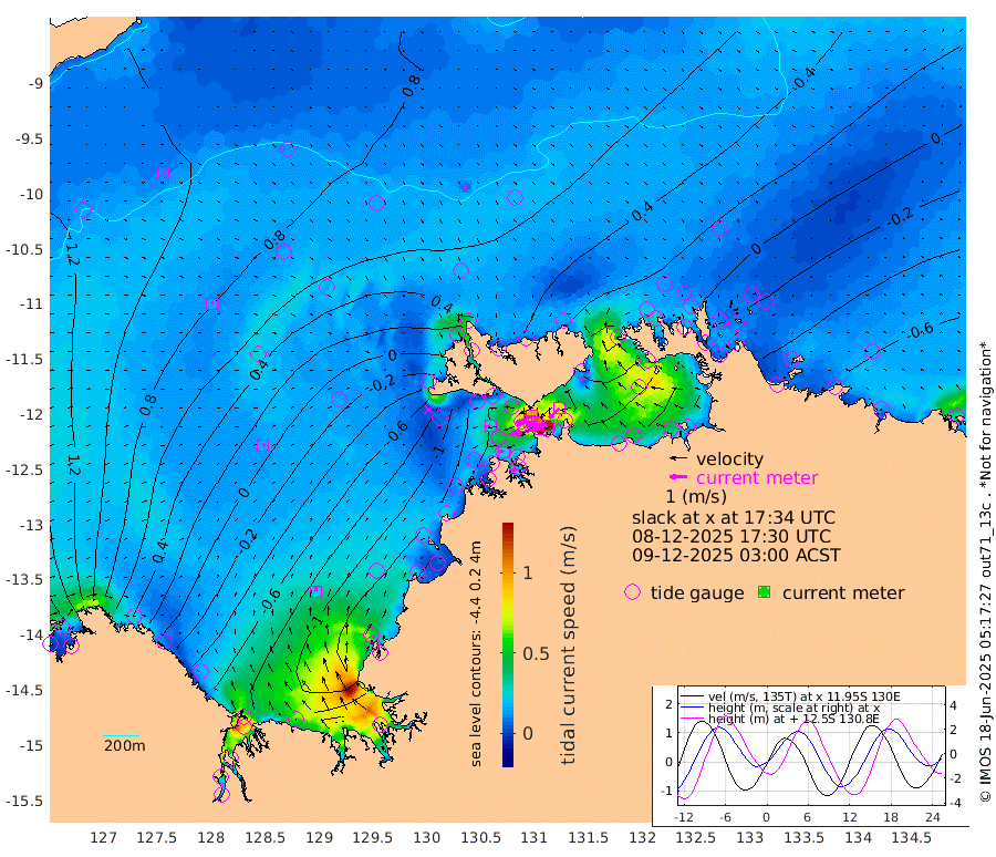 178cm/s -101T +4cm/s rms + 6cm/s 51T. Darwin_C1 52m 125cm/s -90T +4cm/s rms + 7cm/s -161T. Darwin_CW1 22m 77cm/s -107T +4cm/s rms + 8cm/s 61T. Darwin_CW2 34m 81cm/s -134T +3cm/s rms + 9cm/s 98T. Darwin_CW3 22m 108cm/s -91T +5cm/s rms + 7cm/s 88T. Darwin_C3 56m 99cm/s -115T +2cm/s rms + 9cm/s -126T. Darwin_CTbW 22m 10cm/s 140T +9cm/s rms + 2cm/s -110T. NWSLYN 196m 25cm/s -96T +1cm/s rms + 1cm/s -47T. DARBGF 30m 12cm/s 38T +7cm/s rms + 2cm/s -137T. ITFTIS 464m 16cm/s 40T +9cm/s rms + 1cm/s 74T. ITFMHB 146m 23cm/s 5T +4cm/s rms + 1cm/s -134T. ITFJBG 61m 16cm/s 39T +6cm/s rms + 4cm/s 121T. ITFFTB 108m 24cm/s -78T +4cm/s rms + 3cm/s 80T. NRSDAR 19m 145cm Carronade Island 150cm Guy Point 159cm Napier Broome Bay 55cm Lesueur Island -68cm Reveley Island -36cm Rocky Island -119cm Cape Domett -100cm Lacrosse Island -123cm Adolphus Island -41cm Pender Point -11cm Wyndham 57cm The Boxers 35cm Unnamed Shoal 106cm Loxton Shoal -157cm Pelican Island 63cm Calder Shoal 73cm Evans Shoal -150cm Quoin Island -150cm Port Keats -158cm Jones Point -104cm Catfish Island -99cm Cape Scott Offshore -104cm Cape Ford -119cm Anson Bay 55cm Goodrich Bank -108cm Peron Island North -100cm Point Jenny -98cm Native Point -118cm Fish Reef -122cm Tapa Bay -19cm Point Fawcett (Offshore) -134cm Burge Point -130cm Munkunuwa -77cm Beagle A -148cm Parsons Bank -130cm Fenton Patches 65cm Lynedoch Bank -140cm Hancox Shoal Area -142cm Nightcliff -152cm Darwin -122cm Charles Point Patches -103cm Glyde Point -75cm Chambers Bay -77cm Point Stuart -89cm Cape Hotham -64cm Christine Reef -86cm West Alligator Head -68cm East Field Island -67cm Two Hills Bay 0cm Newby Shoal -50cm Camp Point -121cm Medina Inlet South -11cm South Barlow Point 17cm St. Asaph Bay 50cm Cape Van Dieman 46cm Snake Bay 48cm Cache Point 122cm Echo Shoal 26cm Point Jahleel (Off) -16cm Cape Don 16cm Port Essington 10cm Smith Point - West 15cm NW Peacock Island 37cm North Of Jones Shoal 10cm Peacock Island -7cm Point David 6cm D'urville Point 29cm Money Shoal -13cm Copeland Island -16cm Cape Cockburn -1cm One Tree Point -9cm Hogmany Shoal 2cm New Year Island - West -6cm Grant Island -33cm Aurari Bay -45cm Cuthbert Point -26cm North Goulburn Island -38cm Paxie Shoal -65cm Entrance Island -83cm Yabooma Island