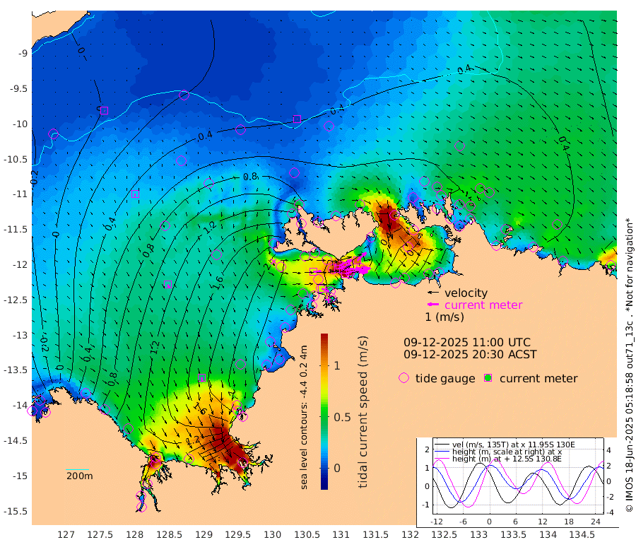 238cm/s 78T +4cm/s rms + 6cm/s 51T. Darwin_C1 52m 164cm/s 92T +4cm/s rms + 7cm/s -161T. Darwin_CW1 22m 124cm/s 74T +4cm/s rms + 8cm/s 61T. Darwin_CW2 34m 110cm/s 49T +3cm/s rms + 9cm/s 98T. Darwin_CW3 22m 175cm/s 89T +5cm/s rms + 7cm/s 88T. Darwin_C3 56m 125cm/s 65T +2cm/s rms + 9cm/s -126T. Darwin_CTbW 22m 1cm/s 7T +9cm/s rms + 2cm/s -110T. NWSLYN 196m 73cm/s 87T +1cm/s rms + 1cm/s -47T. DARBGF 30m 3cm/s 151T +7cm/s rms + 2cm/s -137T. ITFTIS 464m 21cm/s -179T +9cm/s rms + 1cm/s 74T. ITFMHB 146m 38cm/s 170T +4cm/s rms + 1cm/s -134T. ITFJBG 61m 30cm/s 150T +6cm/s rms + 4cm/s 121T. ITFFTB 108m 71cm/s 114T +4cm/s rms + 3cm/s 80T. NRSDAR 19m -67cm Carronade Island -71cm Guy Point -68cm Napier Broome Bay 32cm Lesueur Island 129cm Reveley Island 110cm Rocky Island 159cm Cape Domett 150cm Lacrosse Island 122cm Adolphus Island 17cm Pender Point -32cm Wyndham 72cm The Boxers 85cm Unnamed Shoal 17cm Loxton Shoal 186cm Pelican Island 72cm Calder Shoal 35cm Evans Shoal 124cm Quoin Island 228cm Port Keats 214cm Jones Point 60cm Catfish Island 207cm Cape Scott Offshore 259cm Cape Ford 231cm Anson Bay 51cm Goodrich Bank 220cm Peron Island North 220cm Point Jenny 221cm Native Point 235cm Fish Reef 238cm Tapa Bay 156cm Point Fawcett (Offshore) 245cm Burge Point 248cm Munkunuwa 204cm Beagle A 239cm Parsons Bank 238cm Fenton Patches 31cm Lynedoch Bank 219cm Hancox Shoal Area 242cm Nightcliff 251cm Darwin 238cm Charles Point Patches 146cm Glyde Point 54cm Chambers Bay 39cm Point Stuart 104cm Cape Hotham 54cm Christine Reef 37cm West Alligator Head -5cm East Field Island 67cm Two Hills Bay 147cm Newby Shoal 57cm Camp Point 242cm Medina Inlet South 141cm South Barlow Point 111cm St. Asaph Bay 58cm Cape Van Dieman 65cm Snake Bay 56cm Cache Point -12cm Echo Shoal 62cm Point Jahleel (Off) 77cm Cape Don 58cm Port Essington 63cm Smith Point - West 50cm NW Peacock Island 45cm North Of Jones Shoal 16cm Peacock Island 36cm Point David 57cm D'urville Point 27cm Money Shoal 34cm Copeland Island 51cm Cape Cockburn 41cm One Tree Point 35cm Hogmany Shoal 36cm New Year Island - West 39cm Grant Island 34cm Aurari Bay 27cm Cuthbert Point 36cm North Goulburn Island 13cm Paxie Shoal 10cm Entrance Island -19cm Yabooma Island